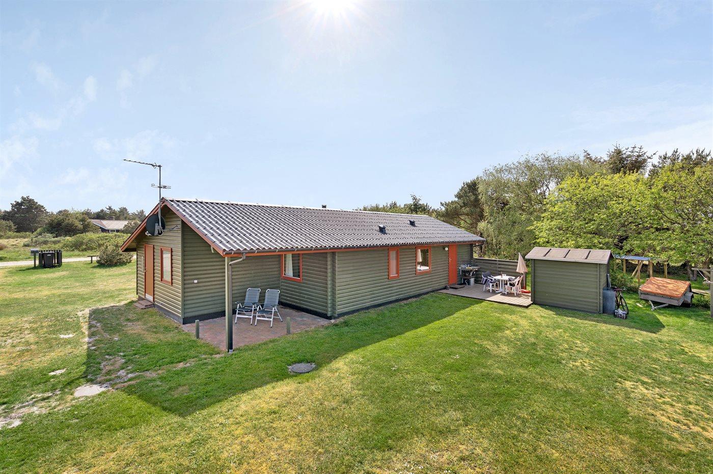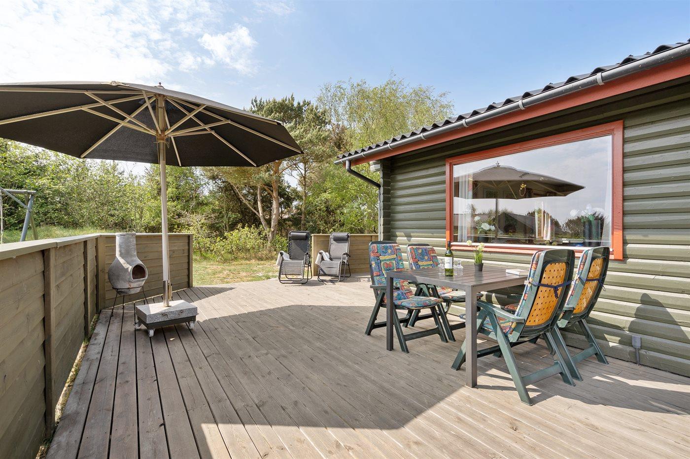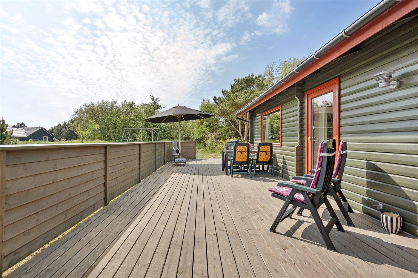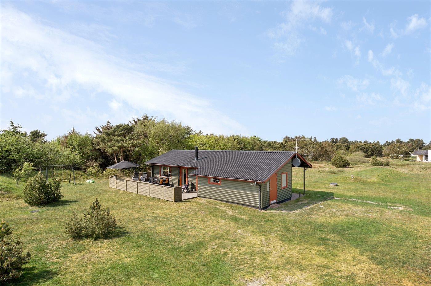 Rummeligt sommerhus i Vejers Strand med naturgrund, terrasse og plads til husdyr.