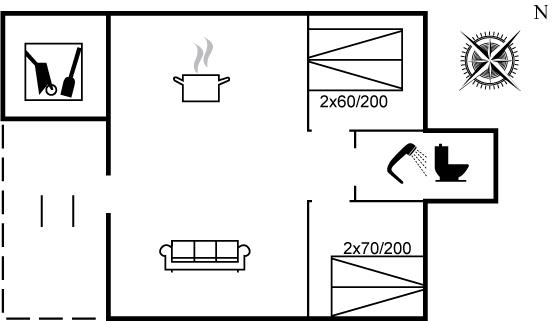 Der er i alt 2 soveværelser. Sovepladserne fordeler sig på: 4 sovepladser i dobbeltsenge.