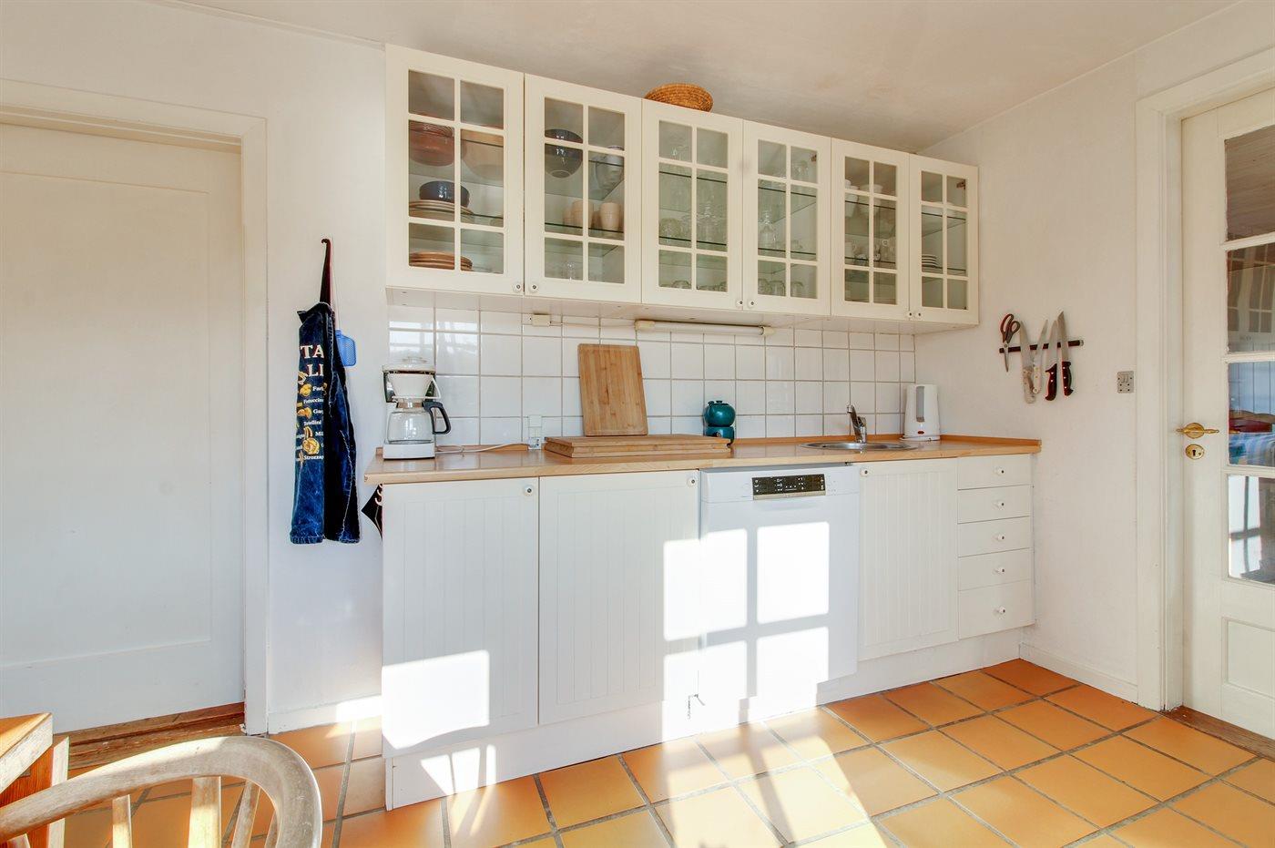 Køkkenet er udstyret med 1 køleskab. Der er 4 keramiske kogeplader, bageovn, mikrobølgeovn samt opvaskemaskine.