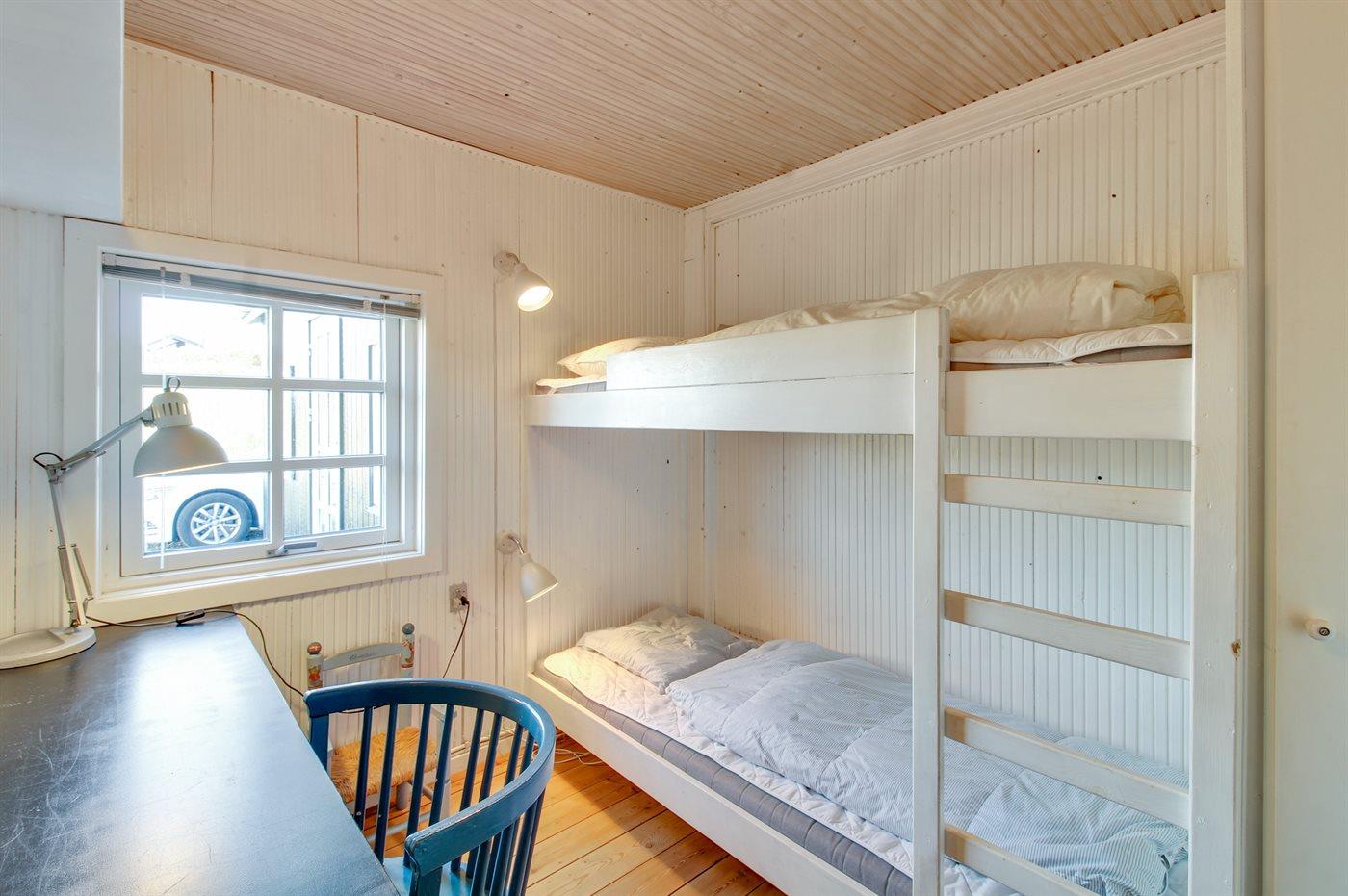 Der er i alt 3 soveværelser. Sovepladserne fordeler sig på: 4 sovepladser i dobbeltsenge. 2 sovepladser i køjeseng. Derudover er der 1 stk. barneseng.