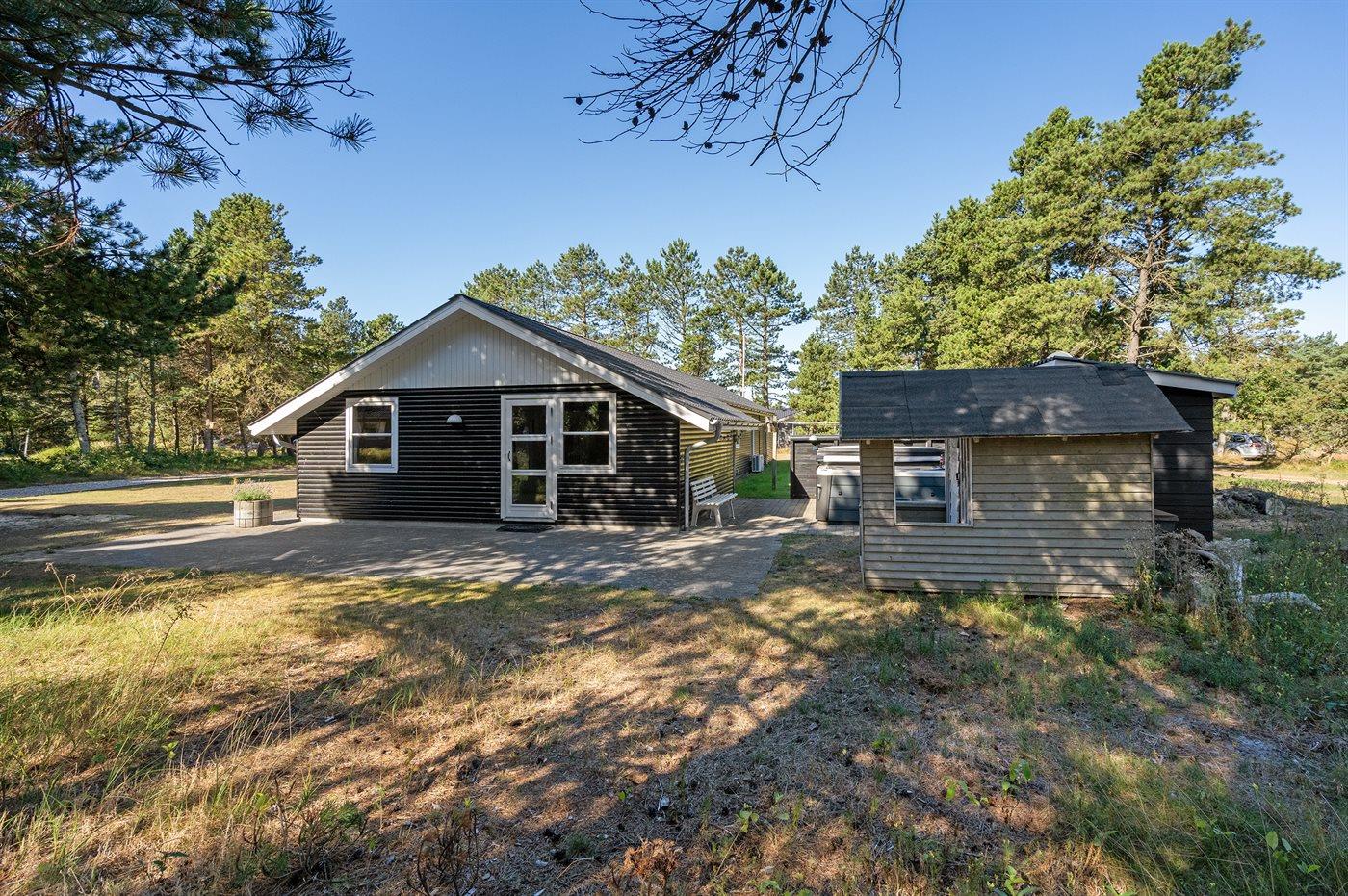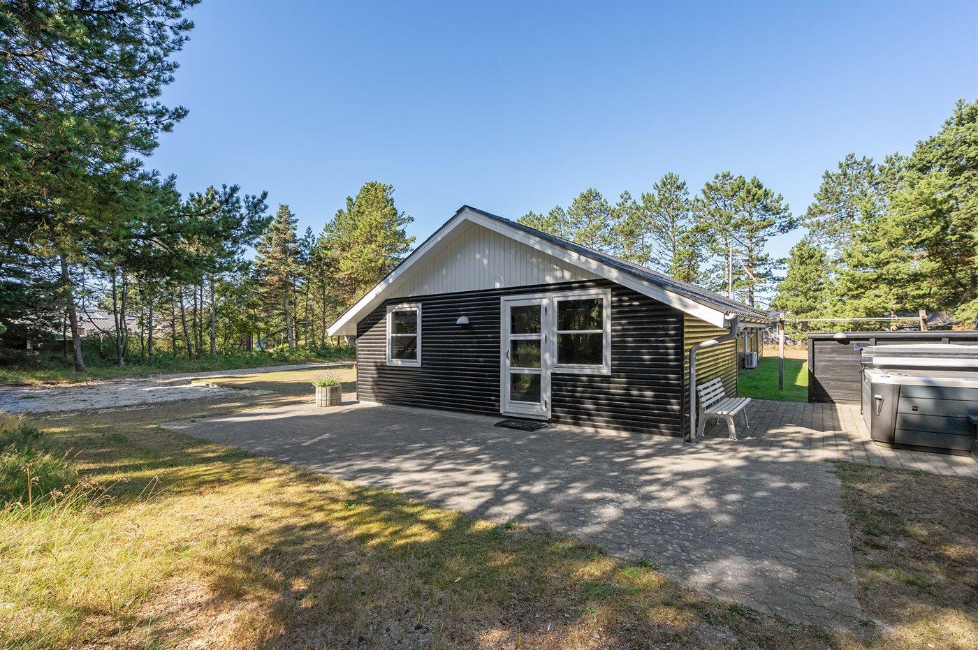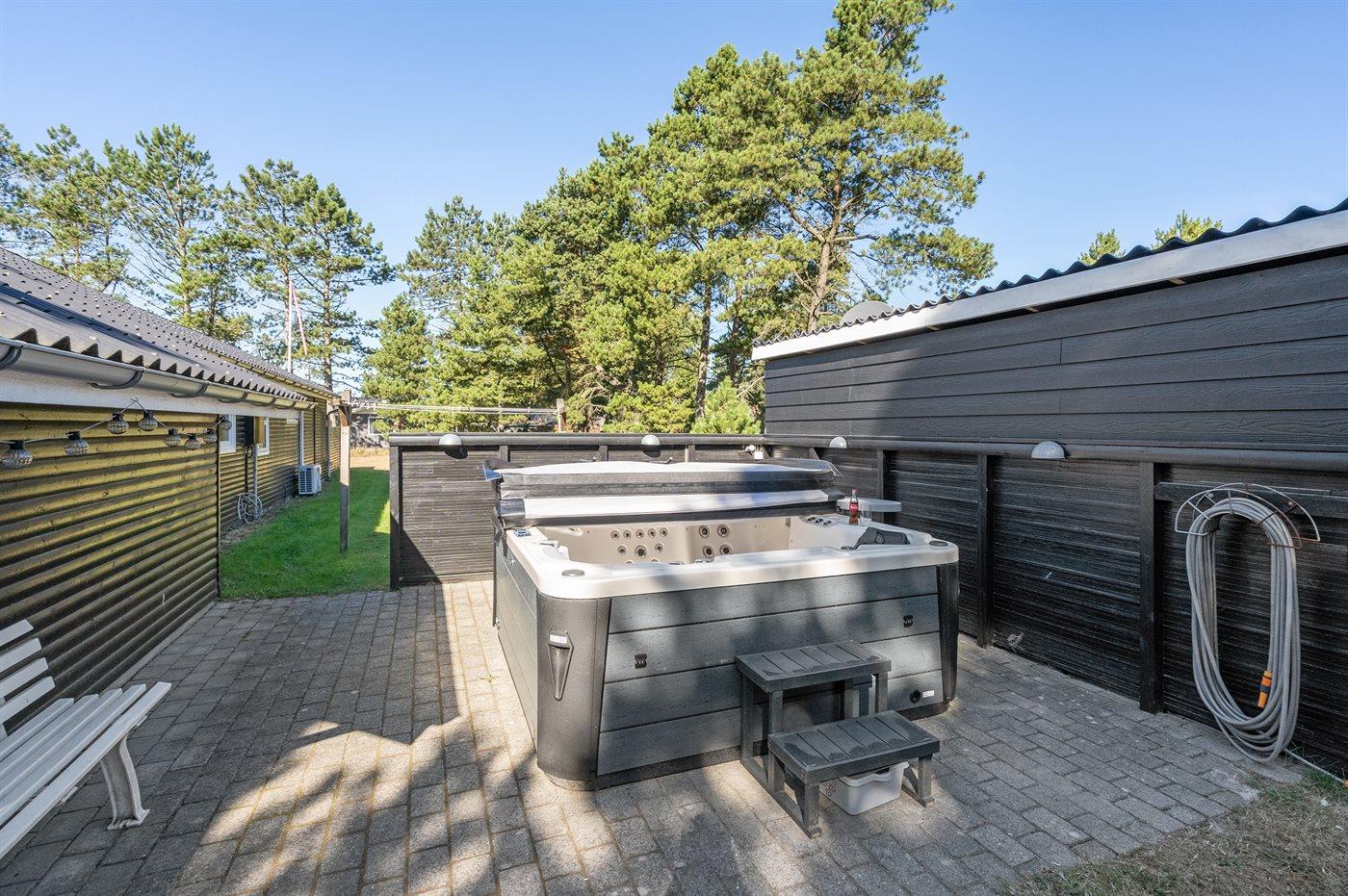 Smagfuldt sommerhus med spa, stor terrasse og gratis adgang til badeland nær Vejers Strand.