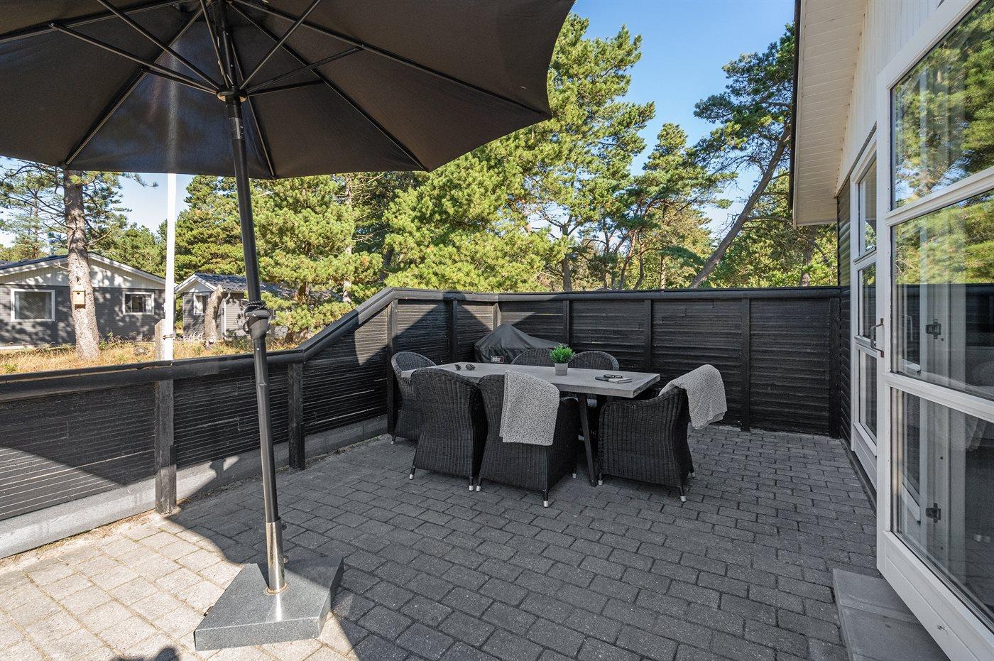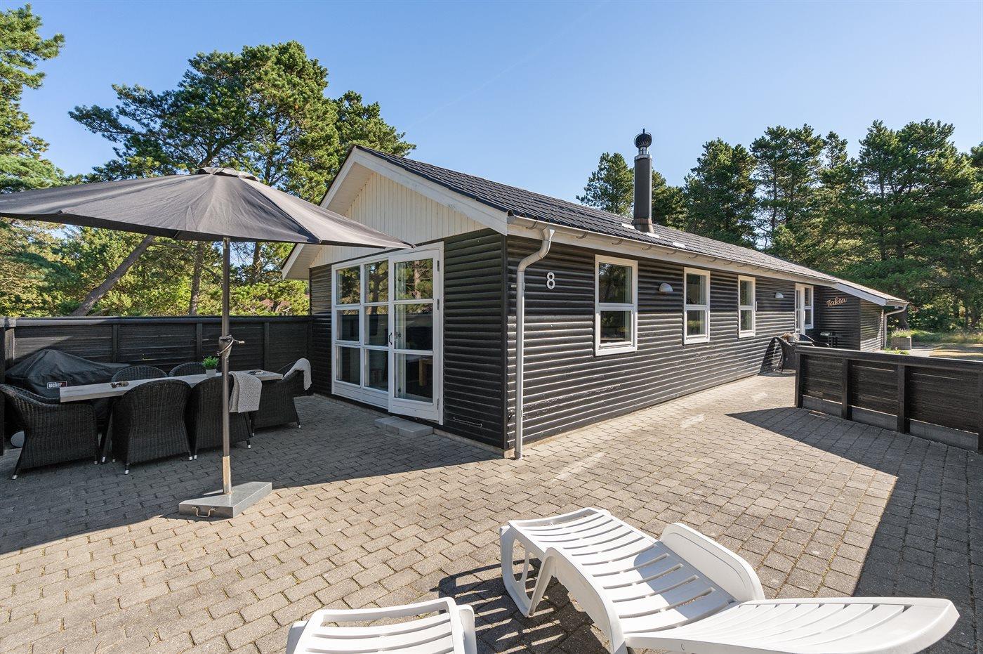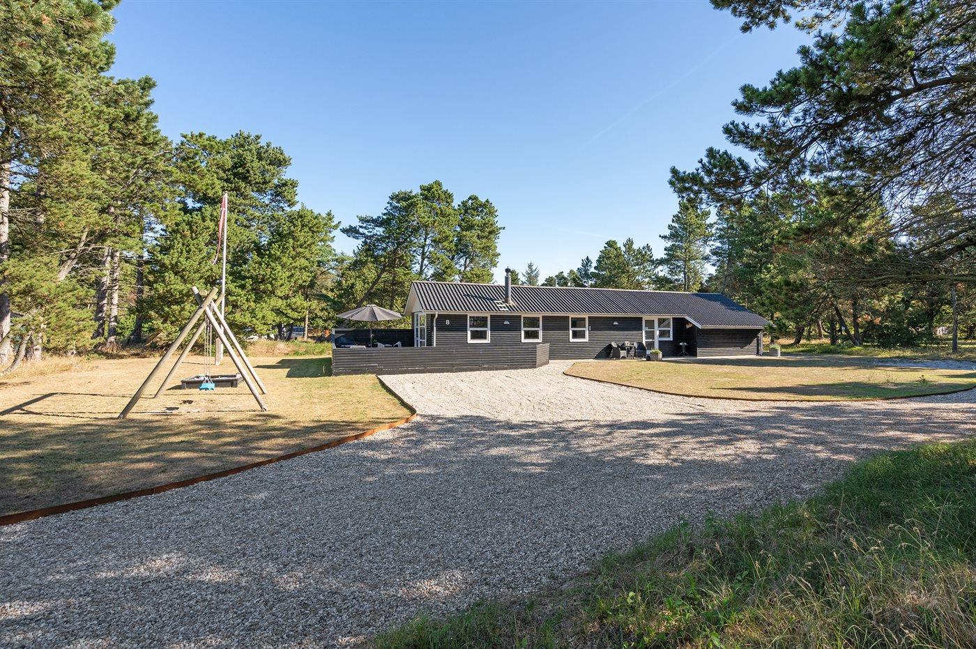 Smagfuldt sommerhus med spa, stor terrasse og gratis adgang til badeland nær Vejers Strand.