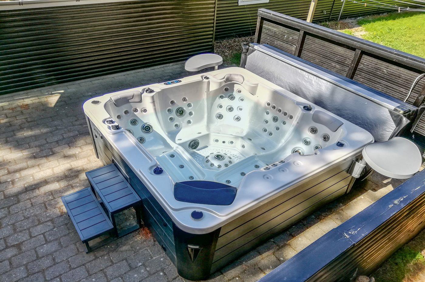 Der er mulighed for afslapning i udendørs standvandsspa til 5 personer.