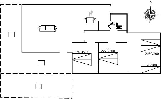 Der er i alt 3 soveværelser. Sovepladserne fordeler sig på: 6 sovepladser i dobbeltsenge. 1 soveplads i enkeltseng.