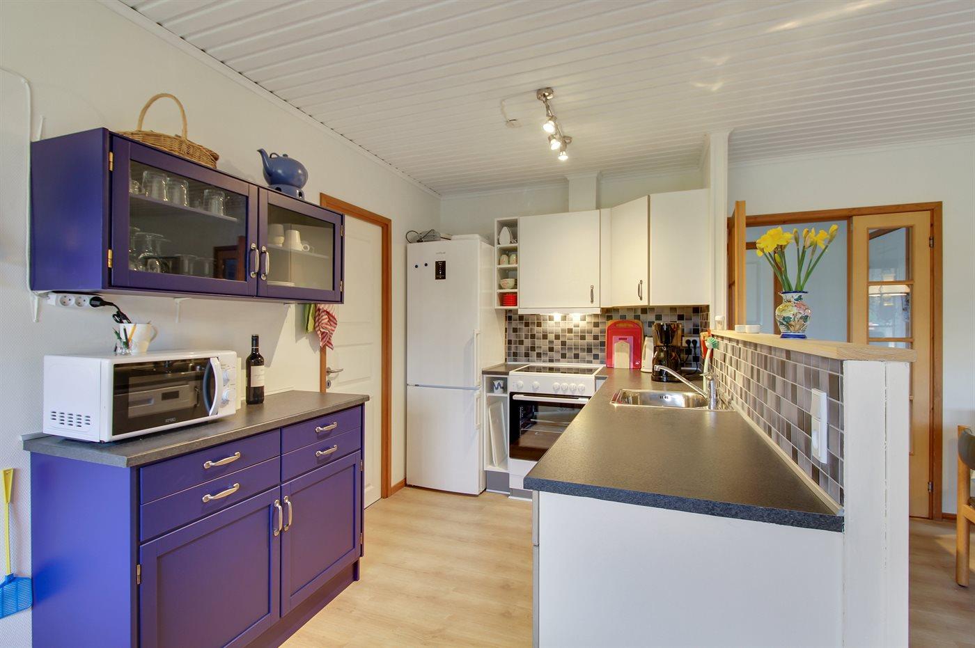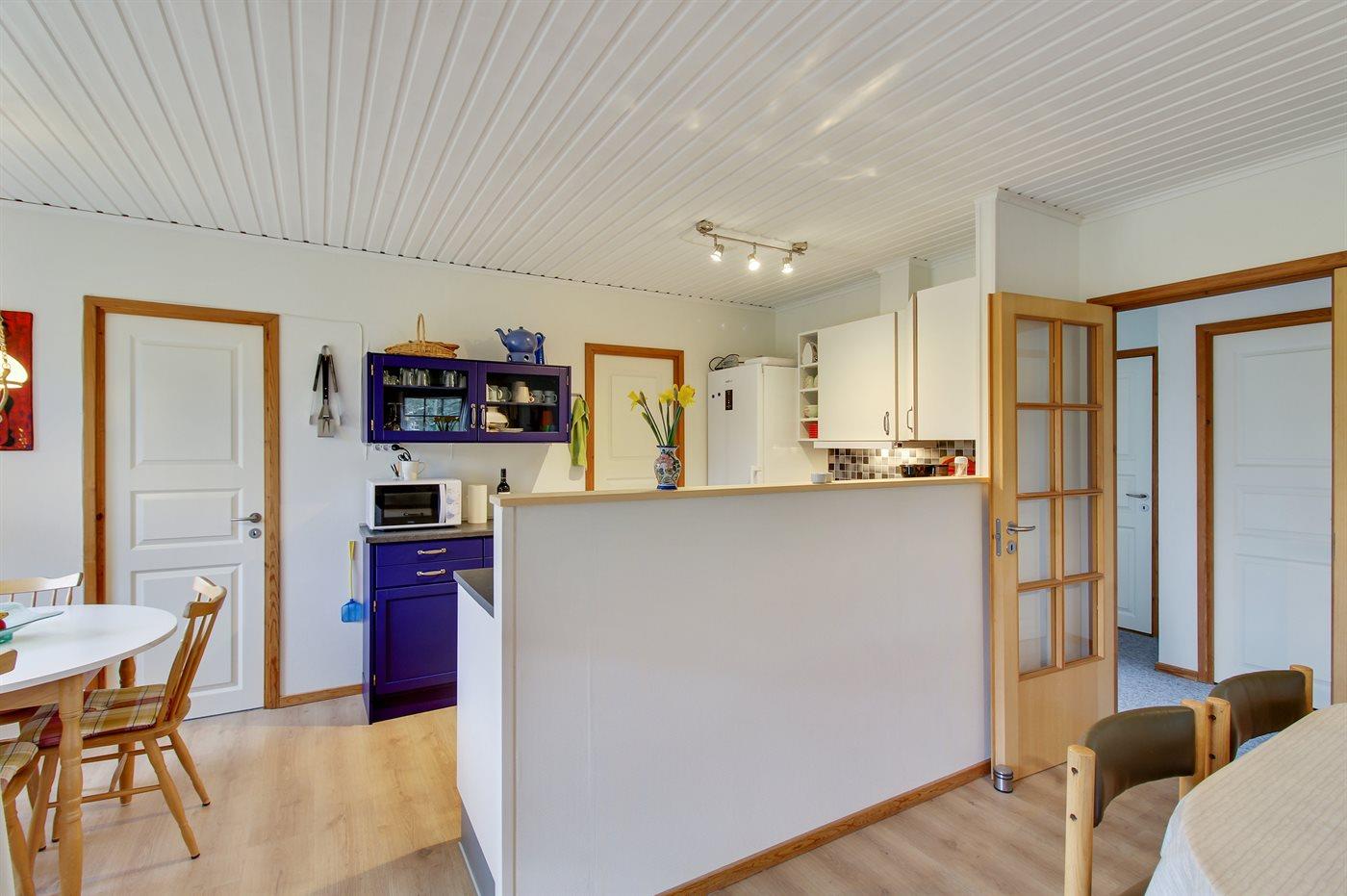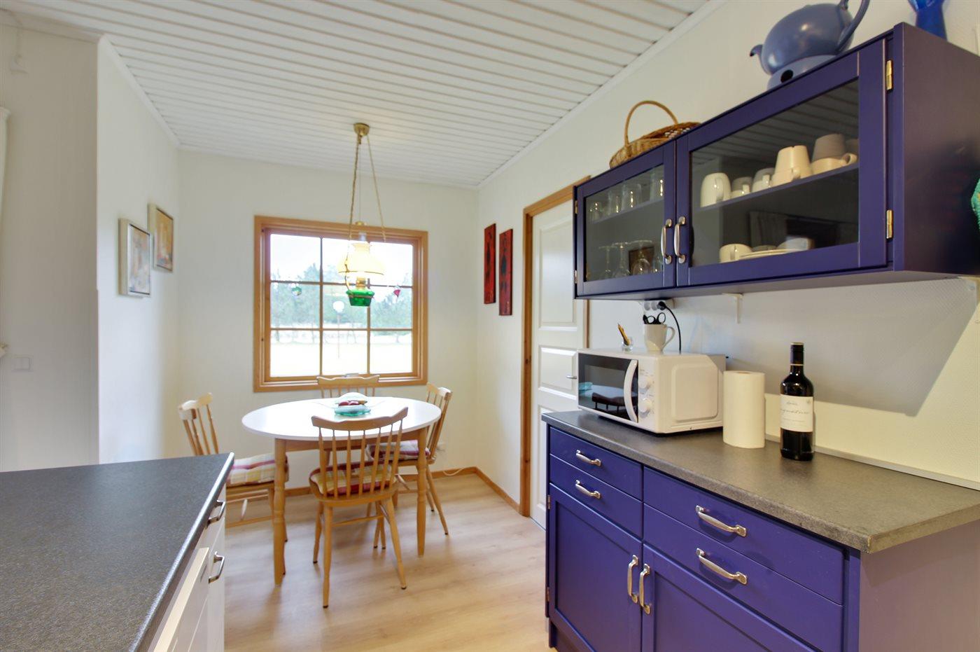 Køkkenet er udstyret med 1 køleskab. Der er 4 keramiske kogeplader, varmluftovn, mikrobølgeovn samt opvaskemaskine.