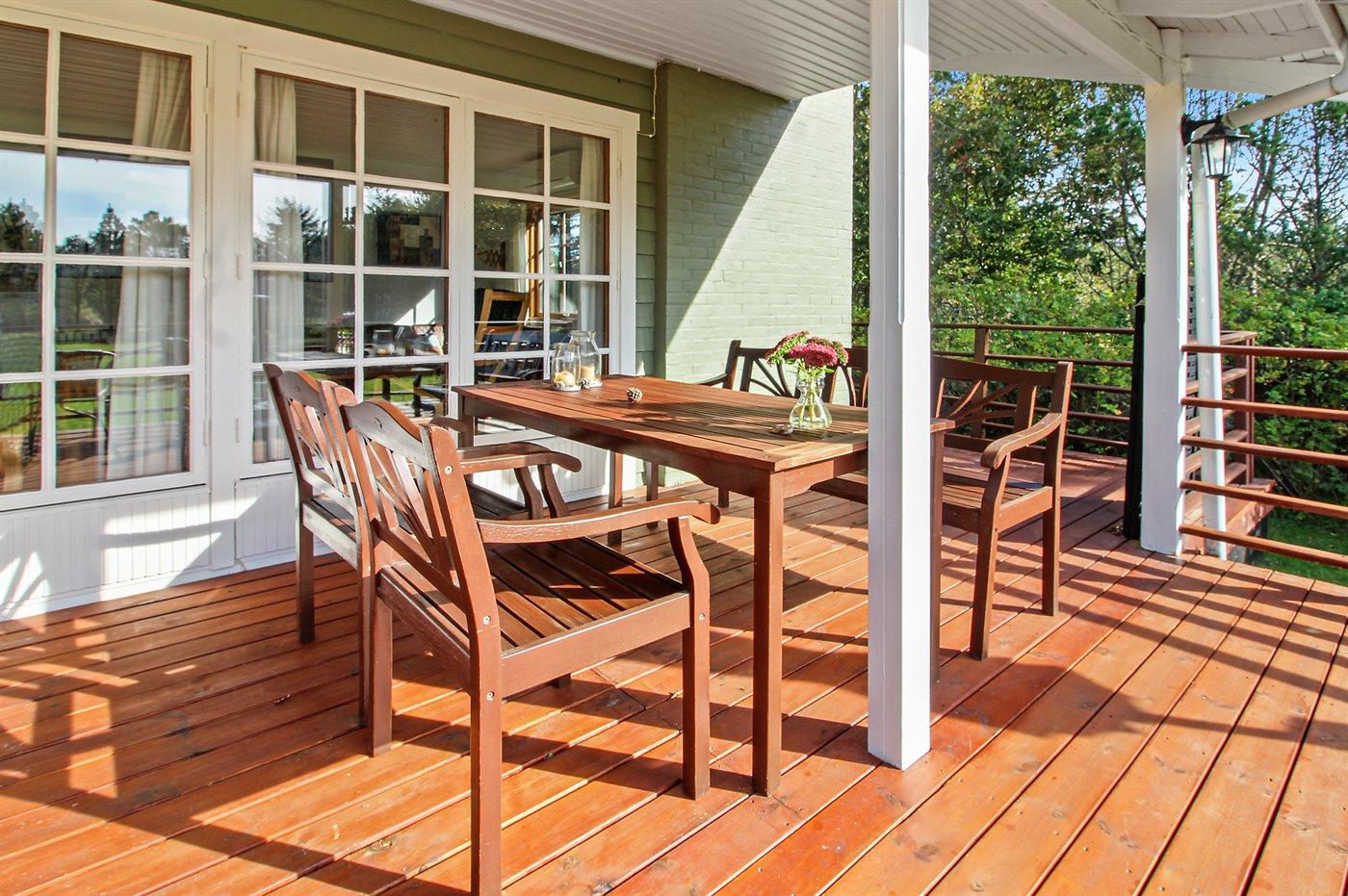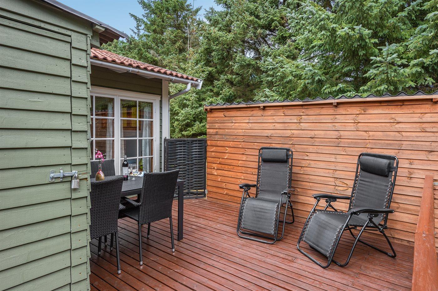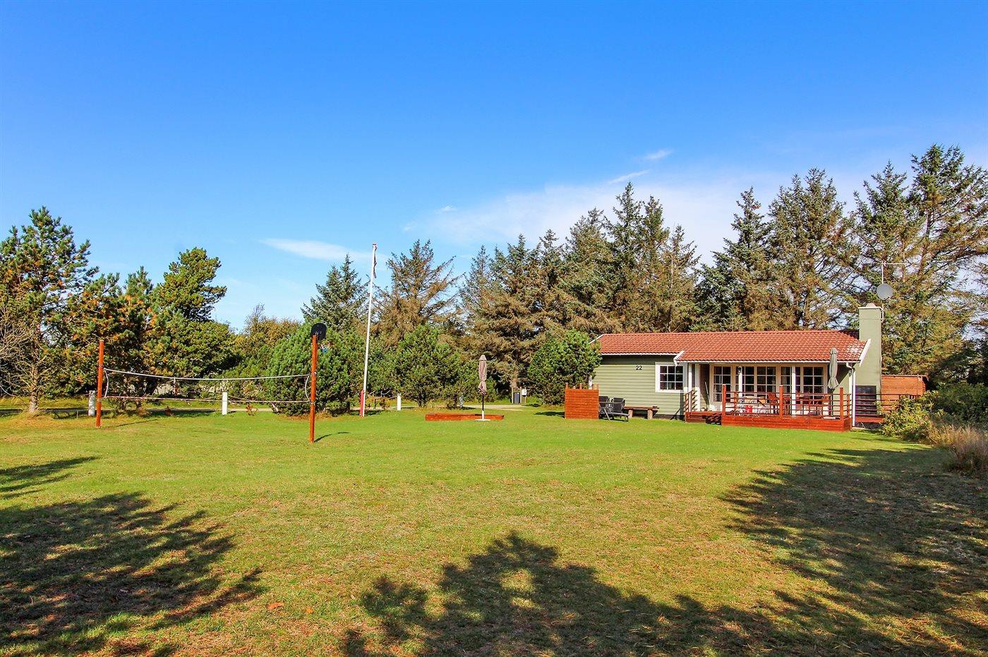 Ferieboligen er beliggende på en 2501 m² stor naturgrund. Der er 1000 m til havet. Nærmeste forretning er beliggende i en afstand af 200 m. Til ferieboligen hører 28 m² terrasseareal. Desuden er der 15 m² overdækket terrasse. Sandkasse. Parkering ved ferieboligen.