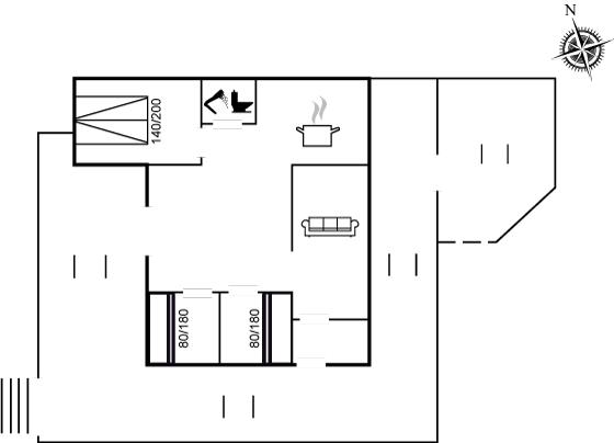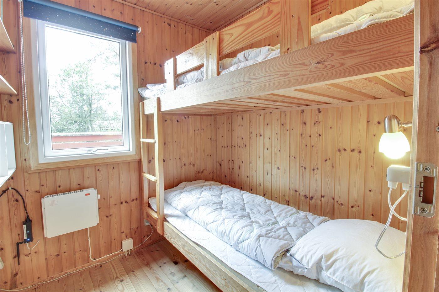 Der er i alt 3 soveværelser. Sovepladserne fordeler sig på: 2 sovepladser i dobbeltseng. 4 sovepladser i køjesenge.
