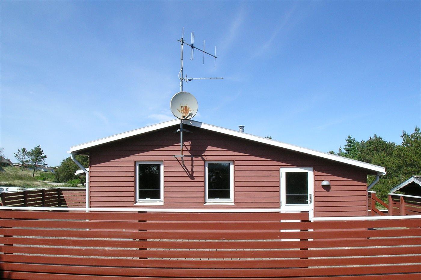 Dette sommerhus ligger i klitterne - i læ mellem fyrretræerne. Til huset hører en stor terrasse/veranda. På grunden finder I en sandkasse til børnene samt grill, havemøbler og tørrestativ.