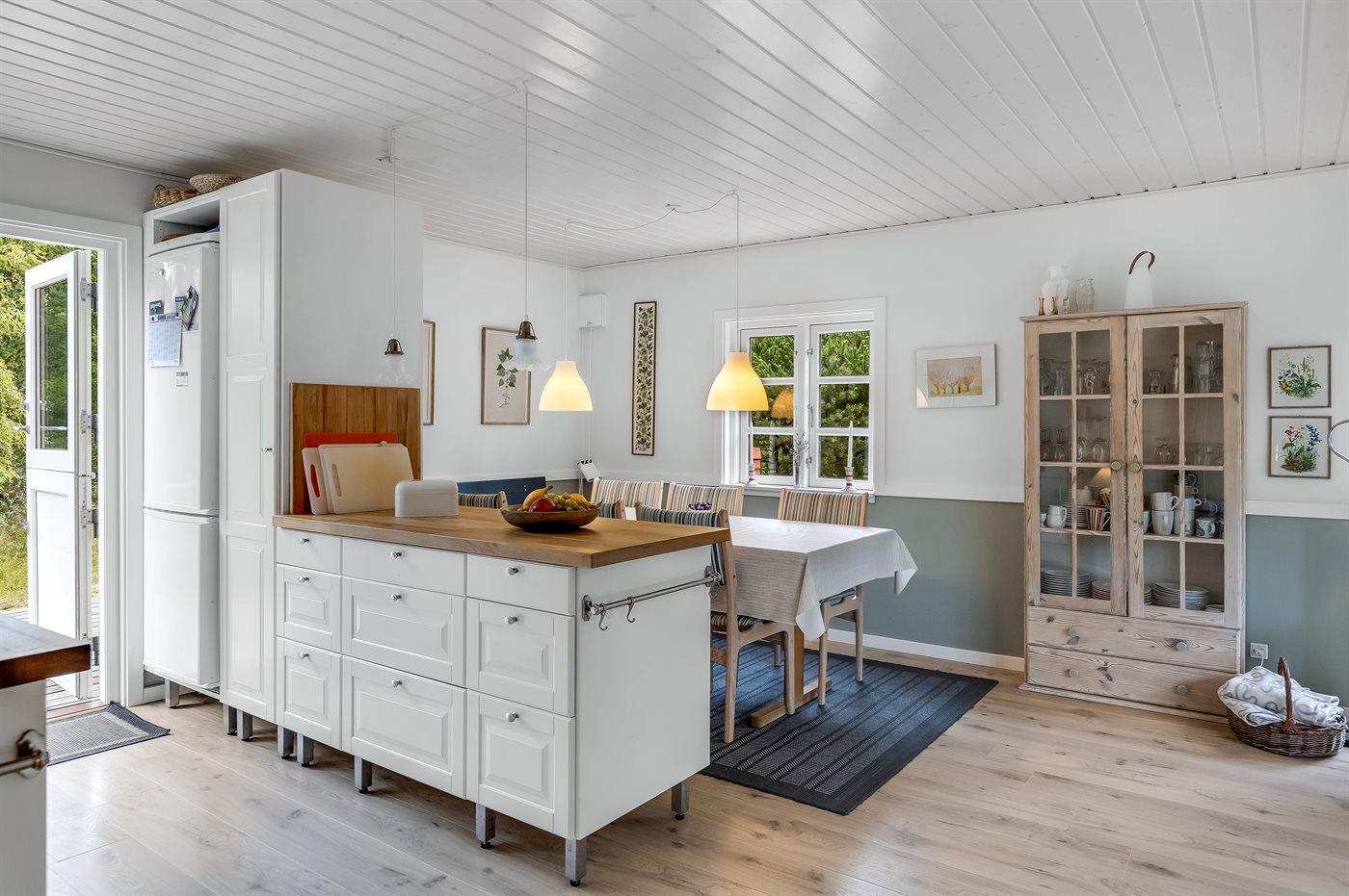 Køkkenet er udstyret med 1 køleskab. Der er 4 keramiske kogeplader, bageovn, varmluftovn samt opvaskemaskine.
