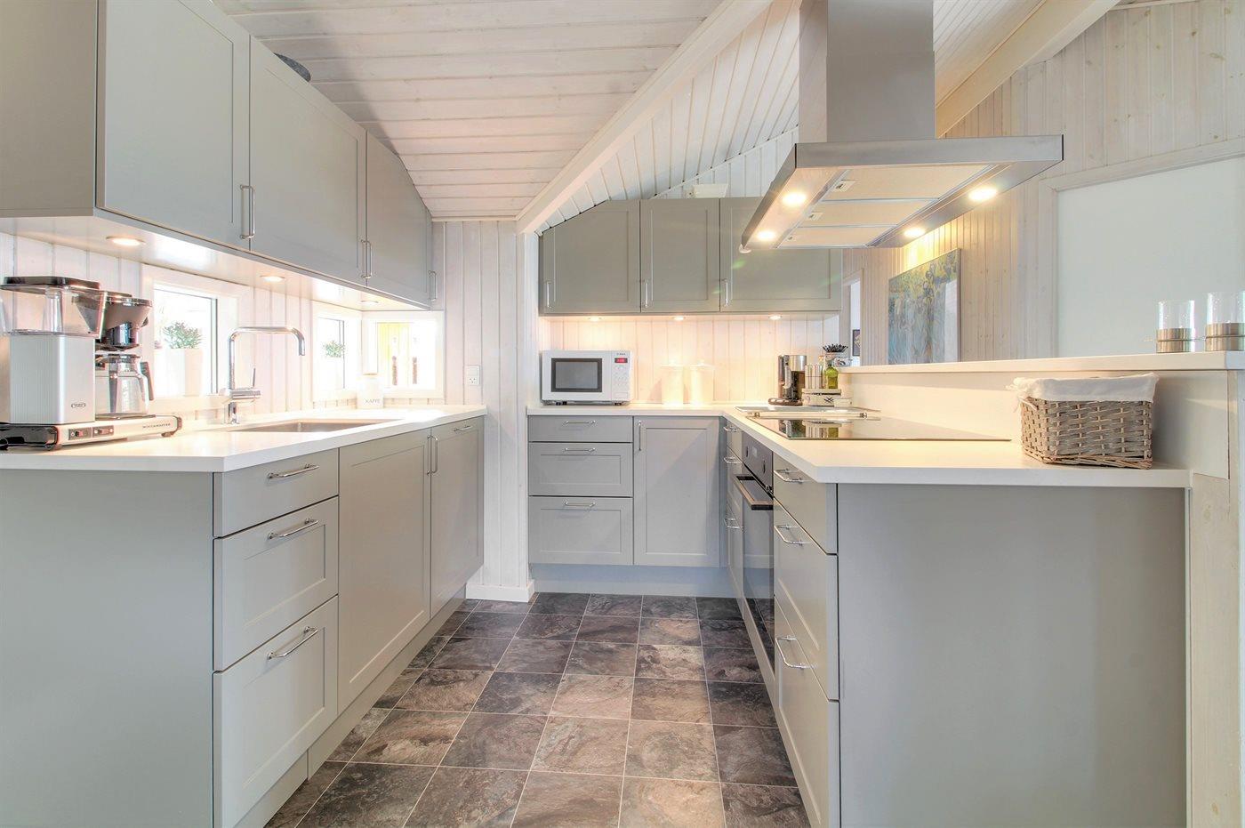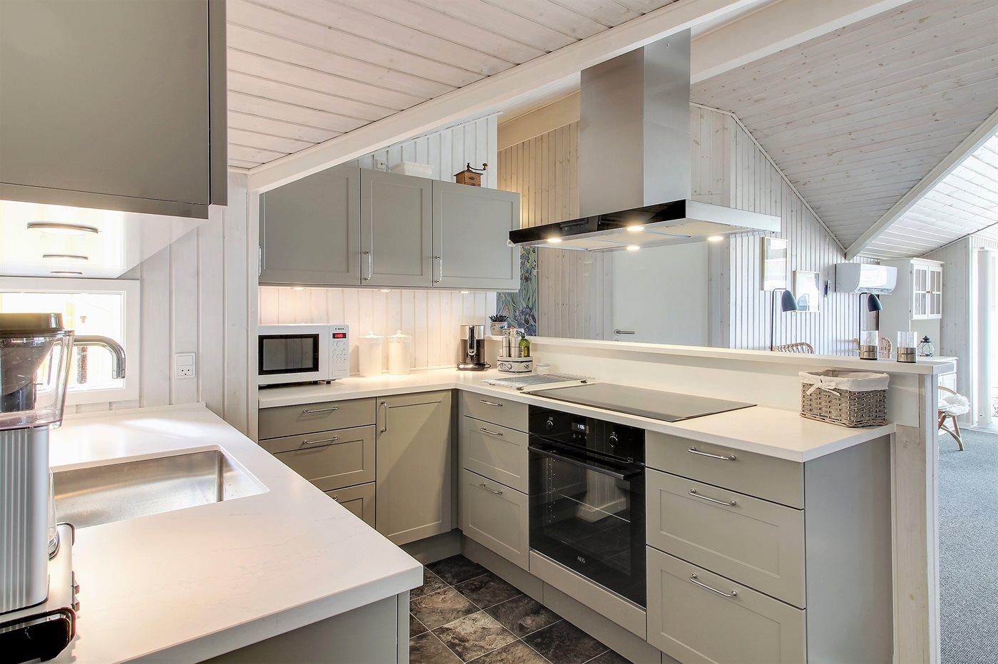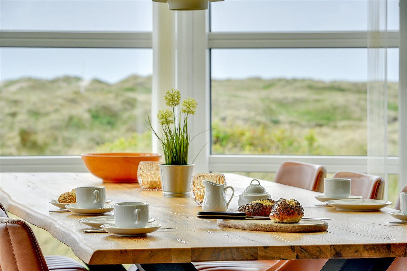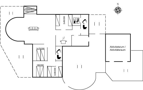 Huset er bygget i 1993 og renoveret i 2005 og er indrettet med: en stor lys opholdsstue, tv-stole, en energibesparende varmepumpe, en centralt placeret brændeovn, tæpper pålagt, alkove samt en dejlig udestue indrettet som spiseplads, hvorfra De har en fantastisk udsigt ud over hele klitområdet. Der er tv med dvd og gratis internet samt musikstreaming via bluetooth højttaler. Der er 2 badeværelser, begge med bruseniche, håndvask og toilet, i det ene er der også gulvvarme og adgang til sauna, vaskemaskine & tørretumbler samt pusleplads. Der er i alt 4 soveværelser. Sovepladserne fordeler sig på: 4 sovepladser i dobbeltsenge. 4 sovepladser i enkeltsenge. Køkkenet er udstyret med køleskab, komfur med keramiske kogeplader, mikrobølgeovn samt opvaskemaskine.
