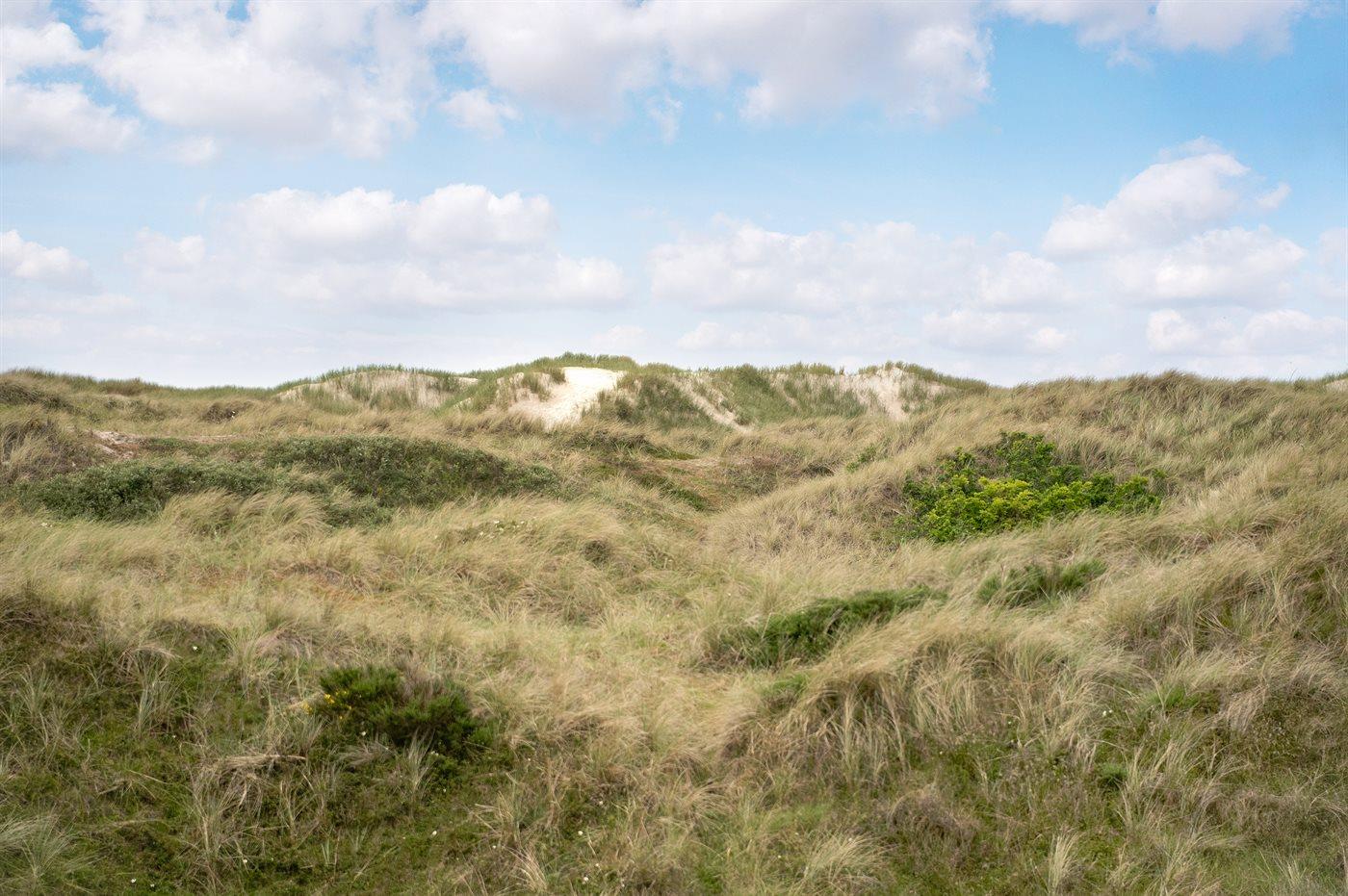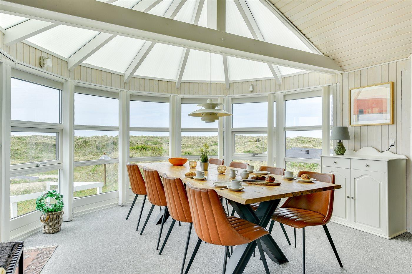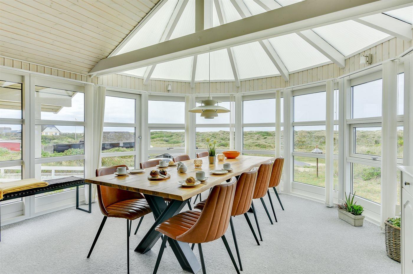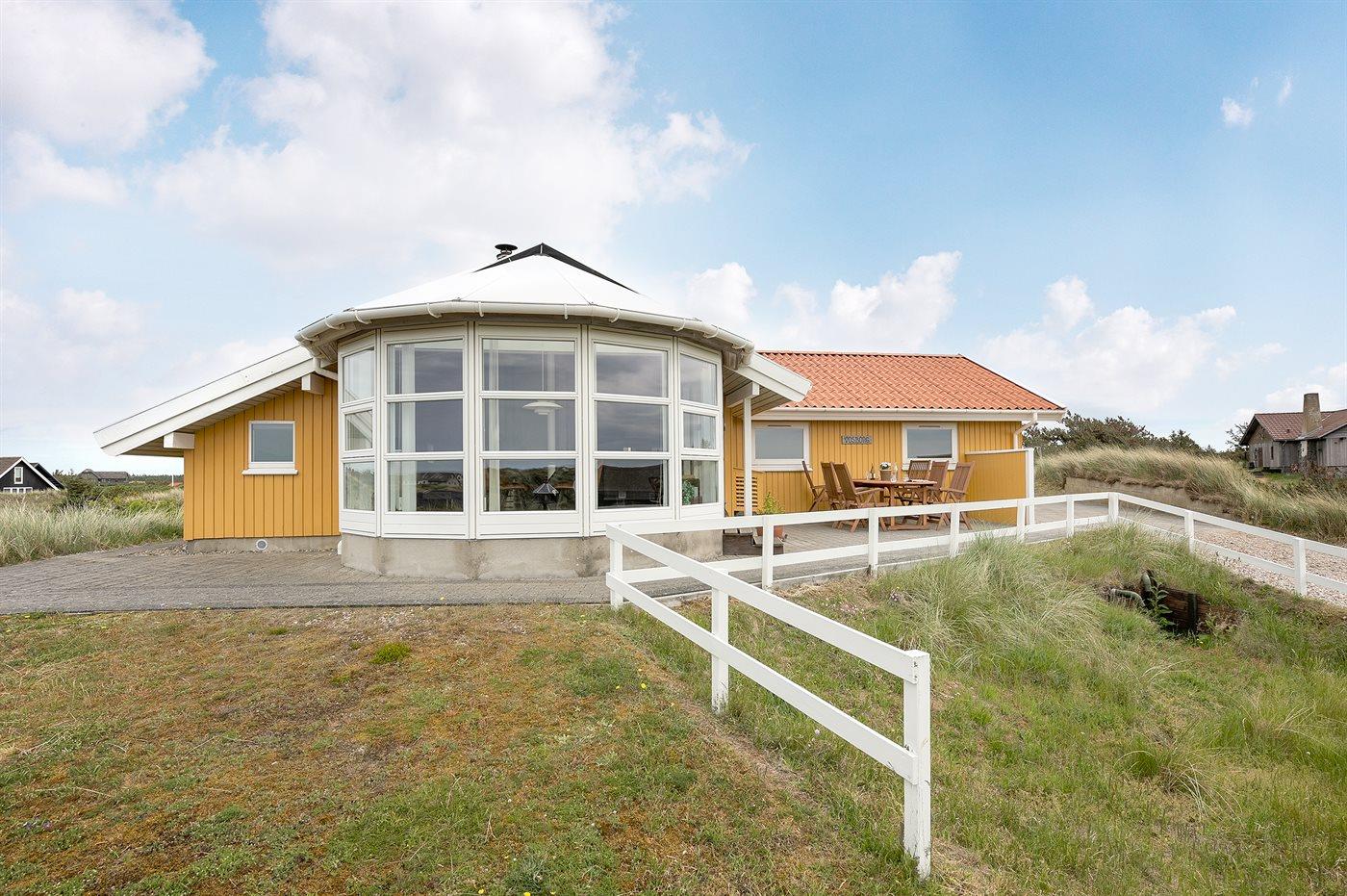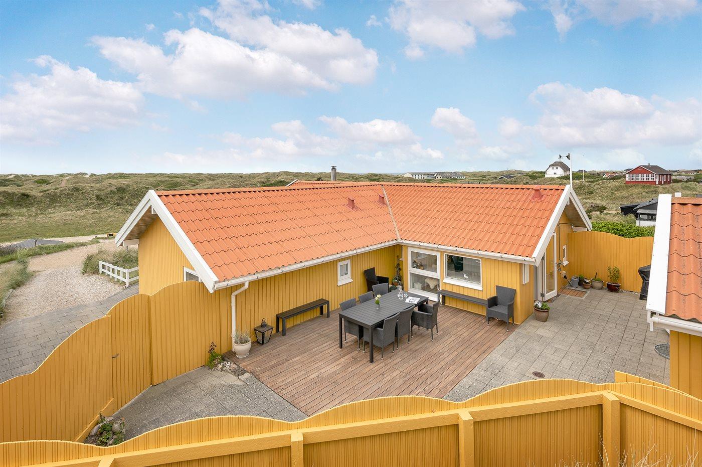 Dejligt feriehus tæt på stranden med udsigt over klitterne, aktivitetsrum og stor terrasse i Vejers Strand.