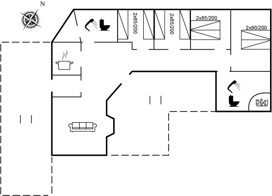 Der er 2 badeværelser med bruseniche og 2 toiletter. Der er gulvvarme på 2 badeværelser.