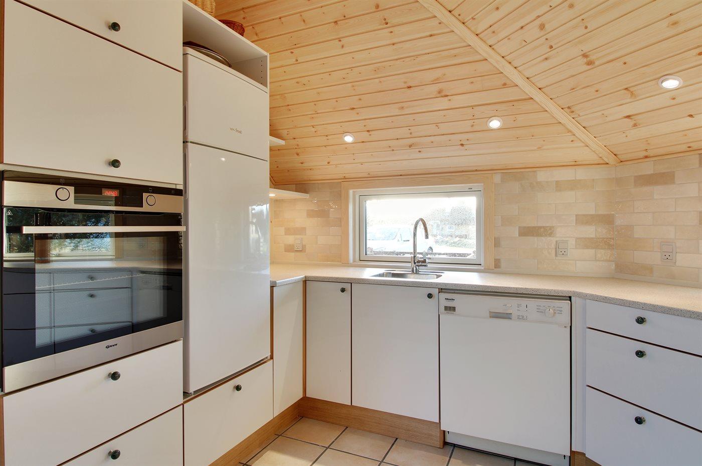 Køkkenet er udstyret med 1 køleskab. Der er 4 keramiske kogeplader, bageovn, mikrobølgeovn samt opvaskemaskine.