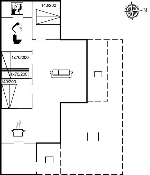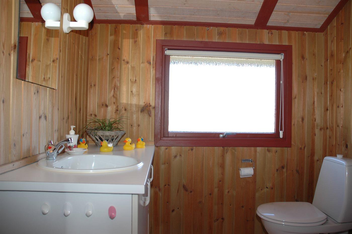 Der er 1 badeværelse med bruseniche og 1 toilet. I saunaen er der mulighed for afslapning.