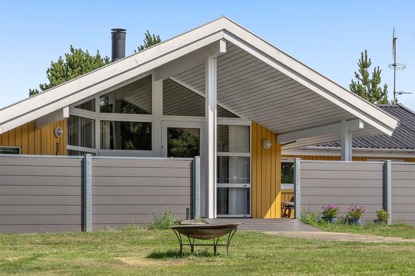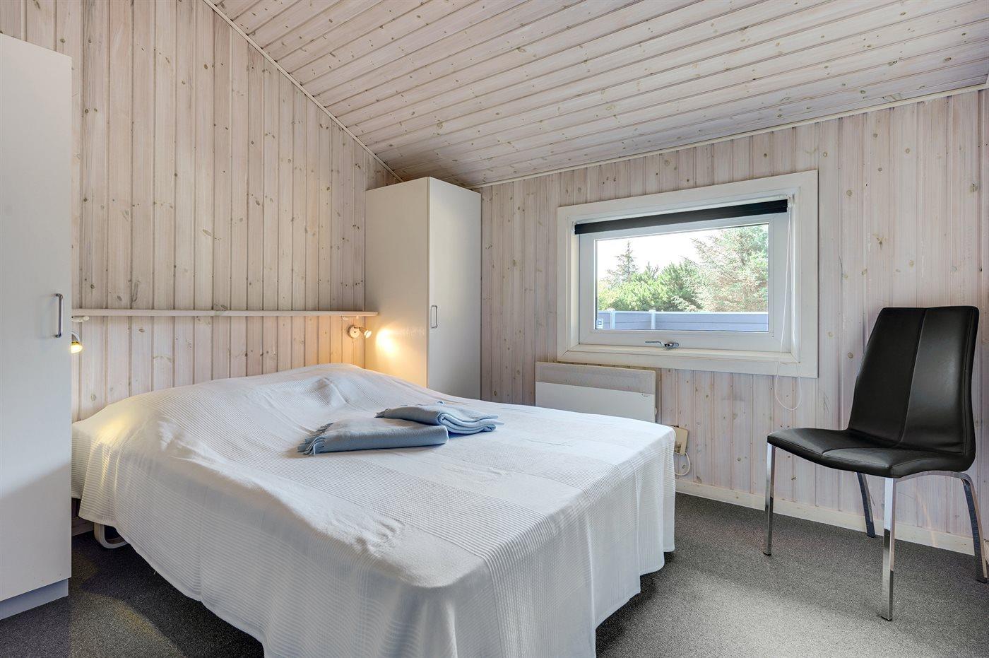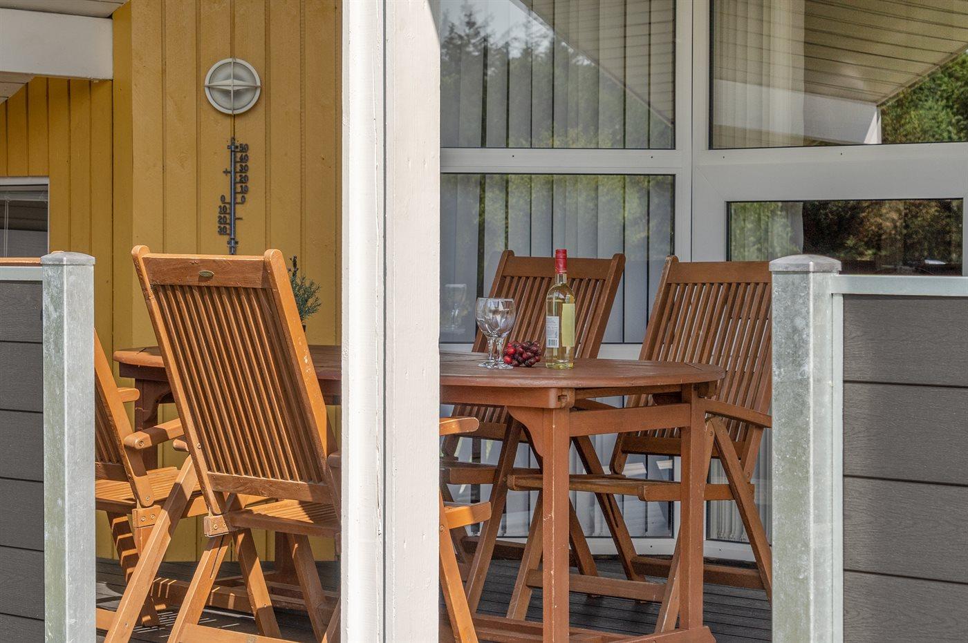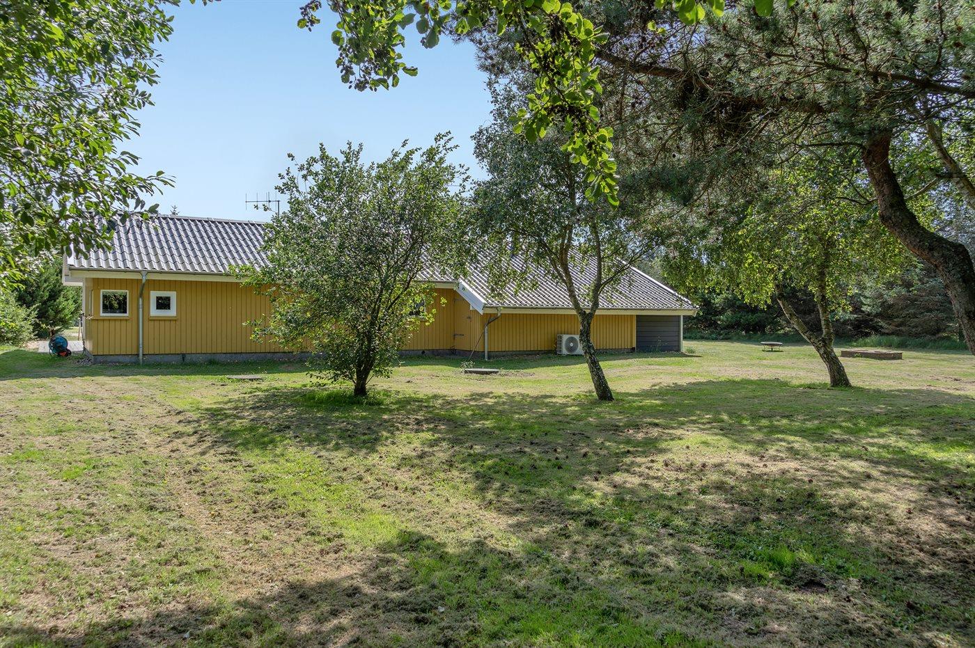 I rolige omgivelser, for enden af blind vej findes dette handicapvenlige feriehus på en 1800 m2 naturgrund. Huset er med brede døre og en rampe til 1 badeværelse. Der er 2 terrasser, hvoraf den største er delvis overdækket (mod syd/vest). Der findes havemøbler, solsenge og kuglegrill. Til børnene er der sandkasse, klatrestativ, gynge og en stor plæne til at spille bold og boltre sig på. Stuen er hyggelig indrettet med brændeovn, TV med parabol, dvd, video, stereoanlæg med cd-afspiller,varmepumpe/klimaanlæg, Play-station med flere forskellige spil kan afhentes ved vores kontor. Der findes også gratis trådløs internetadgang. Der findes 4 soveværelser, deraf 2 med dobbeltseng, 2 med 2 enkelte senge, samt en alkove i stuen med 2 sovepladser. 2 badeværelser med gulvvarme og bruser, håndvask og toilet, deraf 1 med spa og tørretumbler sammen med vaskemaskine. Separat sauna.