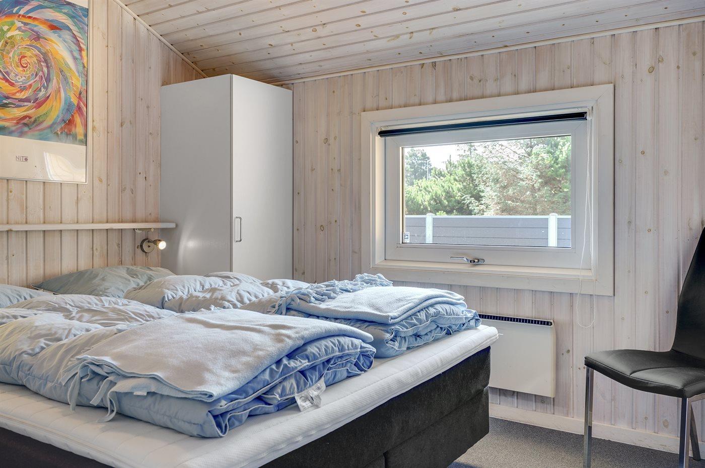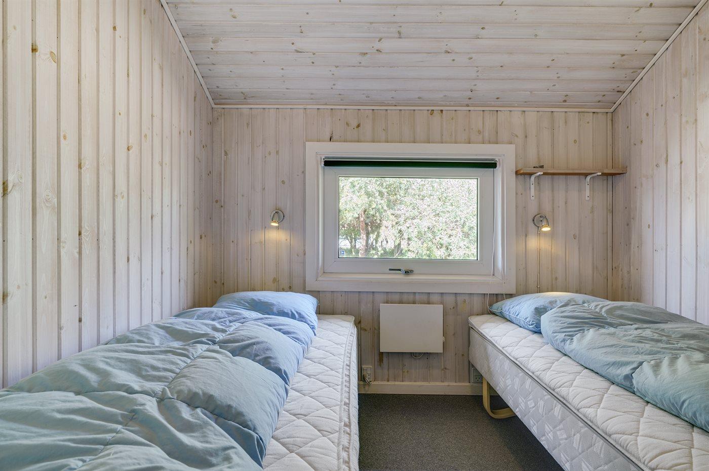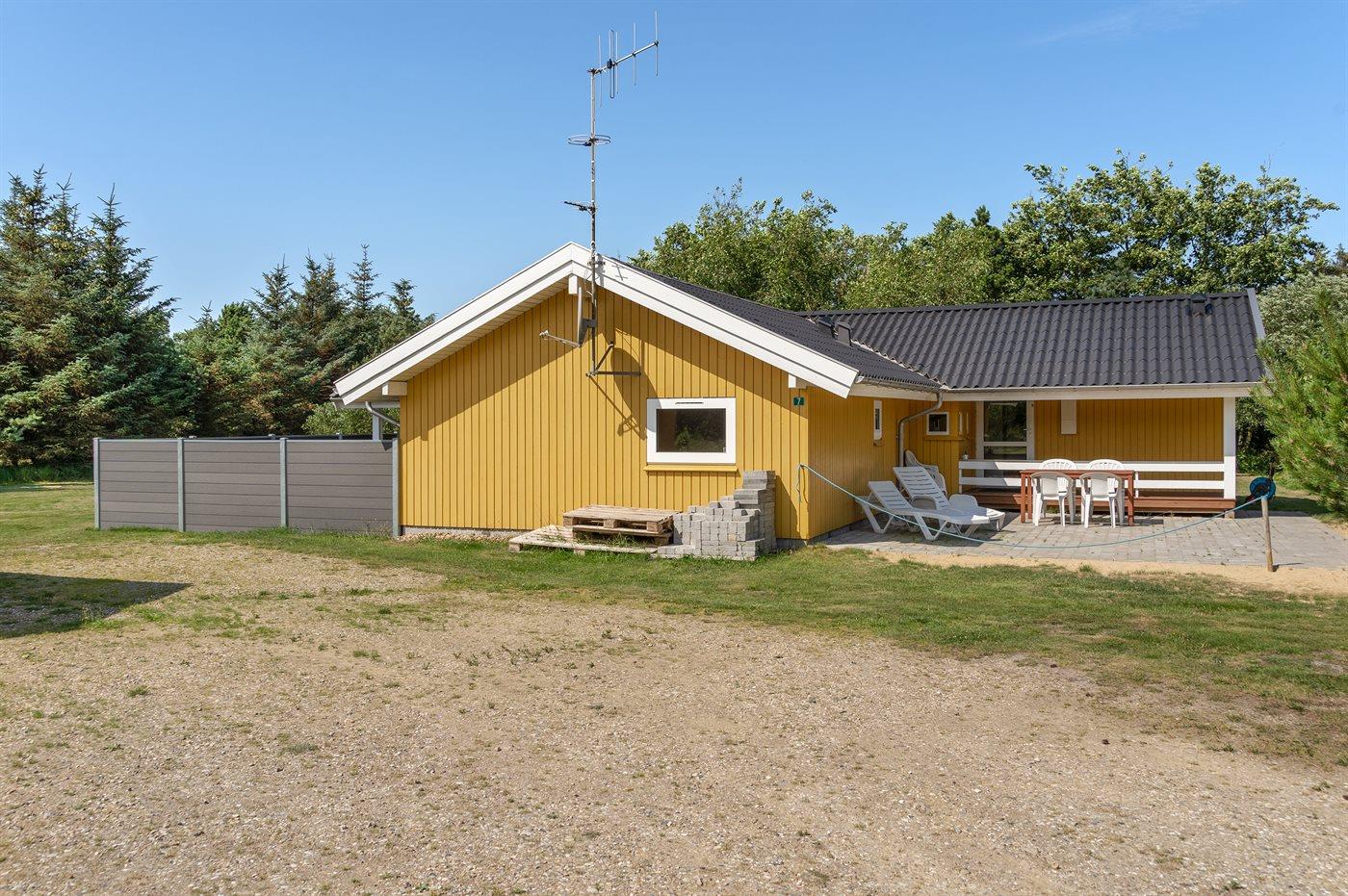 I rolige omgivelser, for enden af blind vej findes dette handicapvenlige feriehus på en 1800 m2 naturgrund. Huset er med brede døre og en rampe til 1 badeværelse. Der er 2 terrasser, hvoraf den største er delvis overdækket (mod syd/vest). Der findes havemøbler, solsenge og kuglegrill. Til børnene er der sandkasse, klatrestativ, gynge og en stor plæne til at spille bold og boltre sig på. Stuen er hyggelig indrettet med brændeovn, TV med parabol, dvd, video, stereoanlæg med cd-afspiller,varmepumpe/klimaanlæg, Play-station med flere forskellige spil kan afhentes ved vores kontor. Der findes også gratis trådløs internetadgang. Der findes 4 soveværelser, deraf 2 med dobbeltseng, 2 med 2 enkelte senge, samt en alkove i stuen med 2 sovepladser. 2 badeværelser med gulvvarme og bruser, håndvask og toilet, deraf 1 med spa og tørretumbler sammen med vaskemaskine. Separat sauna.