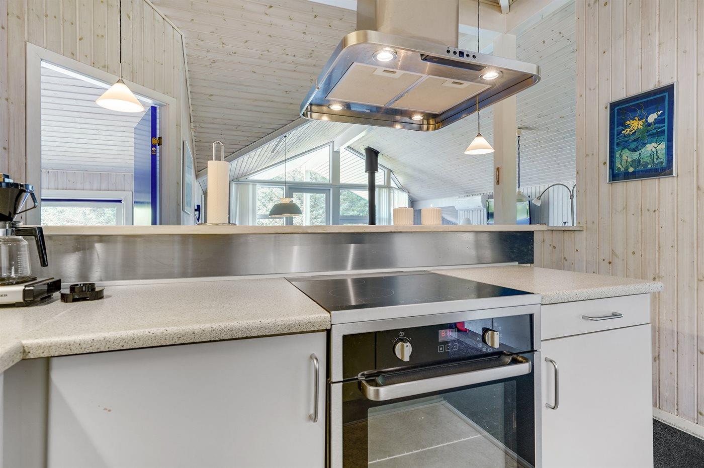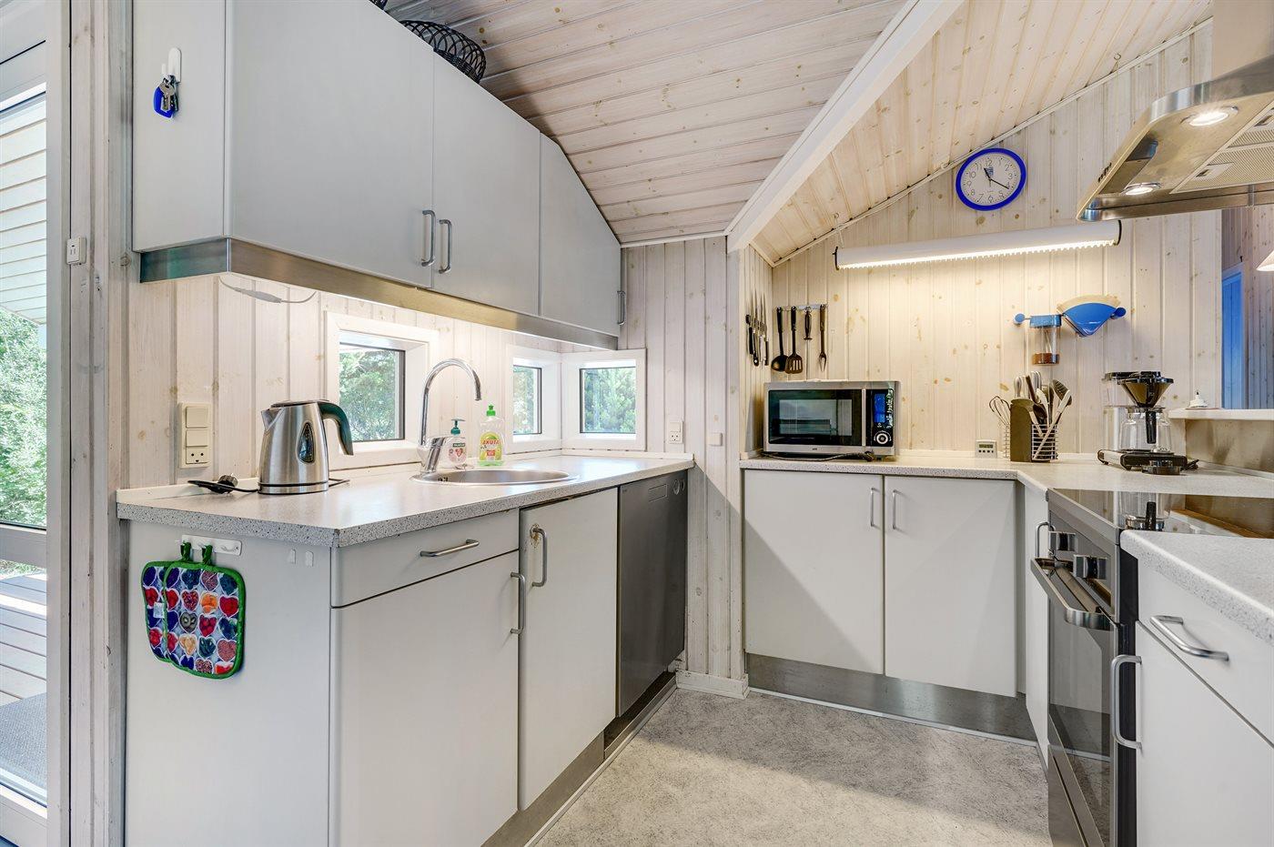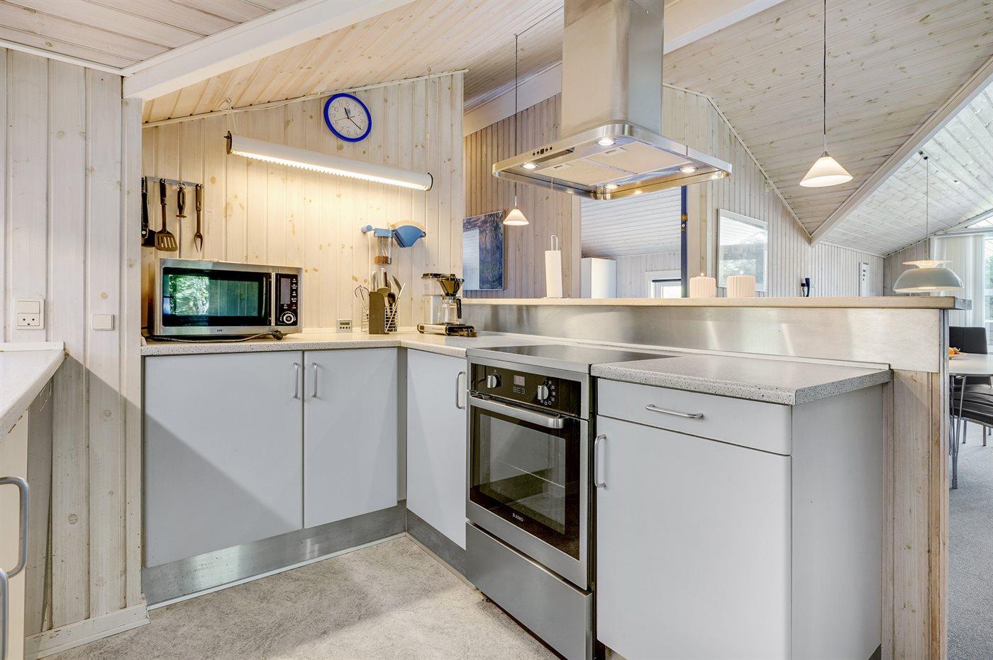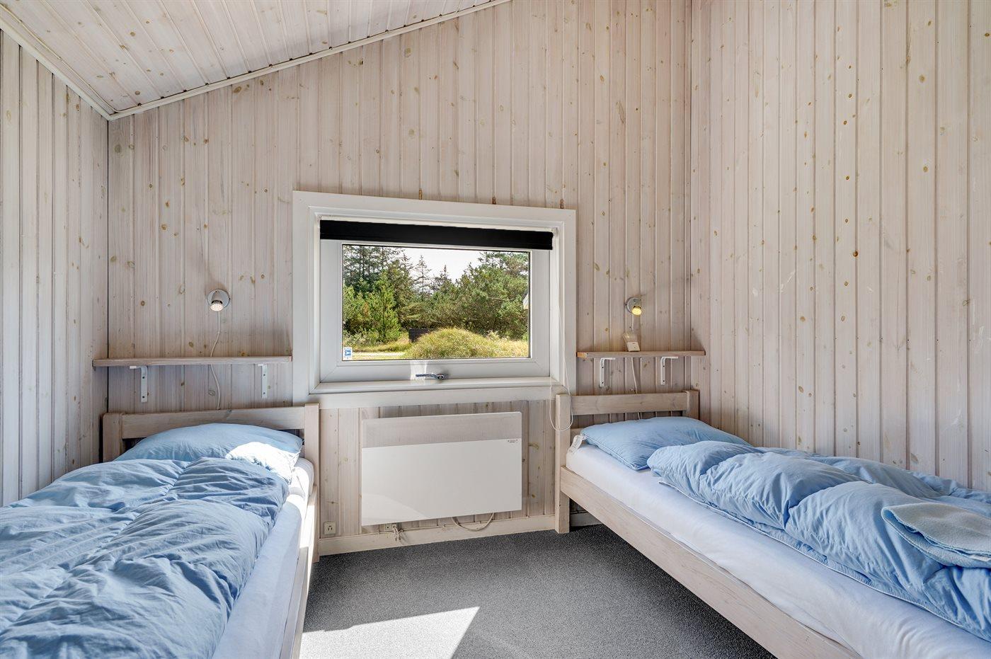 I rolige omgivelser, for enden af blind vej findes dette handicapvenlige feriehus på en 1800 m2 naturgrund. Huset er med brede døre og en rampe til 1 badeværelse. Der er 2 terrasser, hvoraf den største er delvis overdækket (mod syd/vest). Der findes havemøbler, solsenge og kuglegrill. Til børnene er der sandkasse, klatrestativ, gynge og en stor plæne til at spille bold og boltre sig på. Stuen er hyggelig indrettet med brændeovn, TV med parabol, dvd, video, stereoanlæg med cd-afspiller,varmepumpe/klimaanlæg, Play-station med flere forskellige spil kan afhentes ved vores kontor. Der findes også gratis trådløs internetadgang. Der findes 4 soveværelser, deraf 2 med dobbeltseng, 2 med 2 enkelte senge, samt en alkove i stuen med 2 sovepladser. 2 badeværelser med gulvvarme og bruser, håndvask og toilet, deraf 1 med spa og tørretumbler sammen med vaskemaskine. Separat sauna.