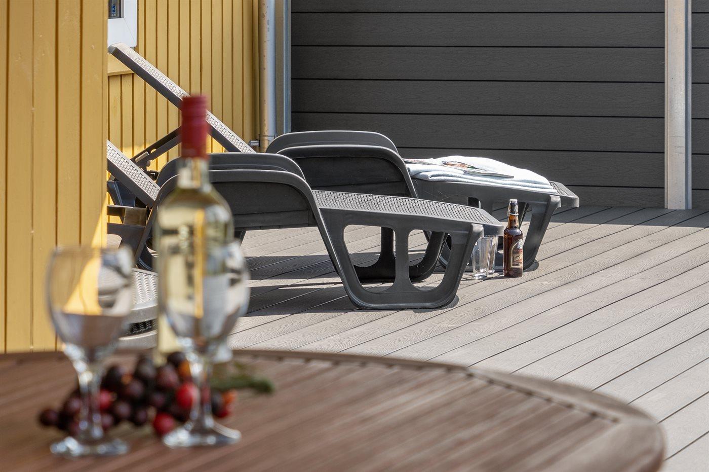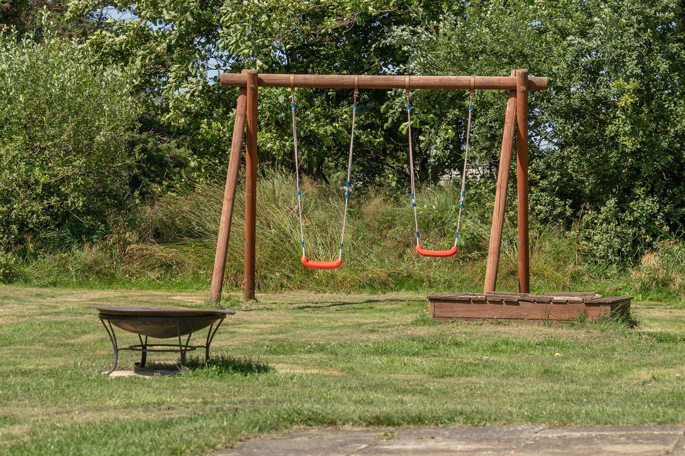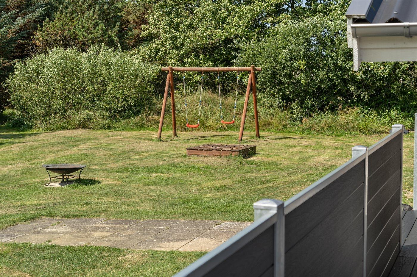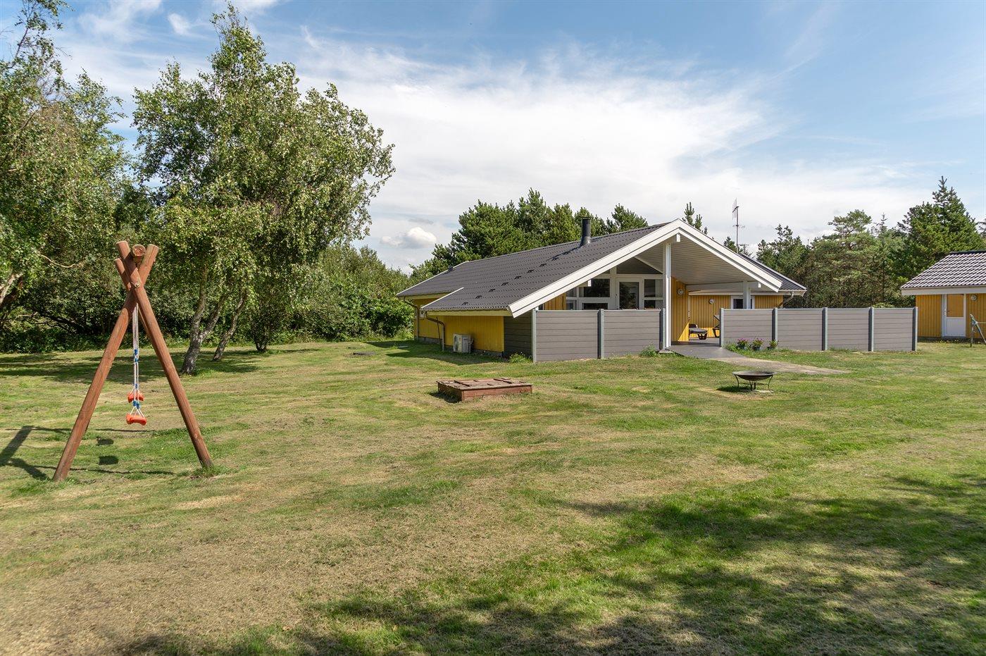 Hyggeligt handicapvenligt feriehus i Vejers Strand med sauna, spabad og stor naturgrund.