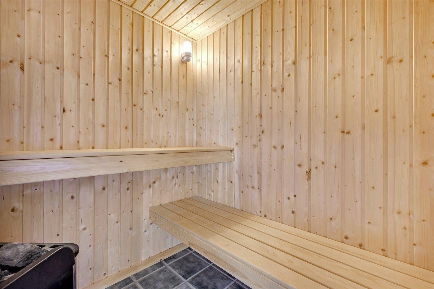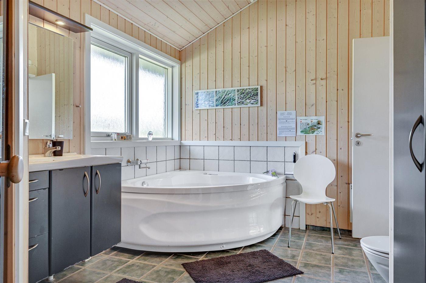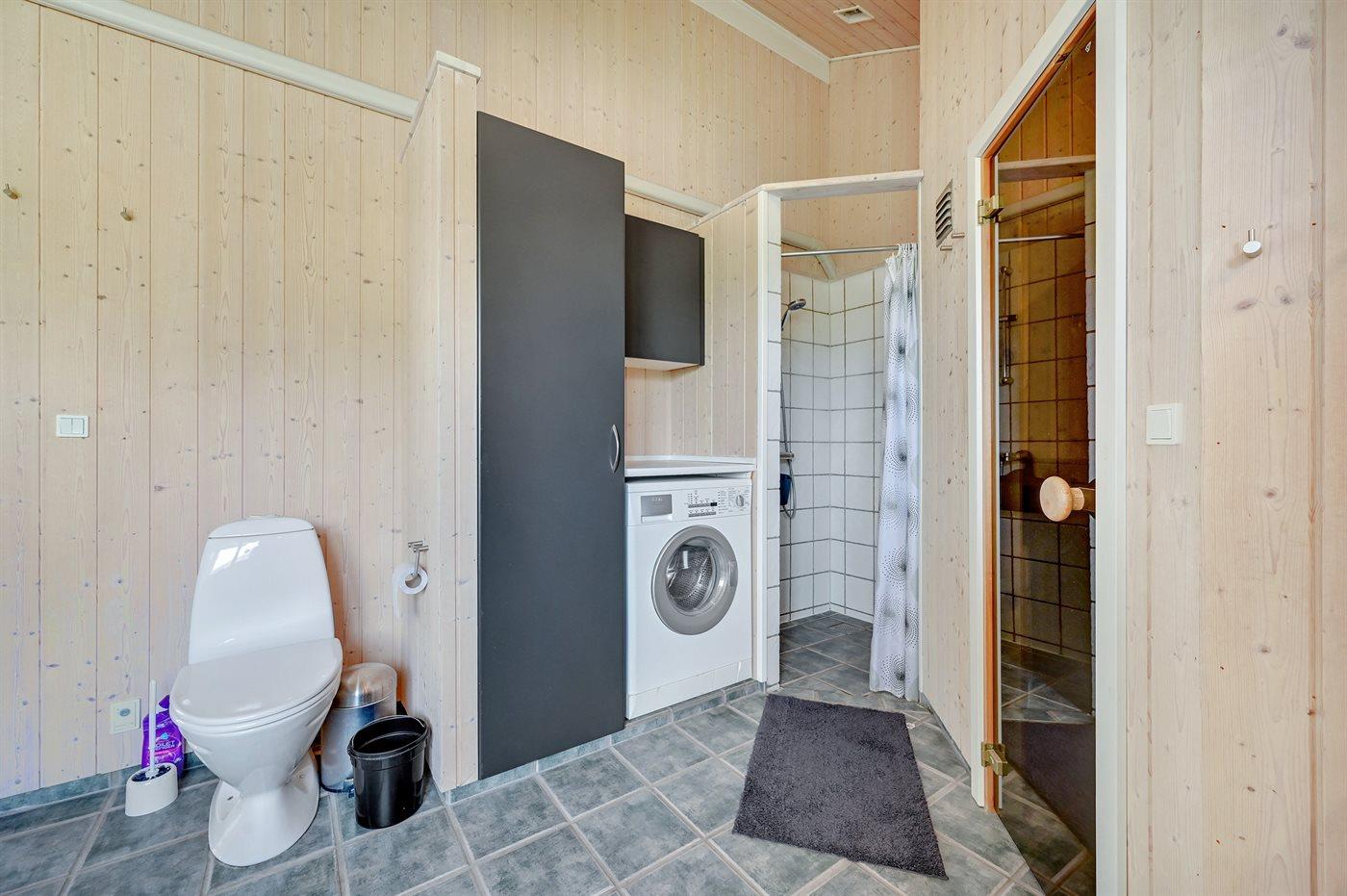 Der er 2 badeværelser med bruseniche og 2 toiletter. Der er gulvvarme på 2 badeværelser. I saunaen er der mulighed for afslapning.