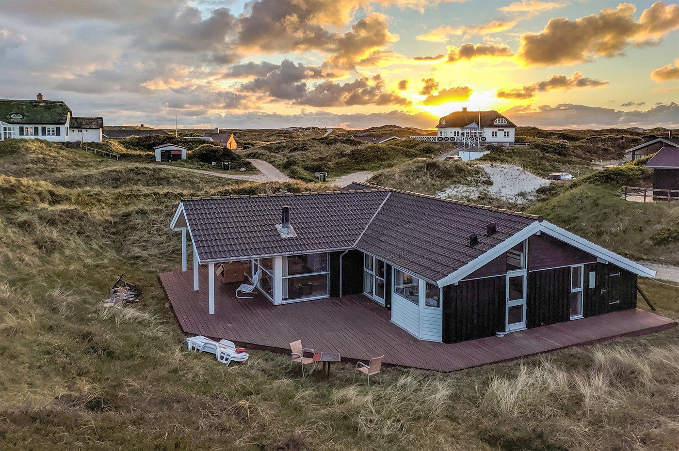 Luksusspahus med internet, tæt på byen og ca. 150 meter fra havet, huset ligger på kuperet og ugenert klitgrun kun 150 meter fra den eftertragtede bilfri Vejers Nordstrand. Der er hems på 12 m2