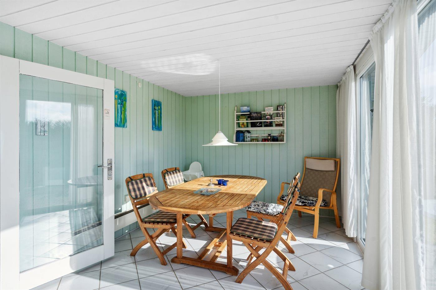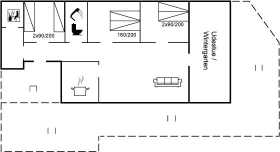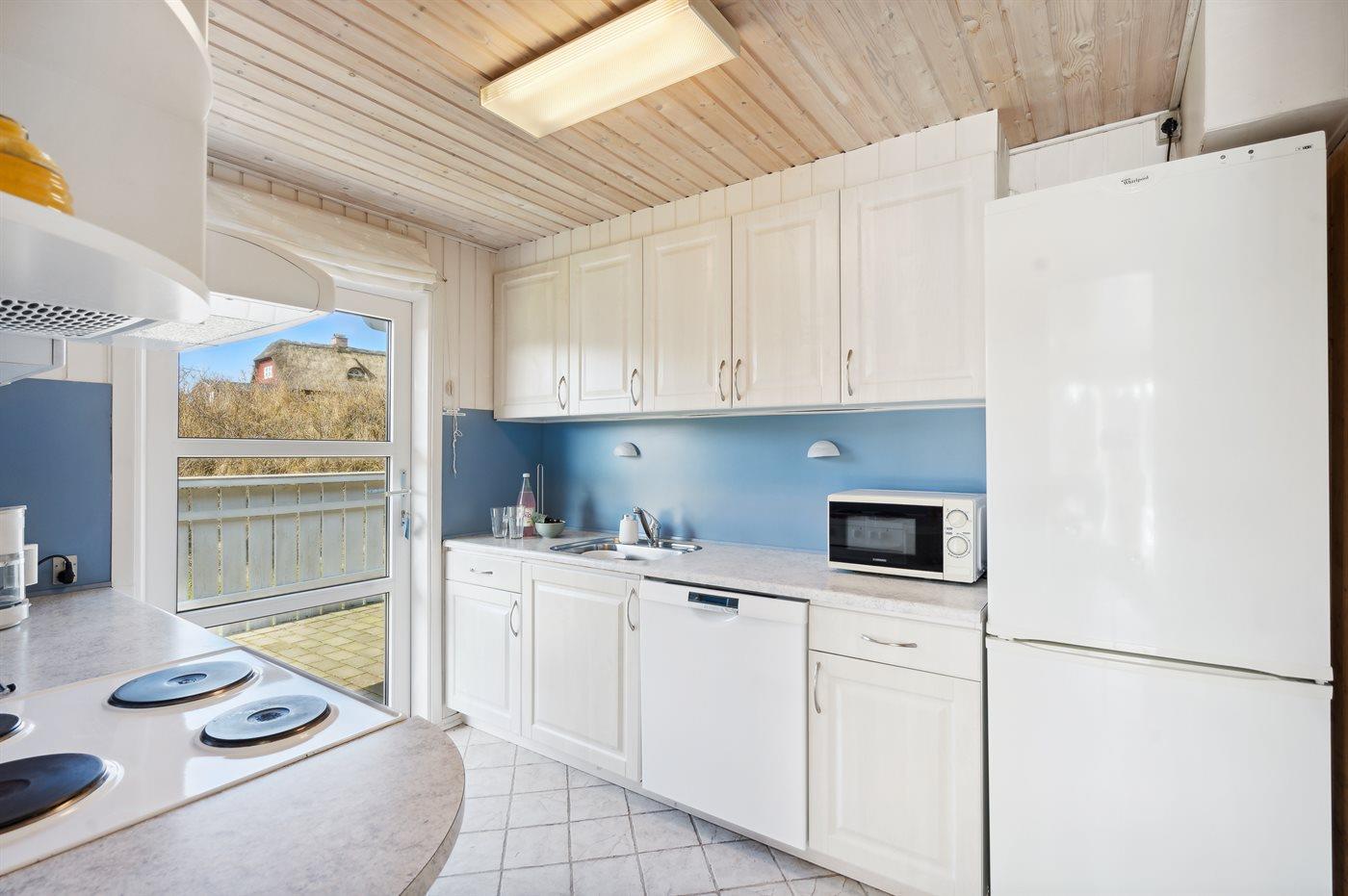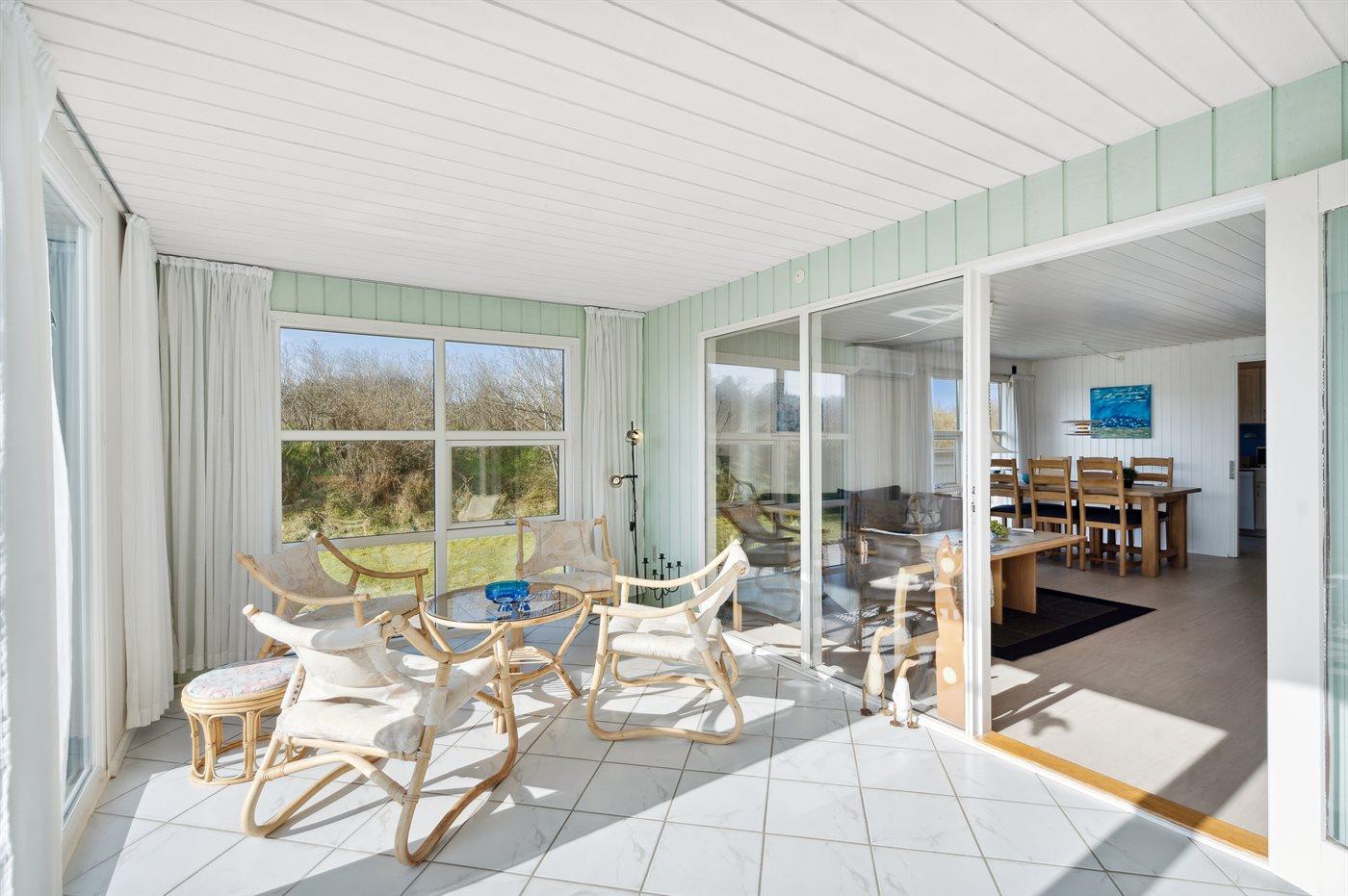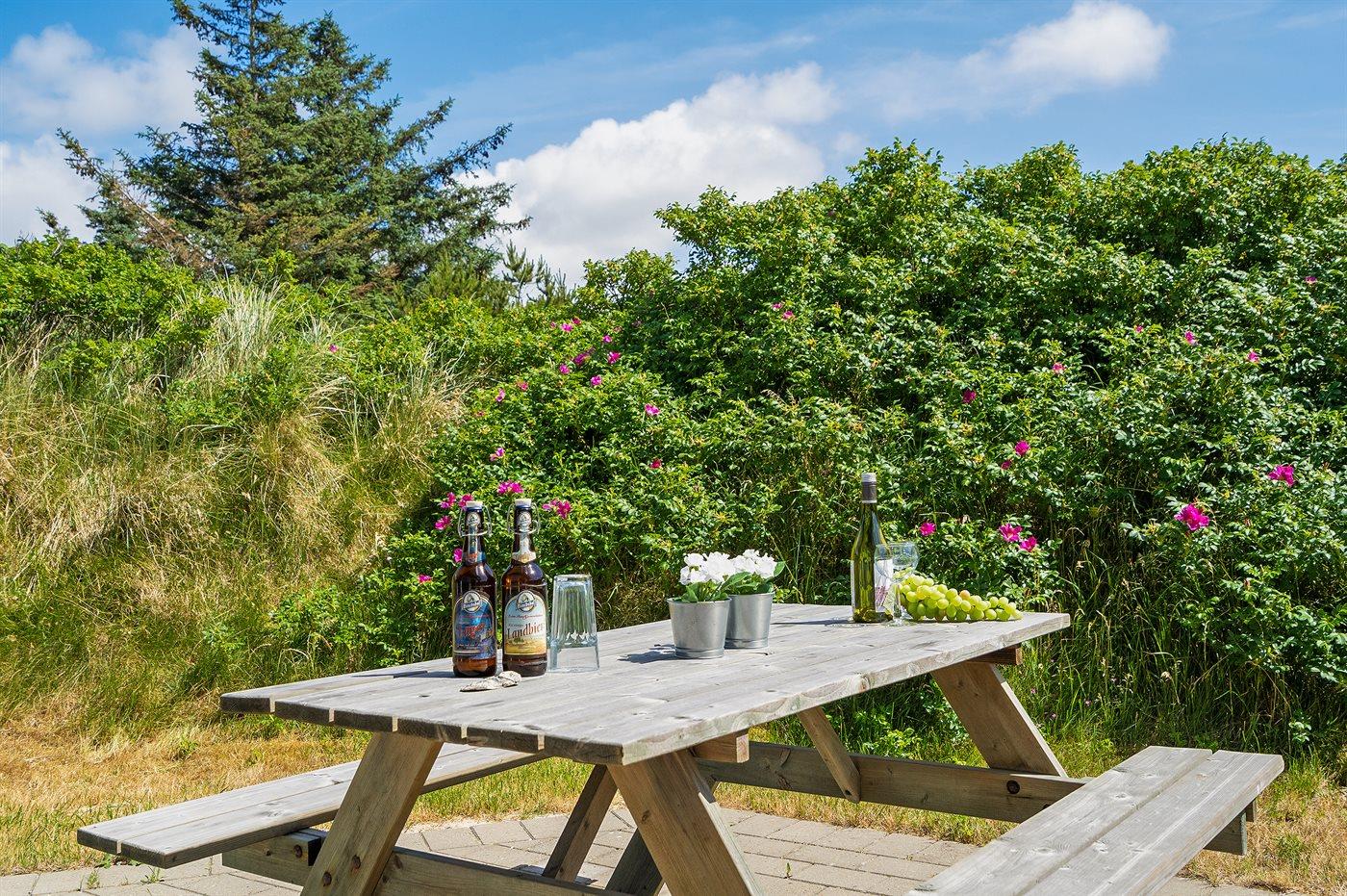 Kun 500 m fra Vesterhavet ligger dette dejlige sommerhus, som egner sig til 6 personer. Ferieboligen er på 115 m² og er bygget i 1970. I 2007 gennemgik ferieboligen en delvis renovering og er løbende vedligeholdt og renoveret. Ferieboligen har vaskemaskine, hyggelig brændeovn og sauna, og der er gode muligheder for afslapning. Ferieboligen er beliggende på en 1800 m² stor naturgrund. Der er carport til rådighed og parkering på grunden, lige ved ferieboligen. Nærmeste handelsmuligheder er beliggende i gåafstand, således er der kun mellem 100 og 300 m til handelsmuligheder med spisesteder, café, bar, dagligvarer, bager, sportstøj, kunst, smykker og meget mere. Til ferieboligen hører et 20 m² åben terrasse og 20 m² overdækket terrasse. Ligeledes er der adgang til udestue med spiseplads og hyggekrog. Sovepladserne fordeler sig på 3 værelser; 2 med dobbeltseng og 1 med 2 enkeltsenge. Køkkenet er udstyret med køleskab, fryser med en kapacitet på 60 liter, el-komfur med 4 kogeplader samt bageovn, mikrobølgeovn, opvaskemaskine, samt diverse husholdningsmaskiner og udstyr. Badeværelse med bruseniche og toilet. Ferieboligen indeholder ligeledes TV med danske og tyske kanaler, radio samt trådløs internetforbindelse.