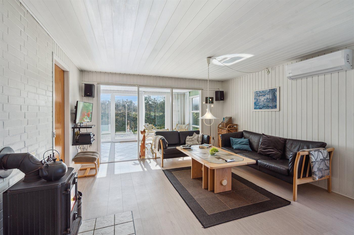 Hyggeligt sommerhus kun 500 m fra Vesterhavet med sauna, brændeovn og store terrasser på naturgrund.
