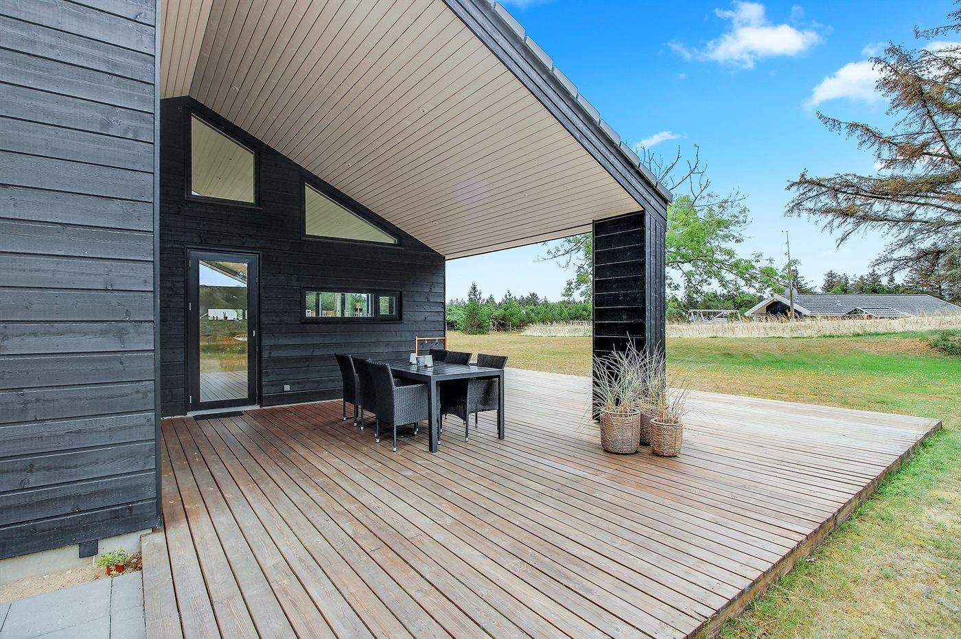 Ferieboligen er beliggende på en 2000 m² stor naturgrund. Der er 800 m til havet. Nærmeste forretning er beliggende i en afstand af 500 m. Til ferieboligen hører 114 m² terrasseareal. Desuden er der 32 m² overdækket terrasse. Grill til rådighed. Parkering ved ferieboligen.