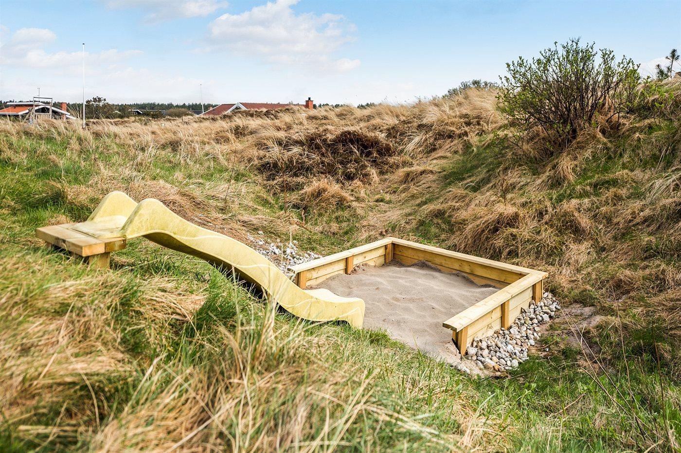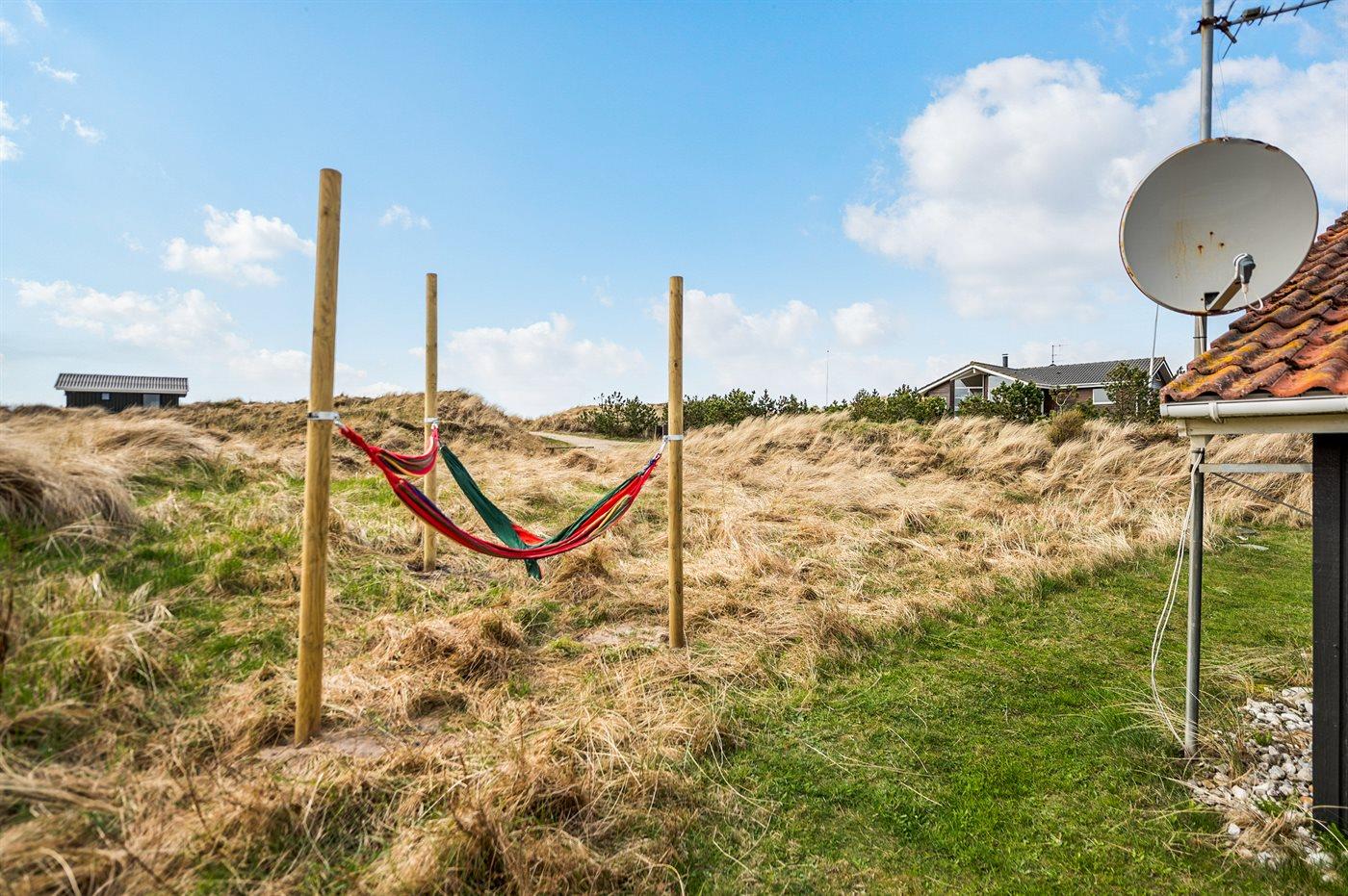 Ferieboligen er beliggende på en 2152 m² stor naturgrund. Der er 700 m til havet. Der er en sø i en afstand af 200 m. Nærmeste forretning er beliggende i en afstand af 1000 m. Til ferieboligen hører 60 m² indhegnet terrasse. Der er redskabsrum. Gynge. Sandkasse. Trampolin. Grill til rådighed. Parkering ved ferieboligen.