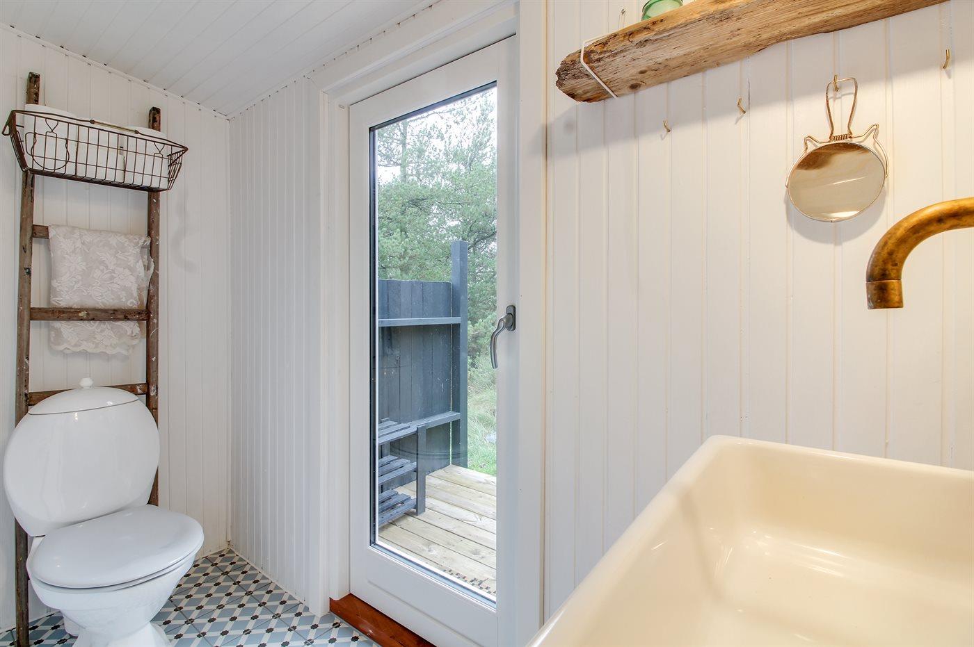 Ferieboligen er beliggende på en 2500 m² stor grund i skov/plantage. Der er 400 m til havet. Nærmeste forretning er beliggende i en afstand af 500 m. Til ferieboligen hører 40 m² terrasseareal. Udgang til altan. Udendørs bruser.