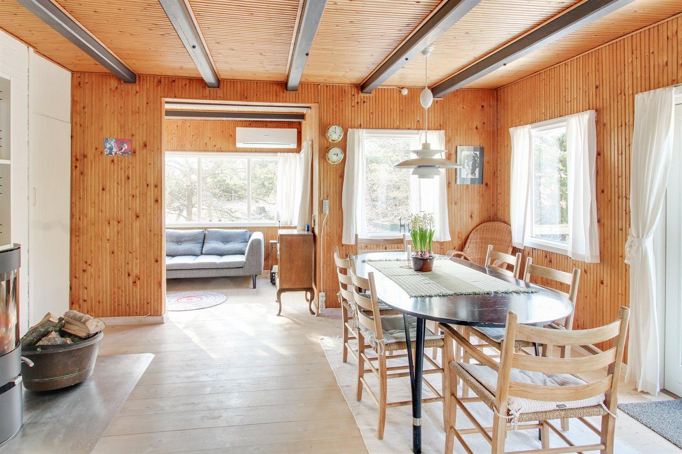 Hyggeligt sommerhus beliggende inde i skoven i rolige og naturskønne omgivelser. Huset ligger tilbagetrukket på grunden og en lang sti fører derfor fra parkeringspladsen til huset.