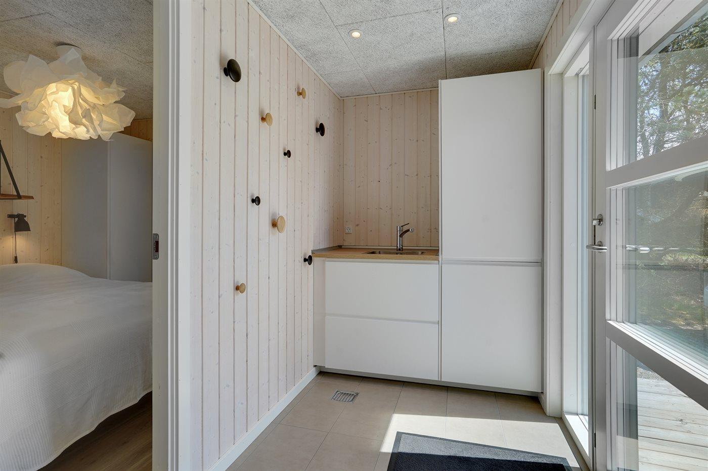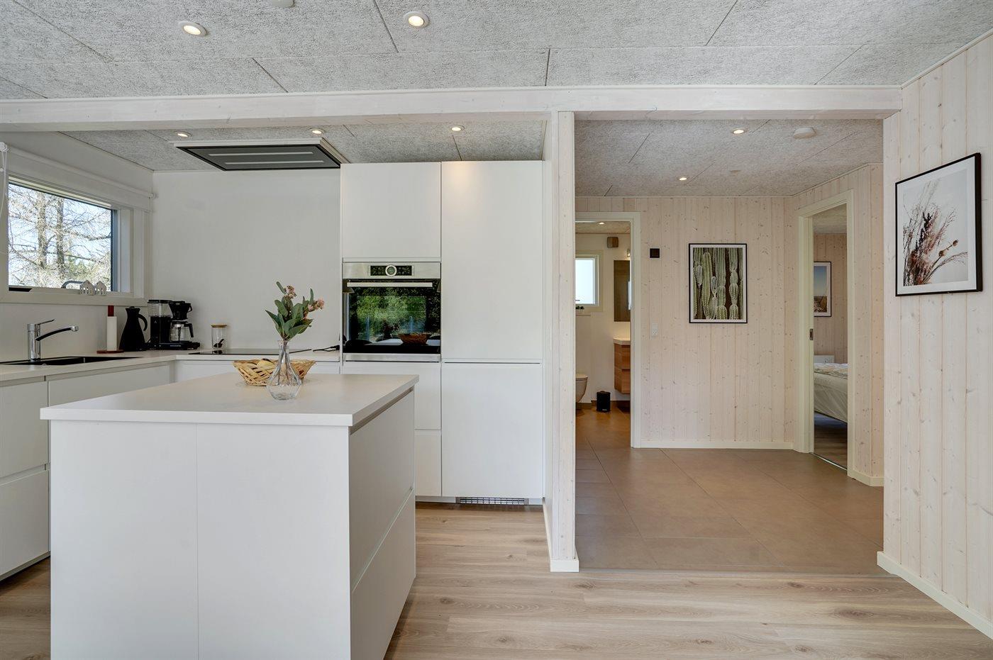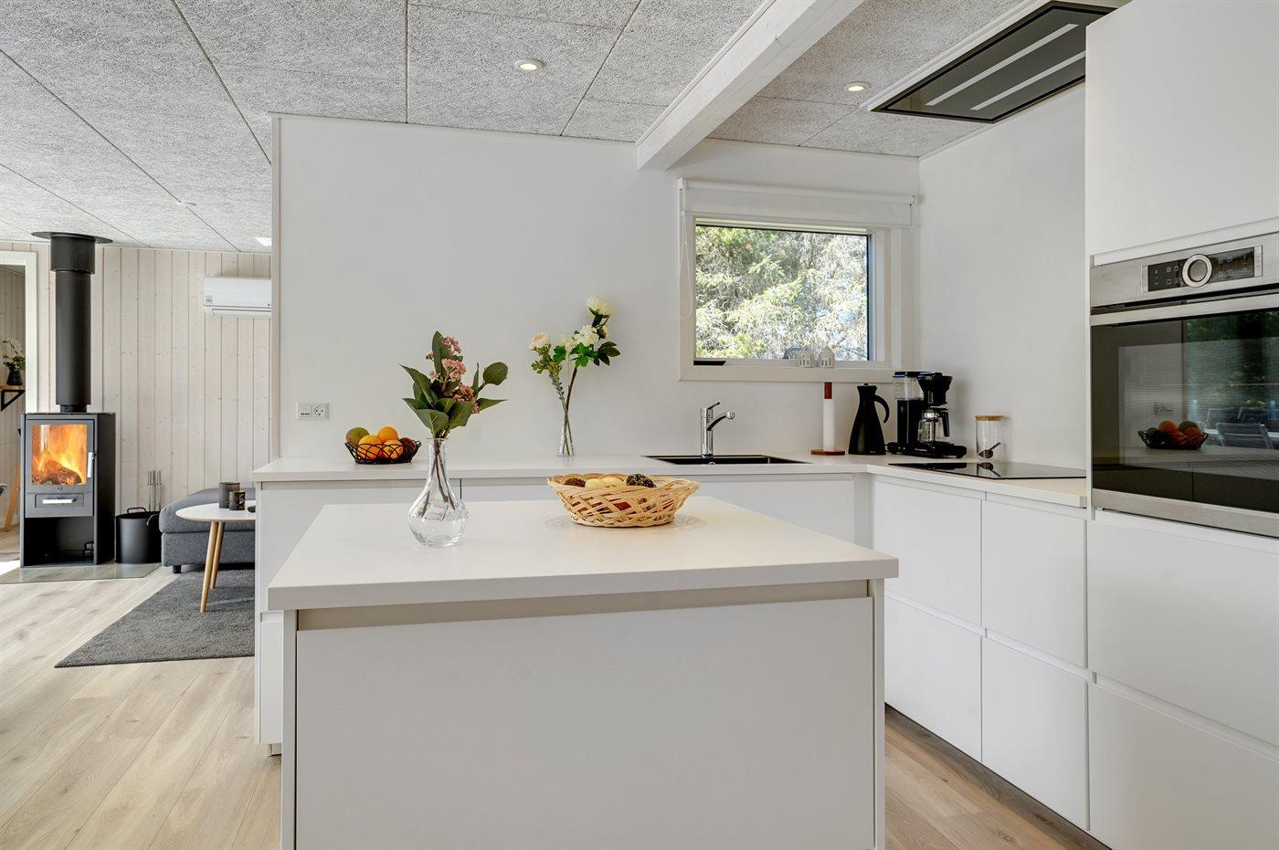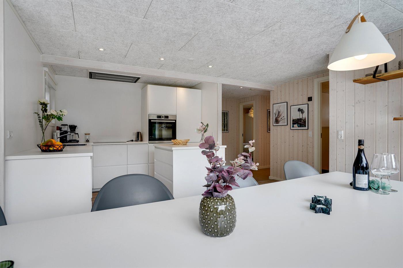 Køkkenet er udstyret med 1 køleskab. Der er 4 induktionskogeplader, varmluftovn, mikrobølgeovn samt opvaskemaskine.