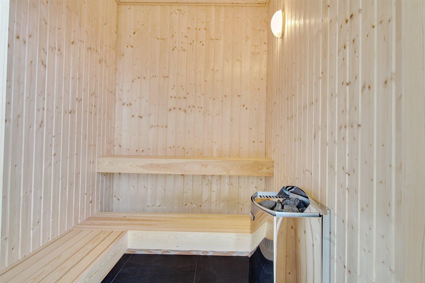 Der er 2 badeværelser med bruseniche og 2 toiletter. Der er gulvvarme på 2 badeværelser. I saunaen er der mulighed for afslapning.