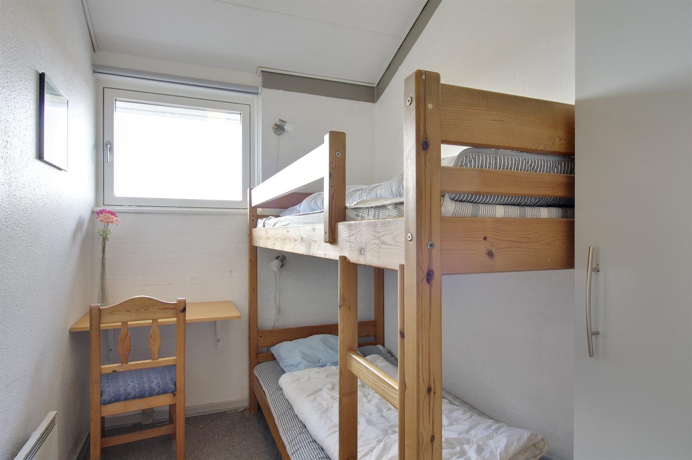 Der er i alt 3 soveværelser. Sovepladserne fordeler sig på: 2 sovepladser i dobbeltseng. 2 sovepladser i enkeltsenge. 2 sovepladser i køjeseng.