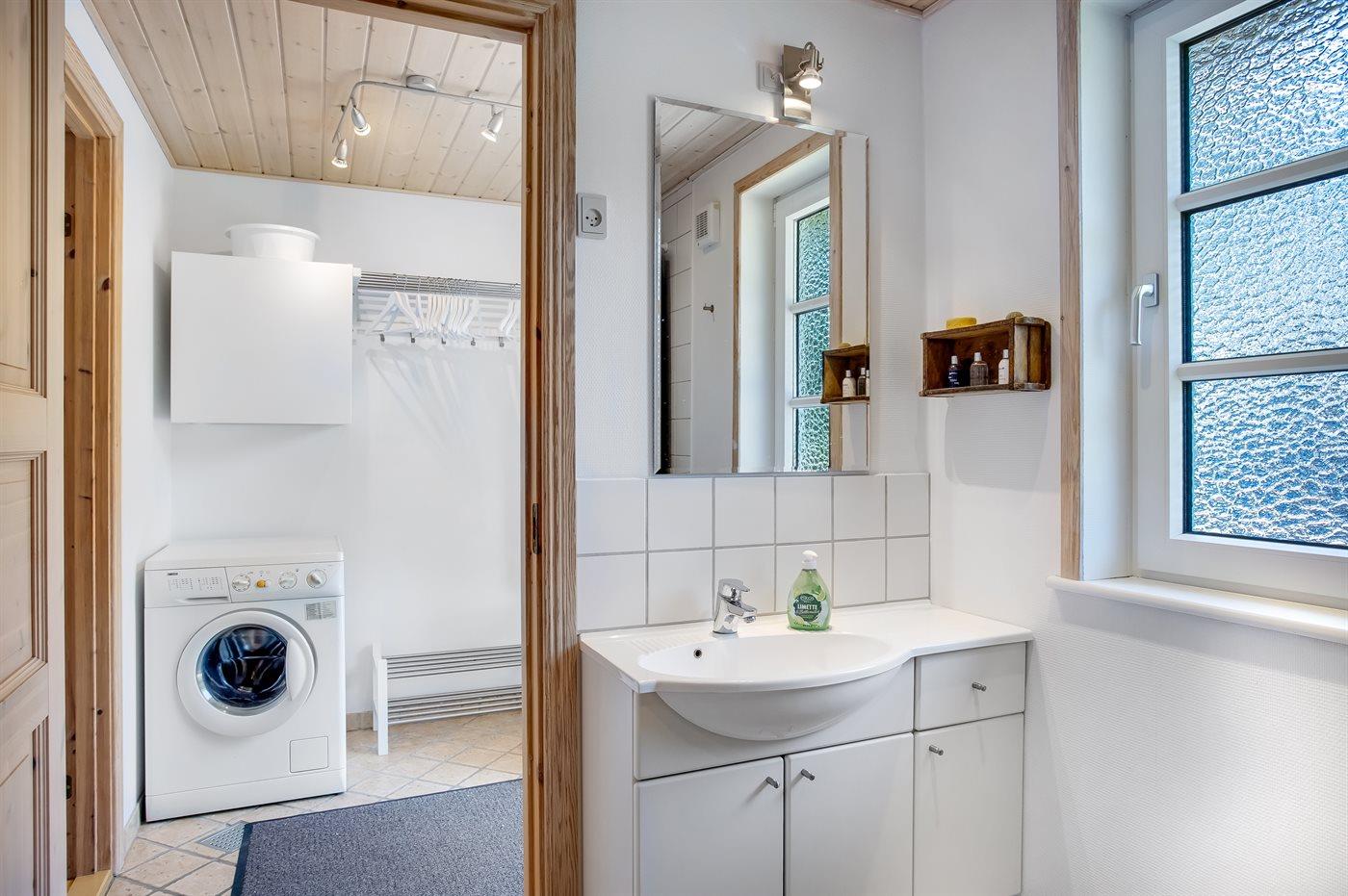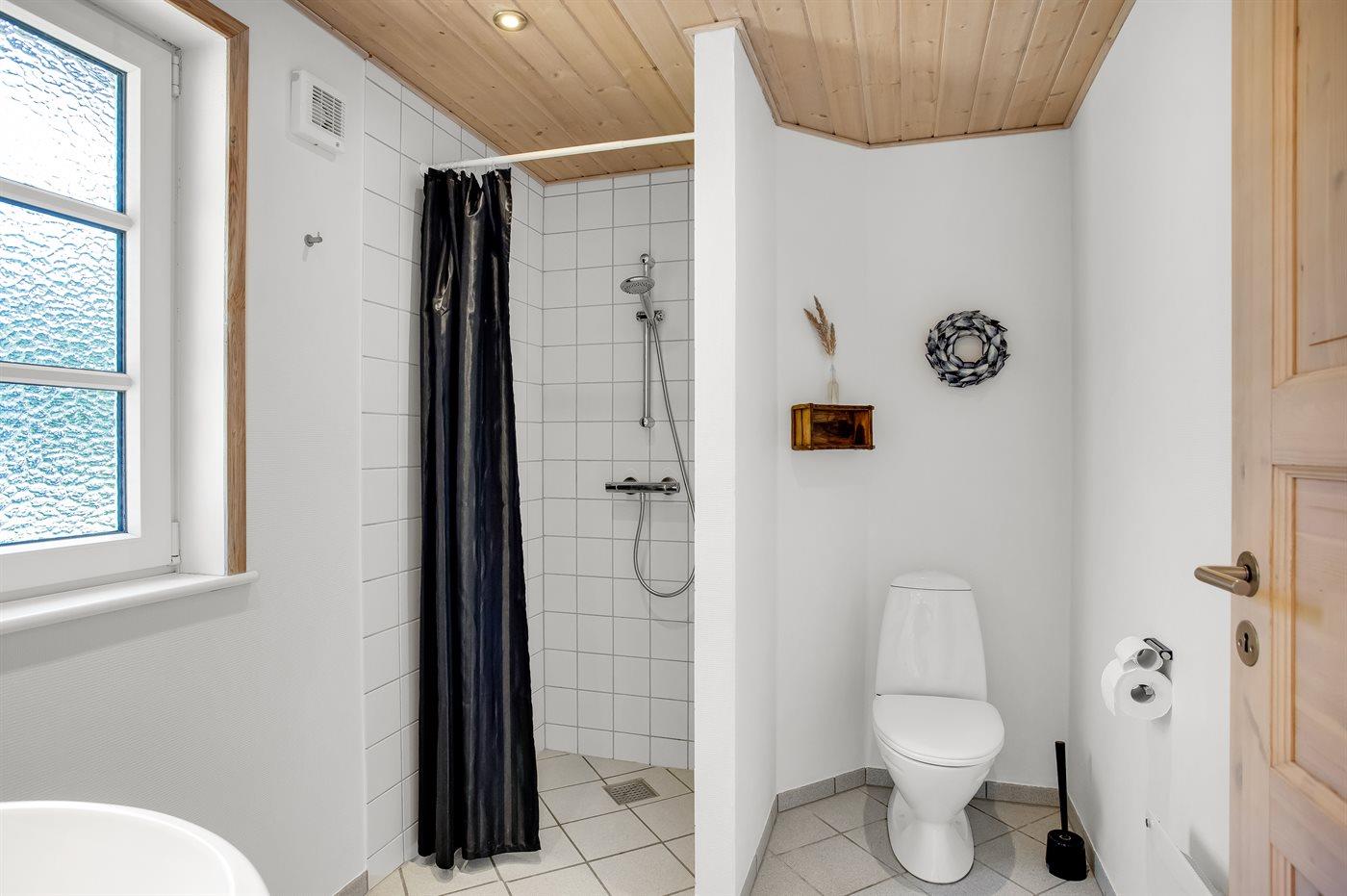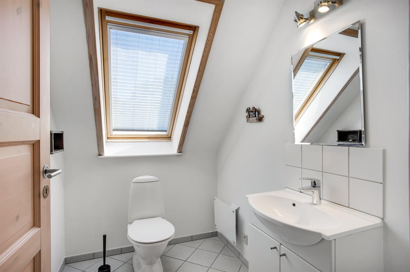 Der er 1 badeværelse med bruseniche og 2 toiletter, heraf 1 gæstetoilet. Der er gulvvarme på 1 badeværelse. Der er gulvvarme på gæstetoilettet.