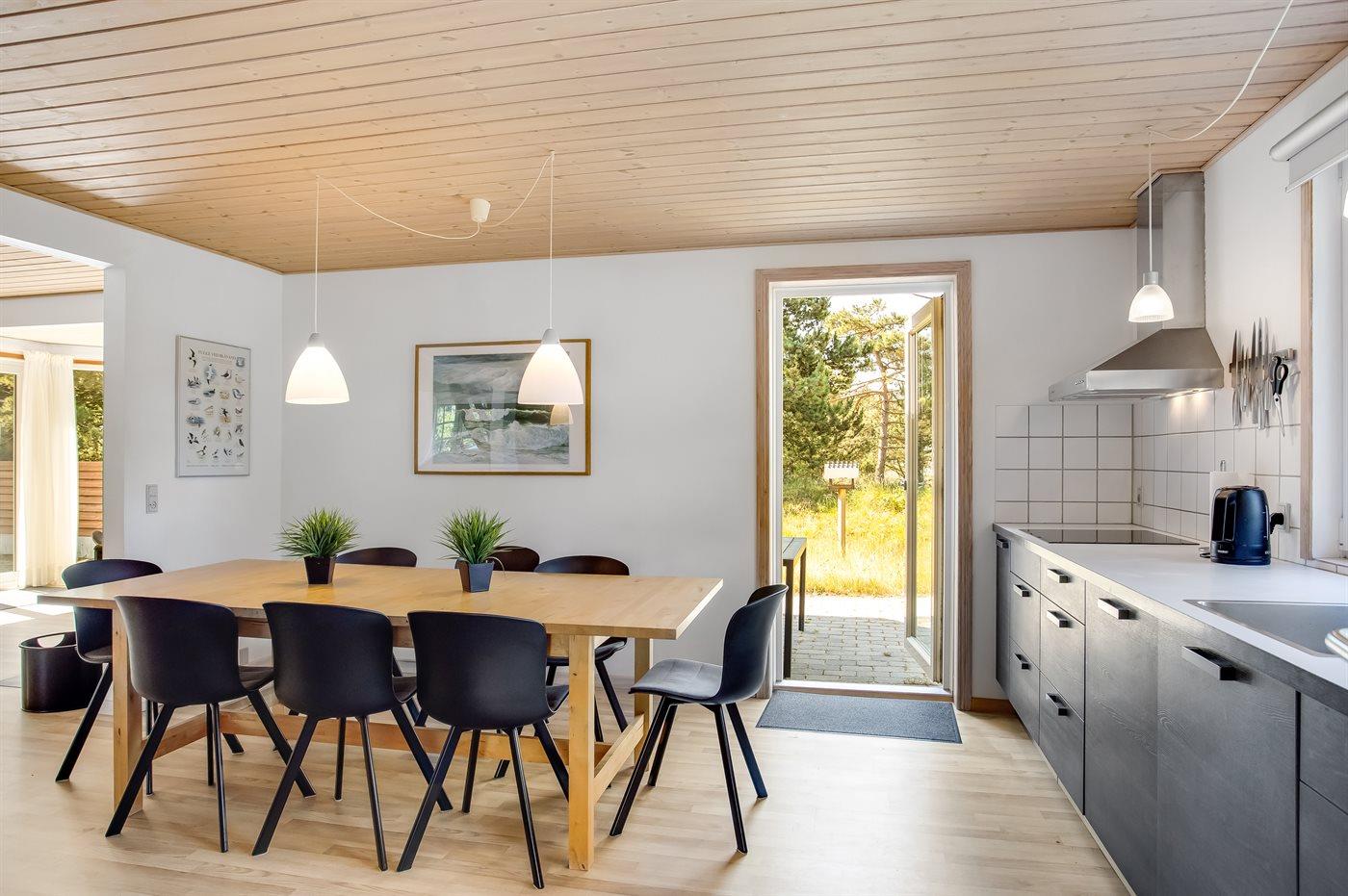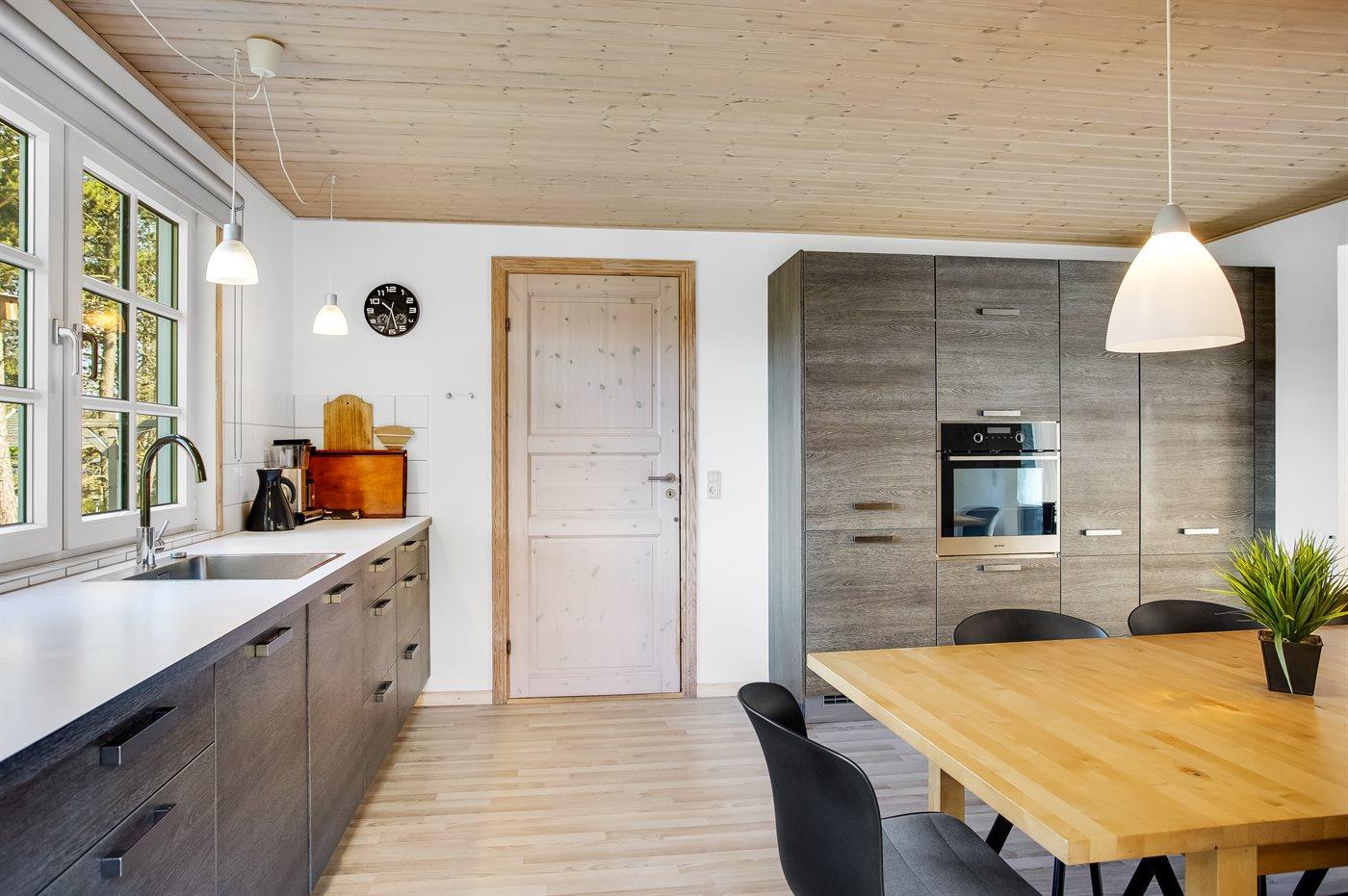 Køkkenet er udstyret med 1 køleskab. Der er 4 induktionskogeplader, varmluftovn, mikrobølgeovn samt opvaskemaskine.