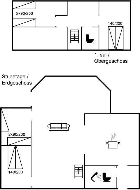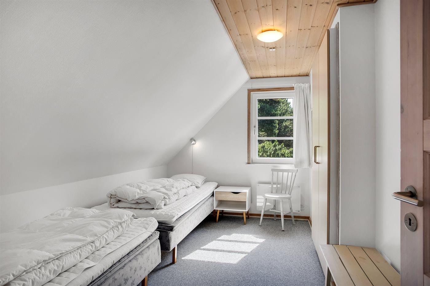 Der er i alt 4 soveværelser. Sovepladserne fordeler sig på: 4 sovepladser i dobbeltsenge. 4 sovepladser i enkeltsenge.