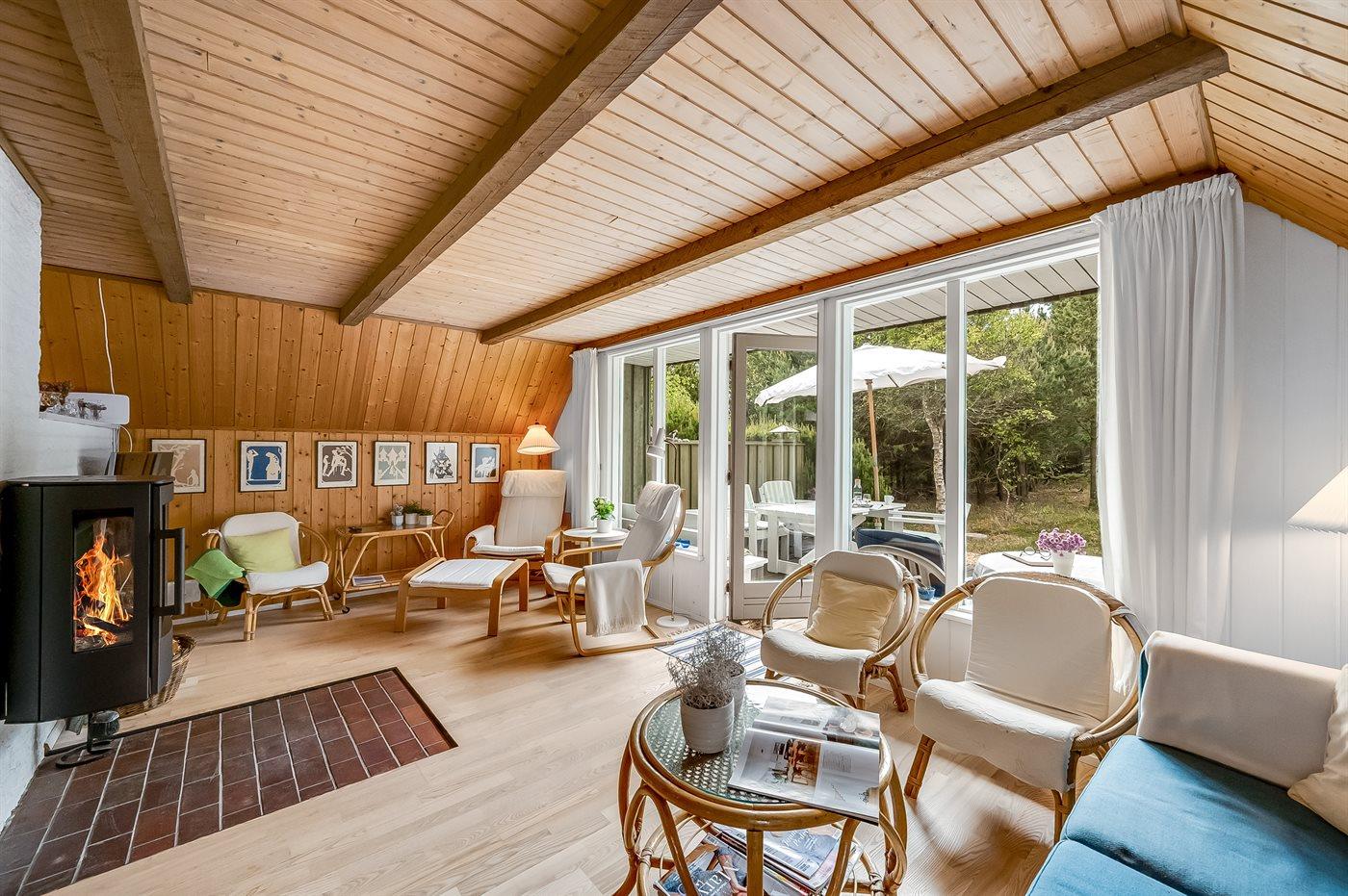 Dette charmerende sommerhus er placeret på den skønneste naturgrund med kun 800 meter til vandet. Selvom du bor midt i Vejers by, emmer der af fuglesang og dyreliv. Haven er ugeneret, og der er overdækket terrasse, hvor du kan nyde mange gode timer i den smukke, omkringliggende natur.