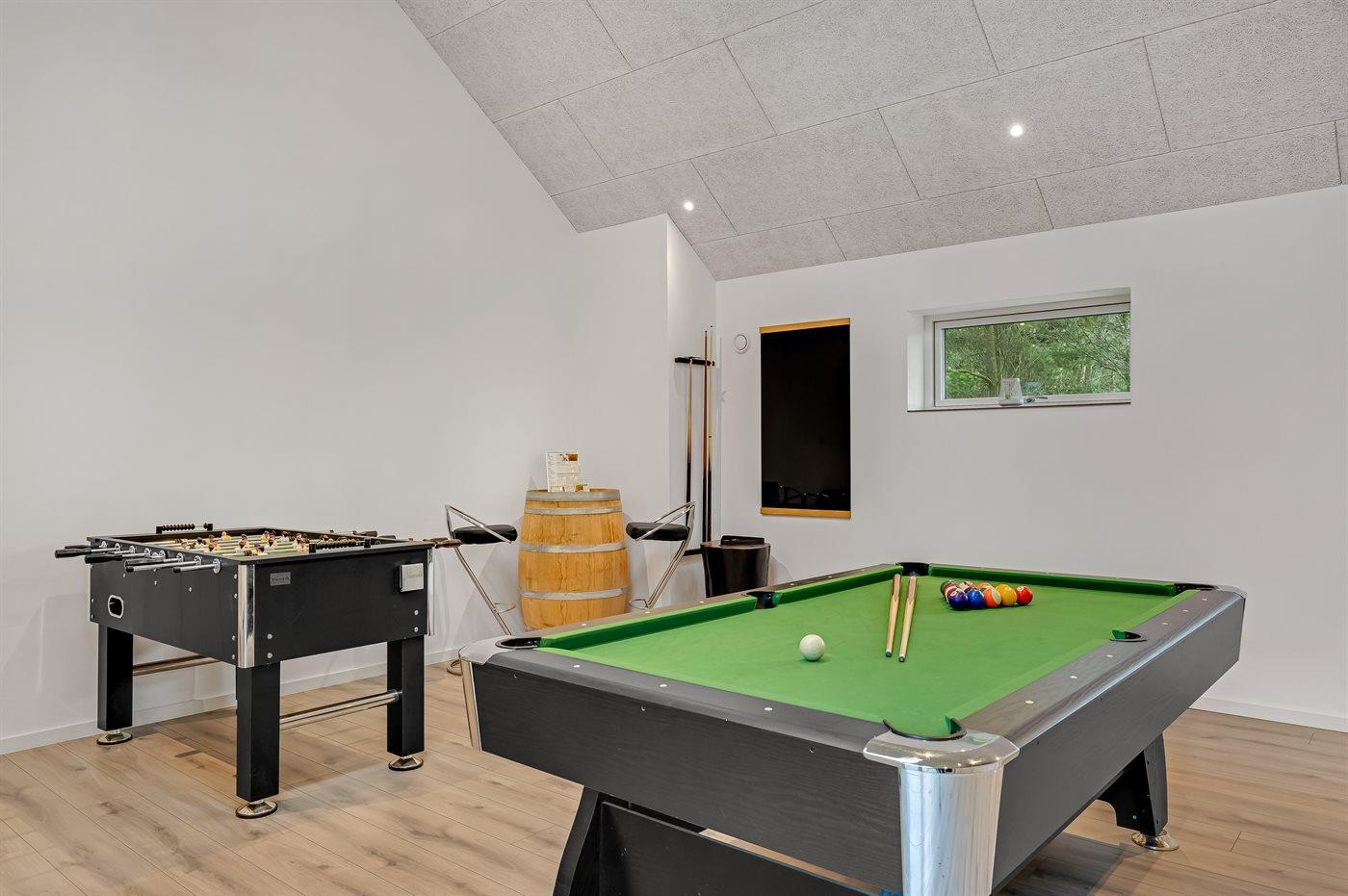 Aktivitetsrummet er husets naturlige samlingspunkt, hvor både store og små kan hygge sig i timevis med billard, poolbord og bordfodbold. Perfekt når vejret kalder på indendørs sjov.