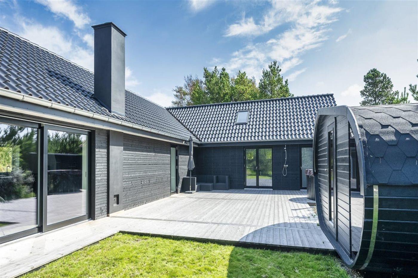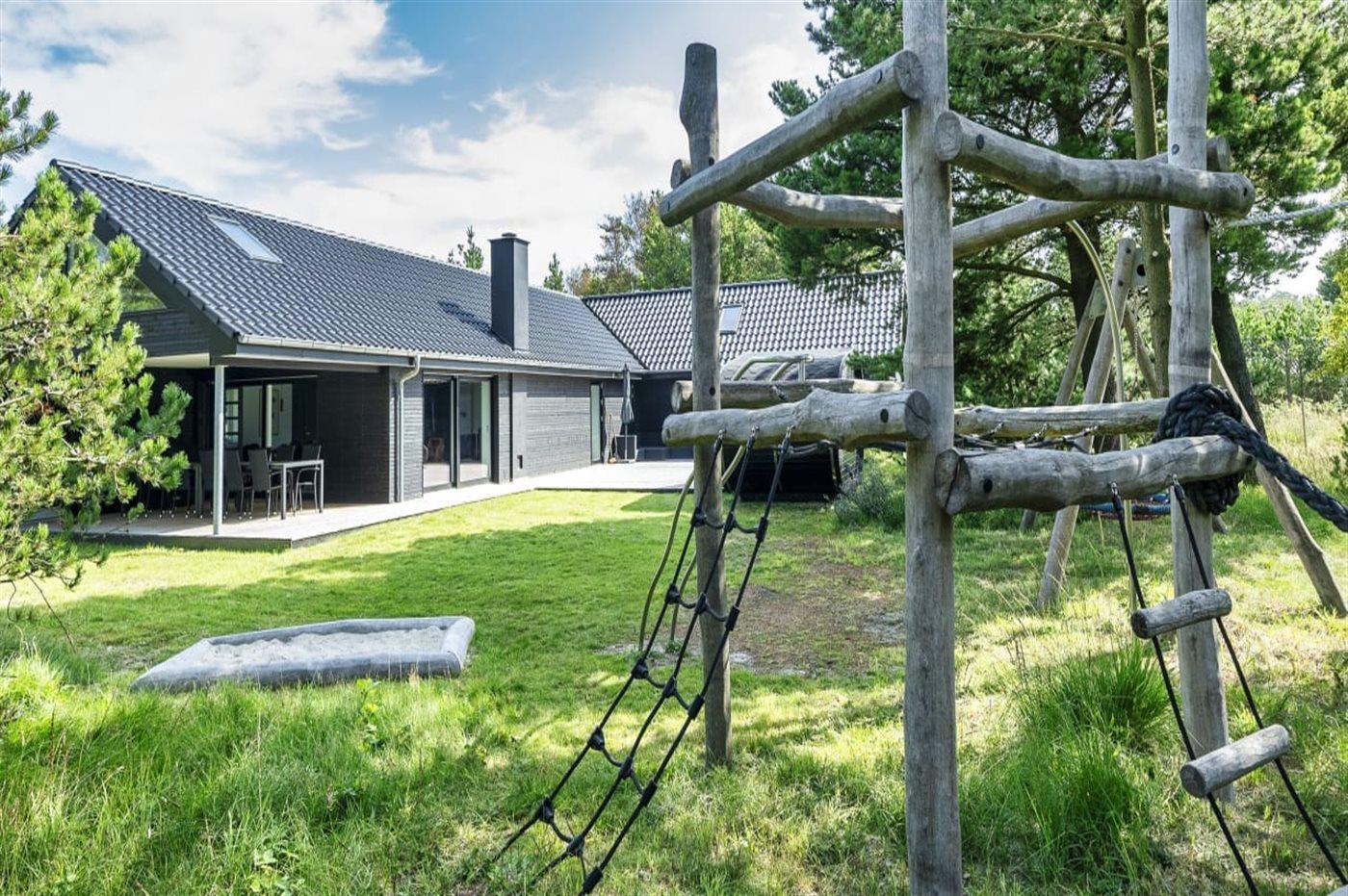 Moderne familievenligt aktivitets- og feriehus nær Vejers Strand med spa, sauna og stor terrasse.