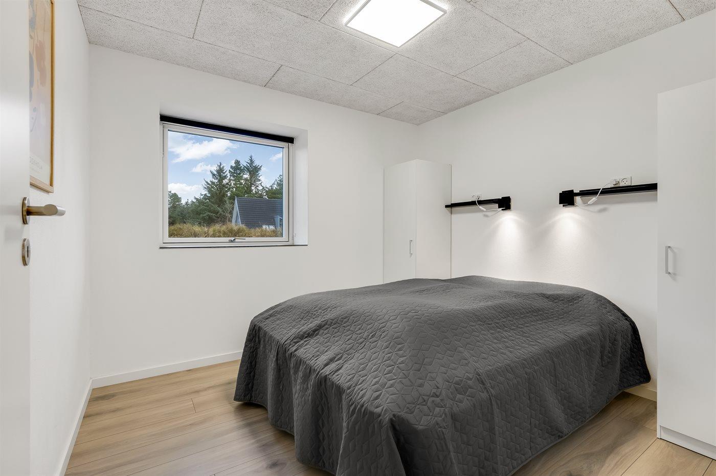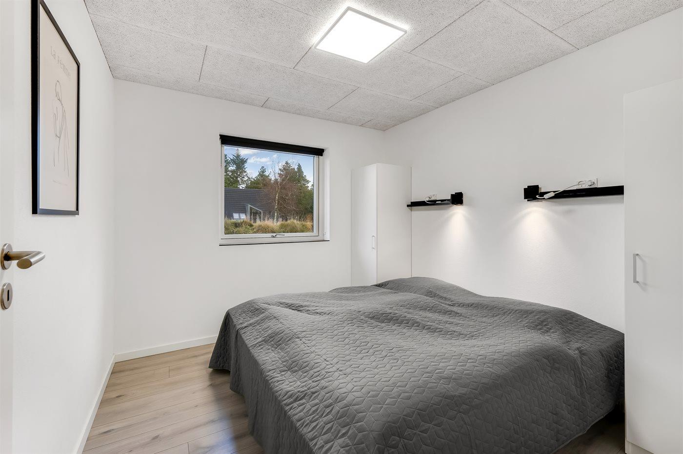 Der er i alt 5 soveværelser. Sovepladserne fordeler sig på: 6 sovepladser i dobbeltsenge. 4 sovepladser i enkeltsenge. 2 sovepladser i køjeseng. 2 af disse sovepladser befinder sig på husets hems.
