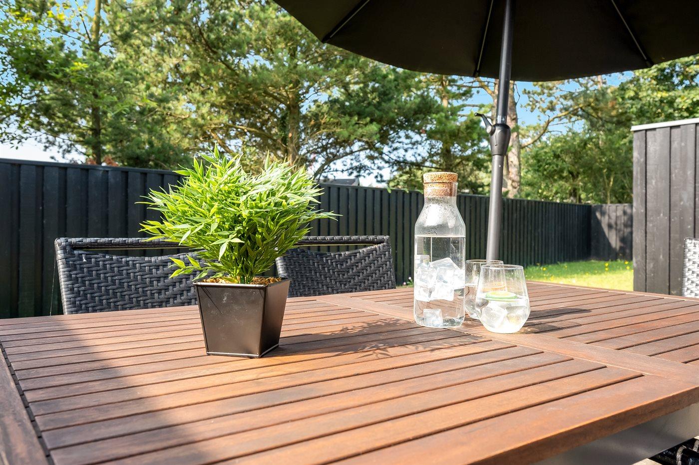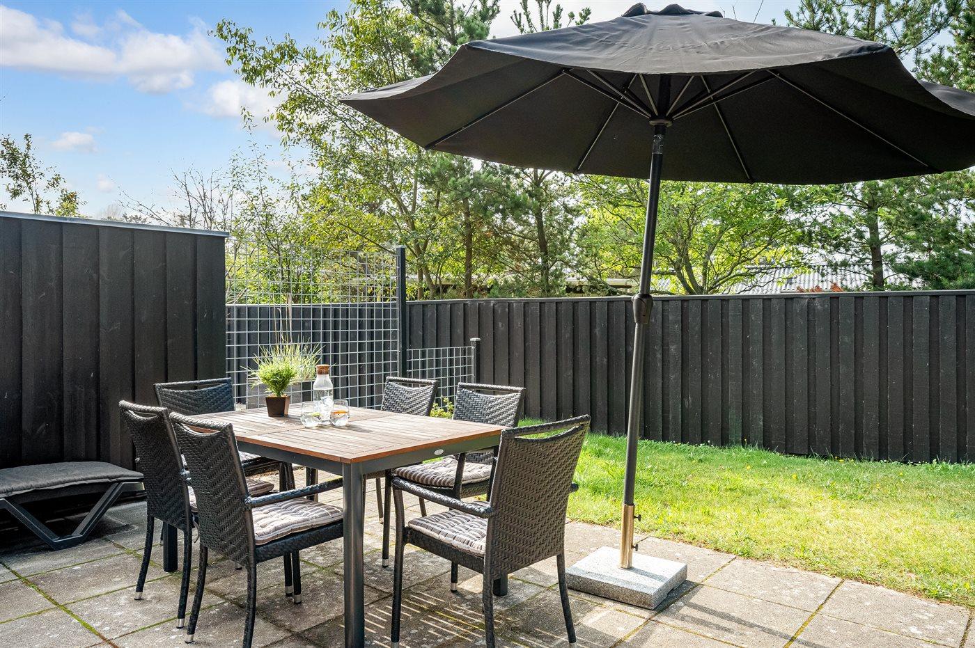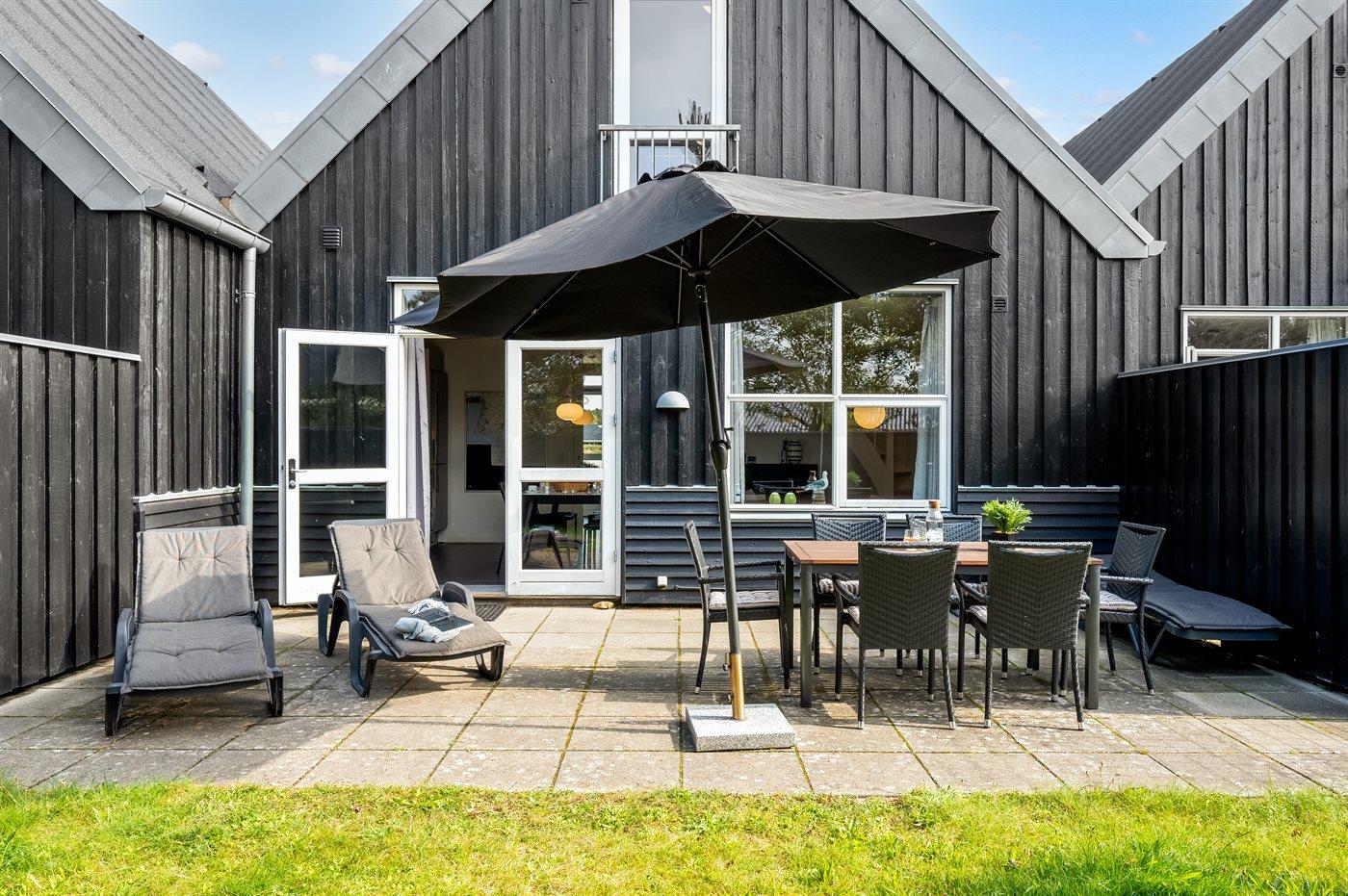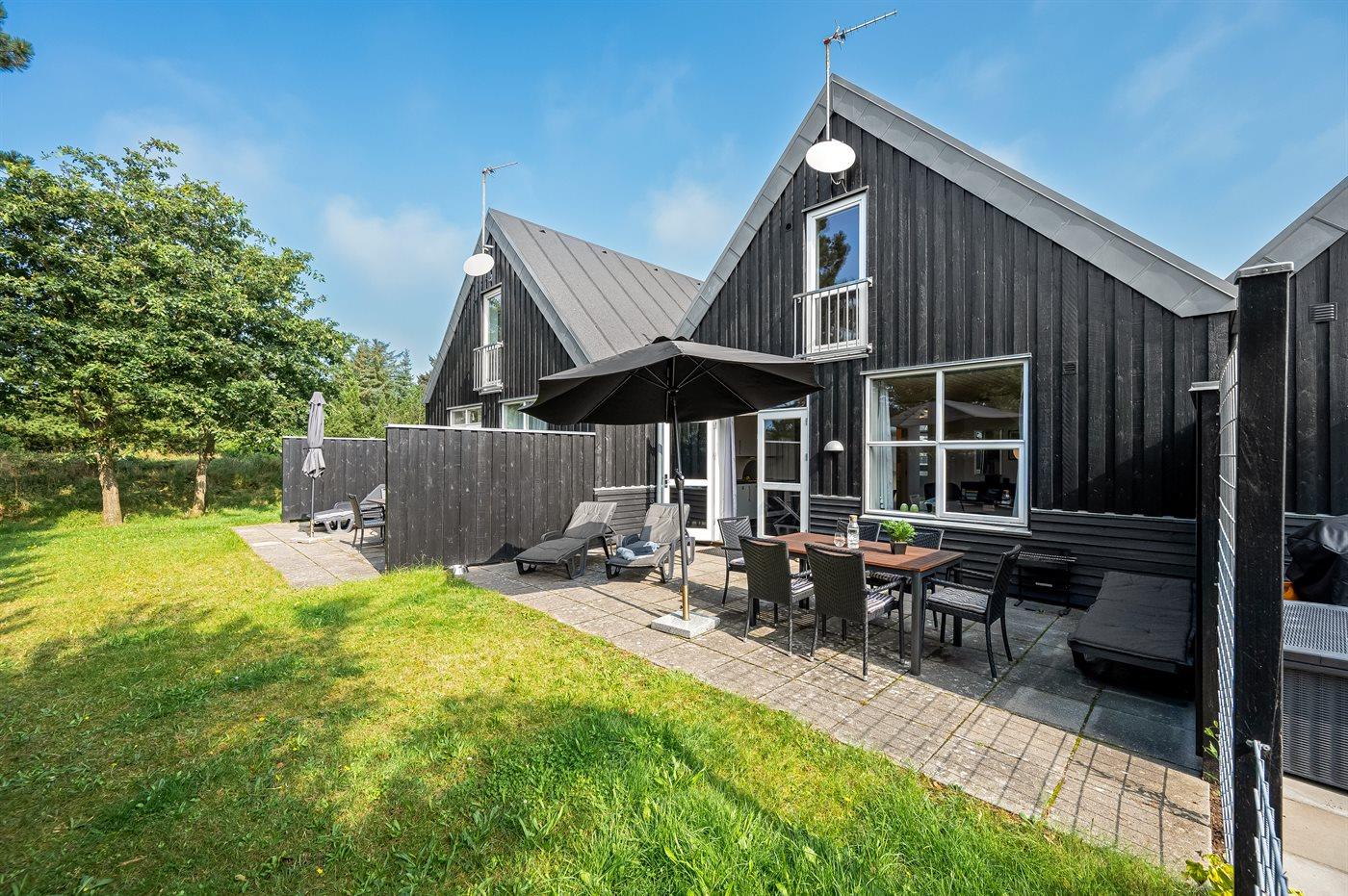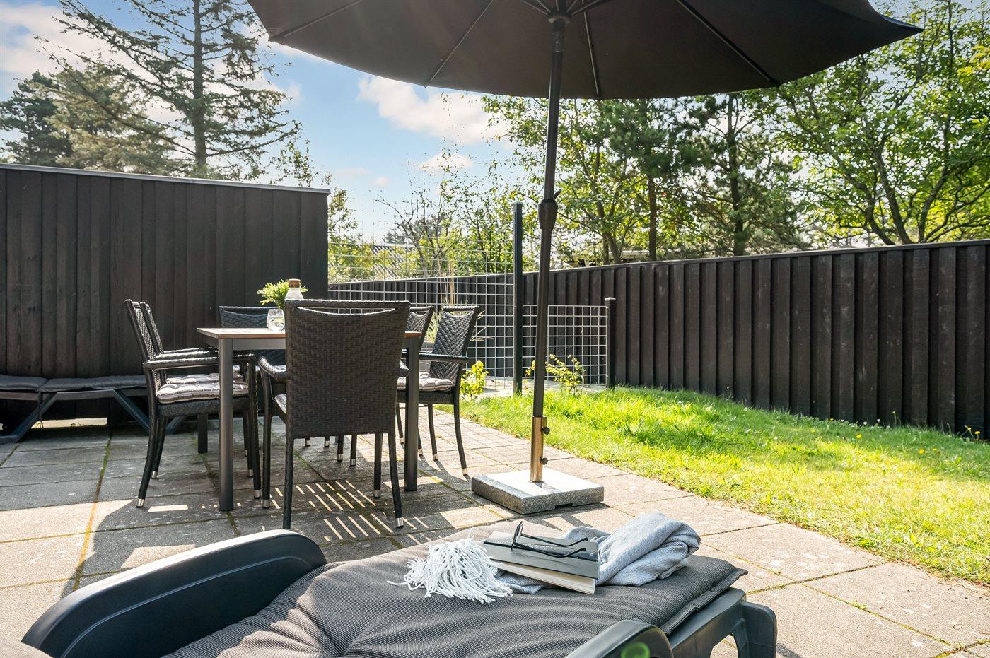Ferieboligen er beliggende på en 120 m² stor havegrund. Der er 800 m til havet. Der er en sø i en afstand af 6000 m. Nærmeste forretning er beliggende i en afstand af 600 m. Der er en golfbane i en afstand af 12000 m. Til ferieboligen hører åbent terrasseareal. Der ligger en legeplads i en afstand af 950 m. Der er installeret stik til opladning af elbil. Type 2 stik. Med 11 kW ladeeffekt. Parkering ved ferieboligen.