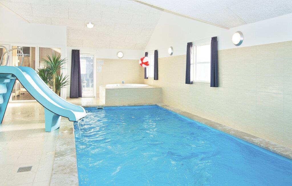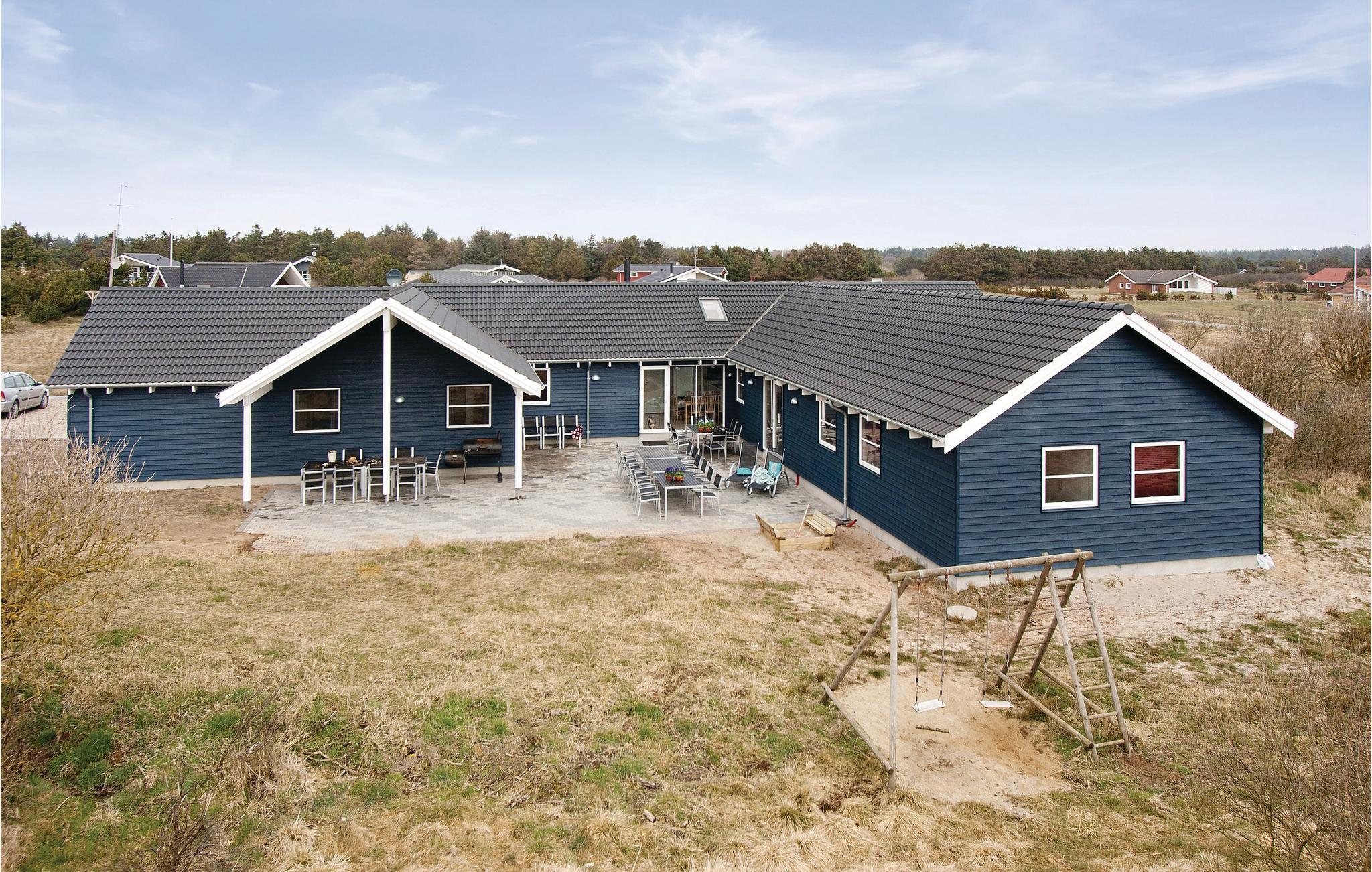 Feriehuset har eget badeland, hvor I kan nyde godt af den store swimmingpool med svømmetræner, vandrutsjebane, stort spabad og sauna. På terrassen kan I nyde både den danske sommer i gode havemøbler og en skøn grillaften med venner og familie. Den store klitgrund er beliggende ved et åløb. Der er opsat alarmanlæg i huset, og det udlejes ikke til ungdomsgrupper