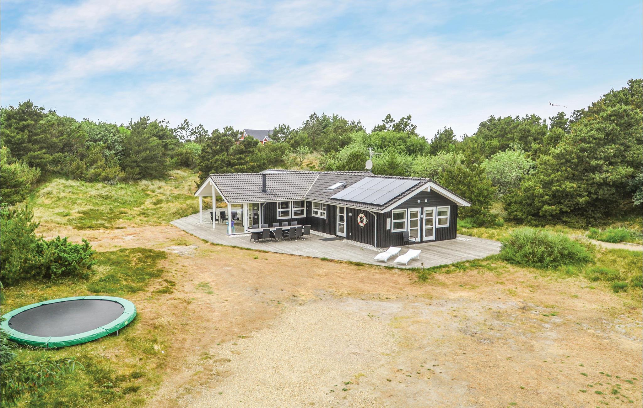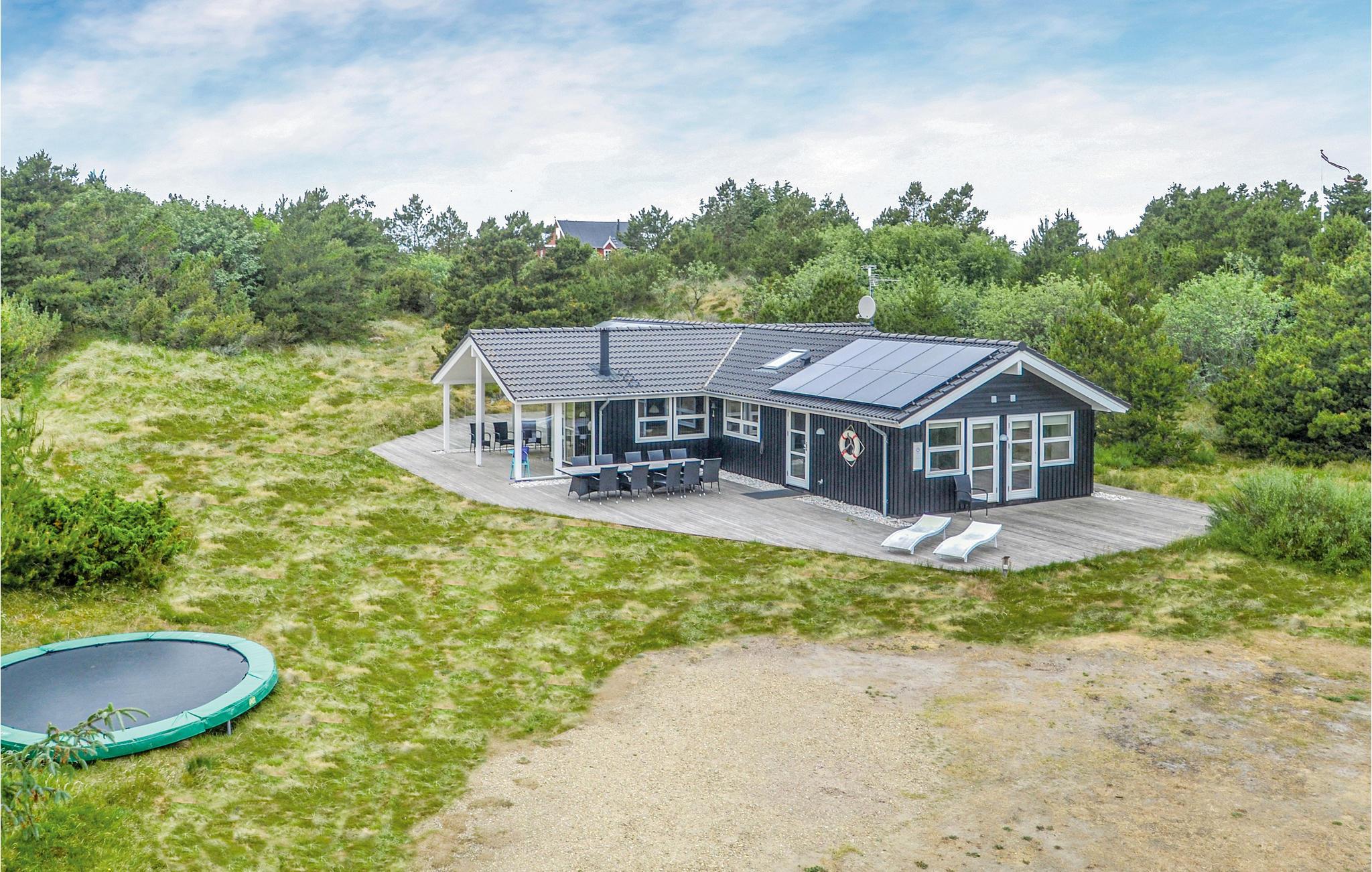 Hyggeligt aktivitetssommerhus med sauna, spabad og store terrasser nær Vejers Strand.