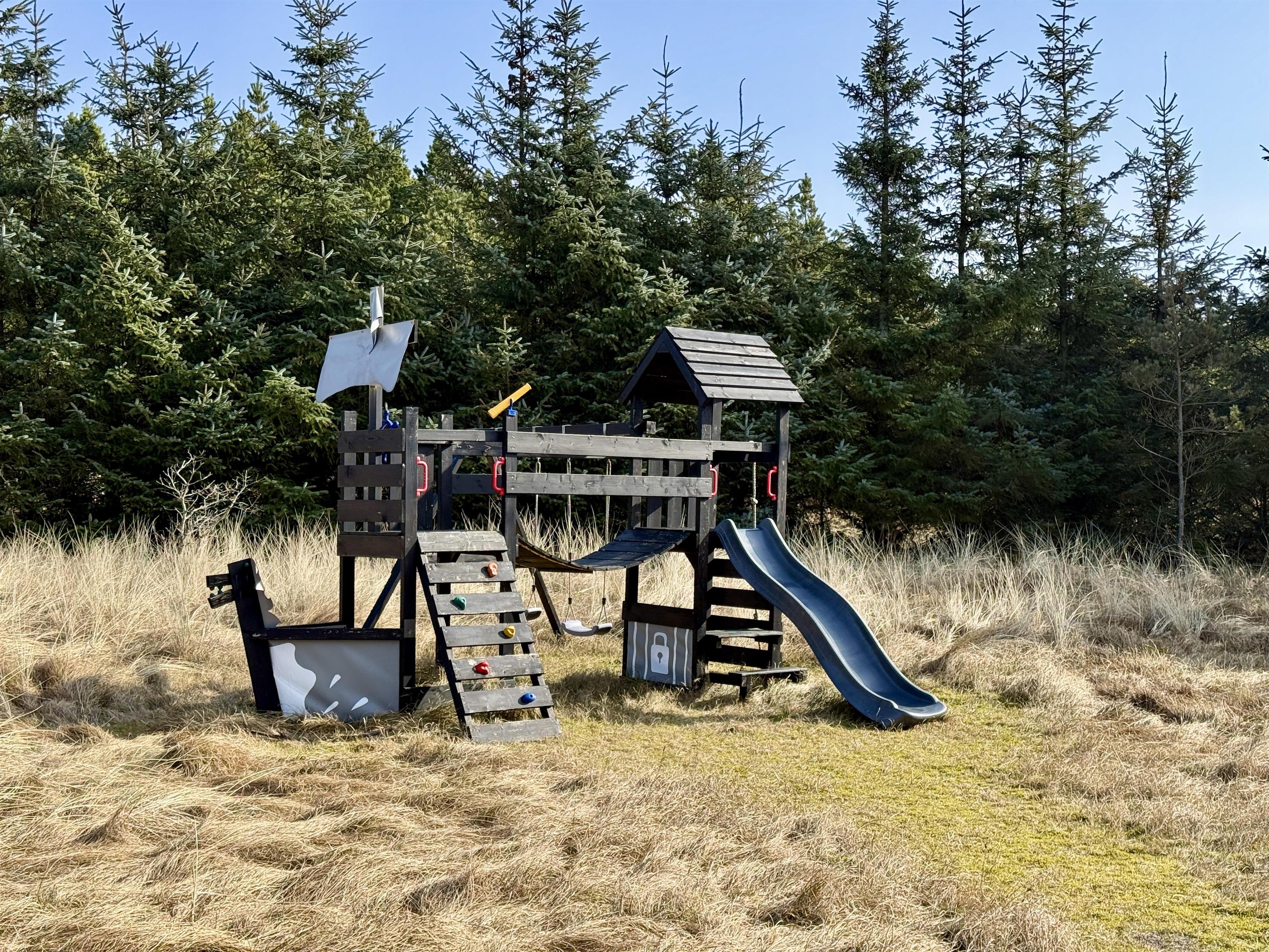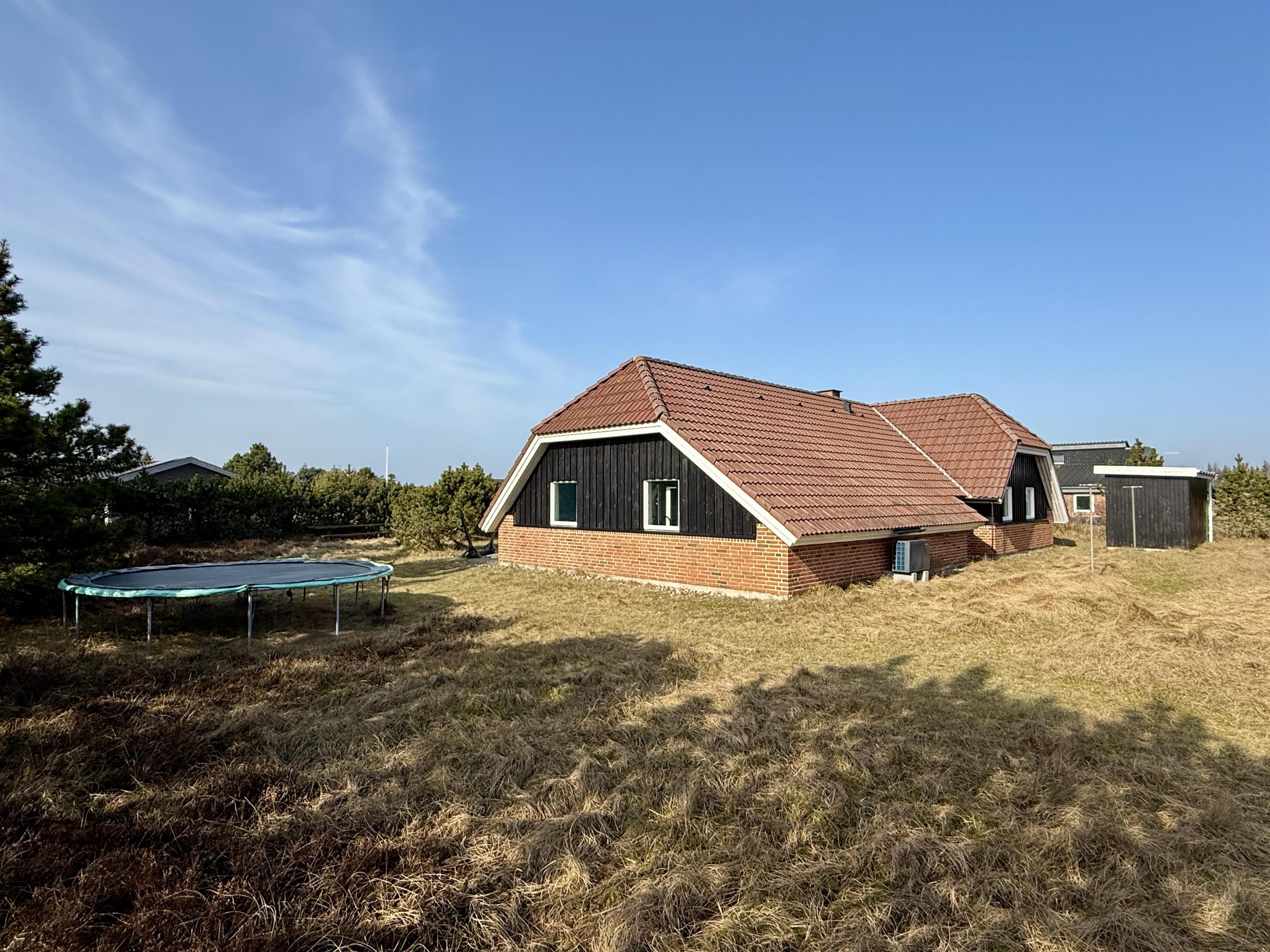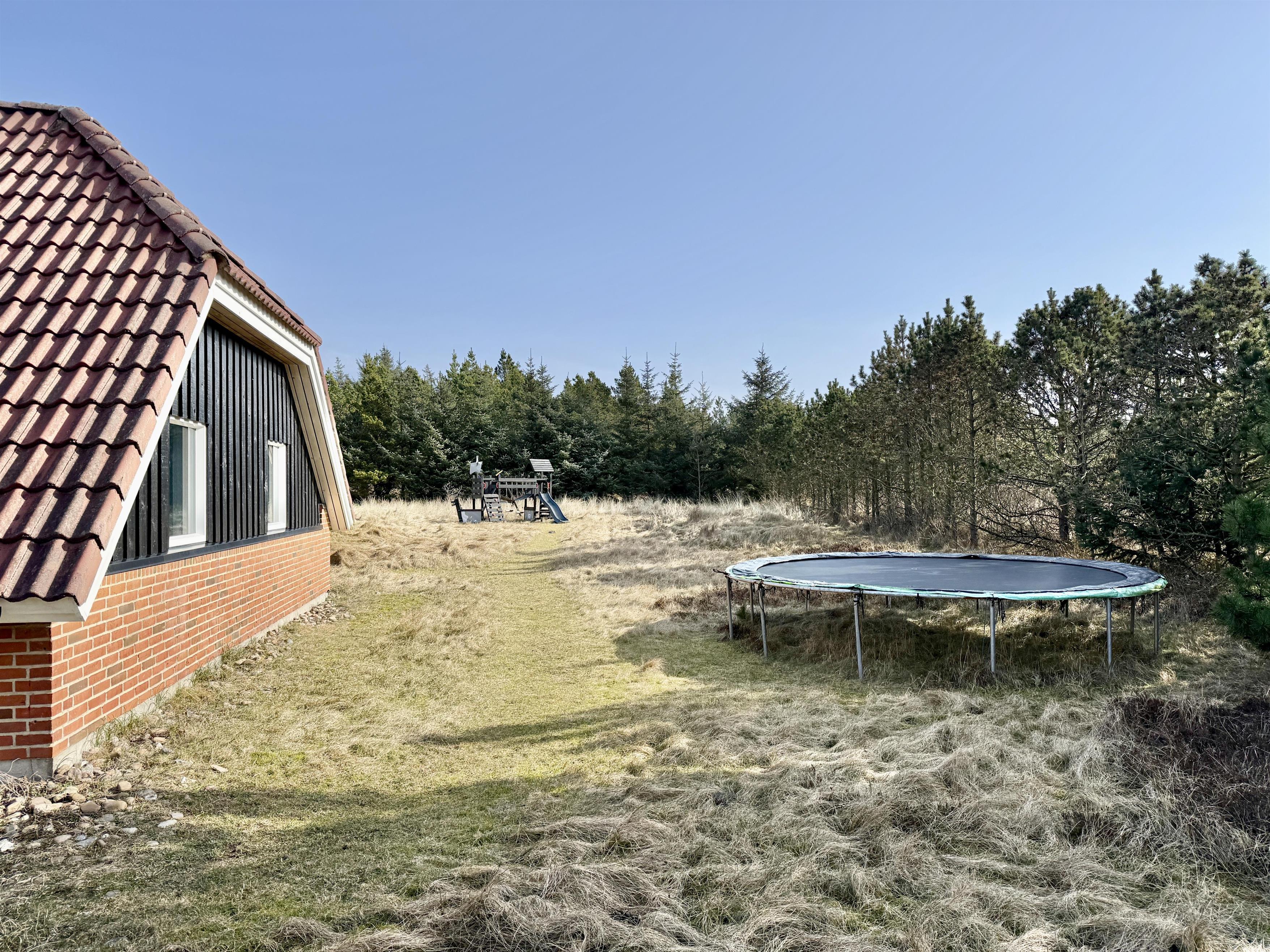 Mod sydvest har I en dejlig terrasse, hvor I kan nyde solskinsvejret og skabe gode ferieminder. Den afskærmede terrasse giver læ og privathed, så I kan nyde måltider, kaffe og aftensol i behagelige rammer. Her står både havemøbler, liggestole og grillen klar til jer. Hør fuglesangen, læs en god krimi, mens børnene leger på den store naturgrund. Udenfor er der fyldt med aktiviteter for børnene, der kan lege med både gynger, en sandkasse og en trampolin.