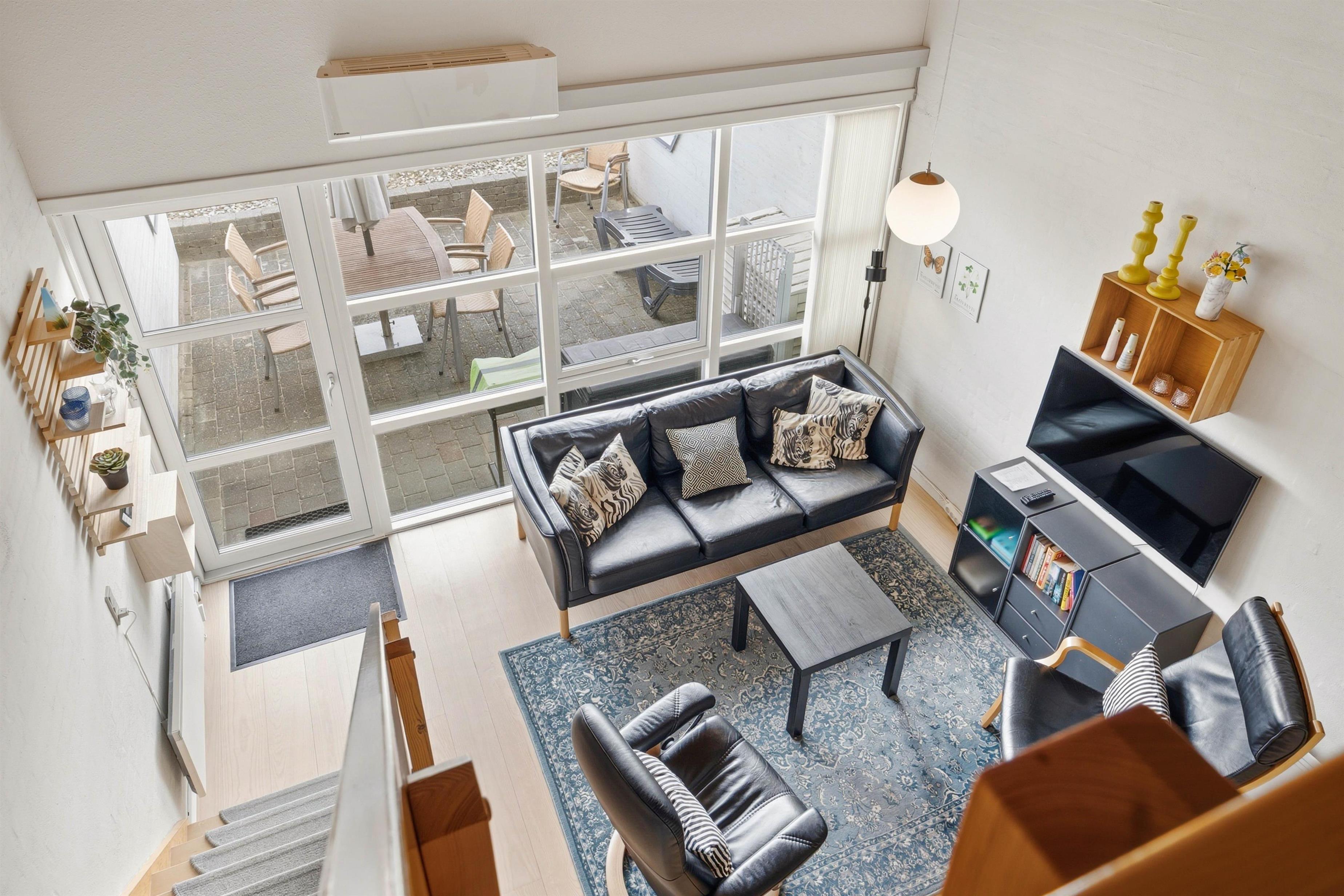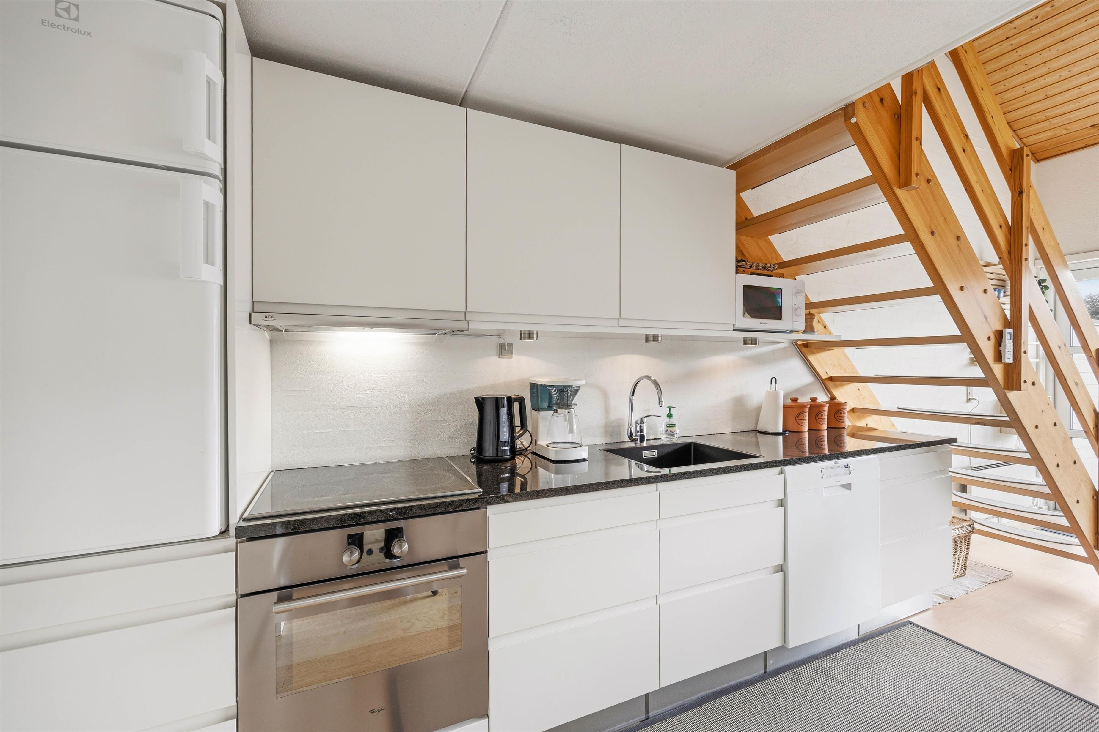 Fra stuen er der udgang til den afskærmede terrasse, som er det perfekte sted, at sætte sig til rette, lægge fødderne op og bare slappe af. Efter en lang dag med masser af frisk havluft og kilometer lange traveture med hunden langs stranden er der ikke noget skønnere end at åbne op ud til terrassen, finde en plads i læ og bare at slappe af og lade dagen gå på hæld med en kop te eller en kølig drink.