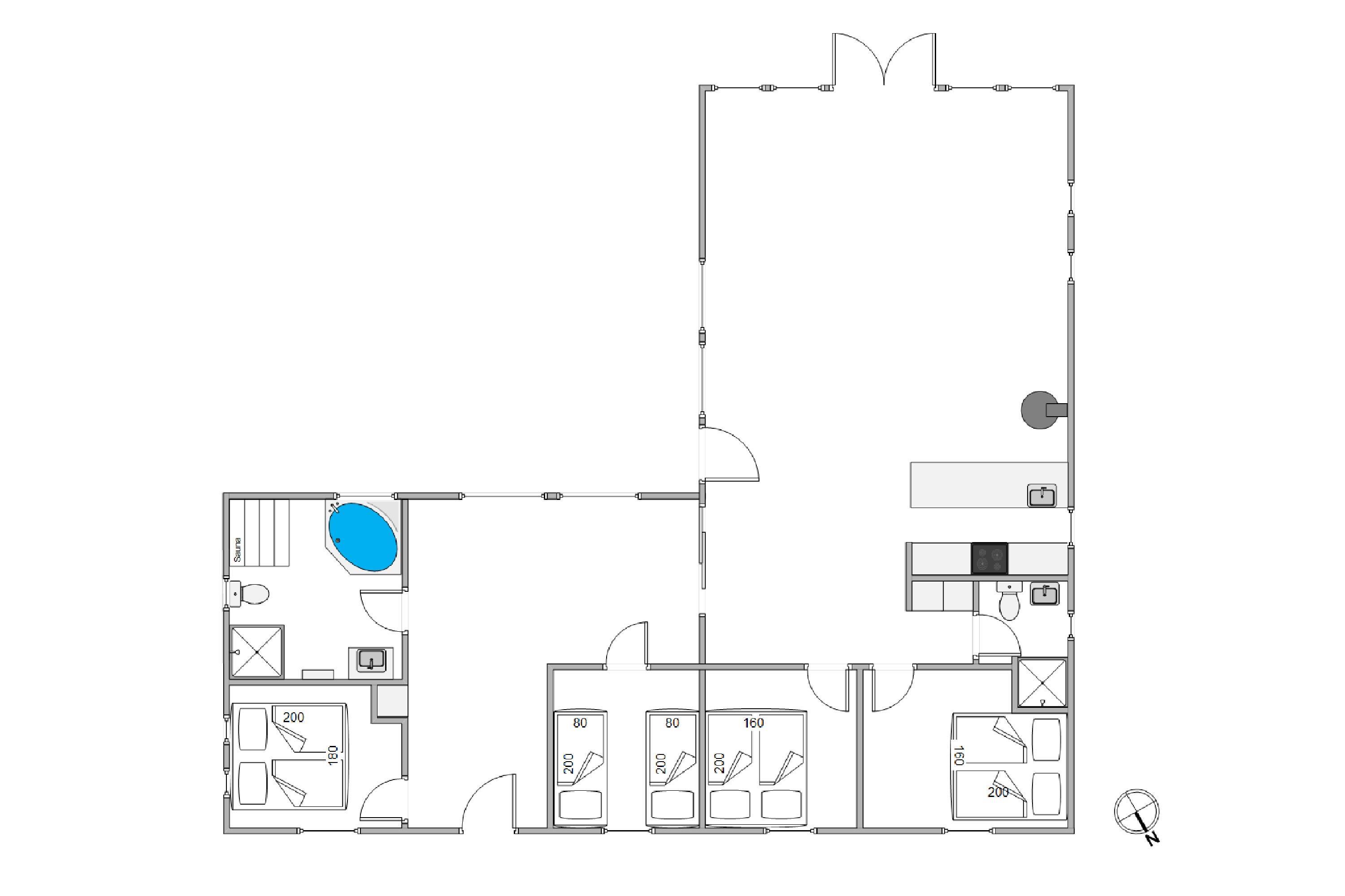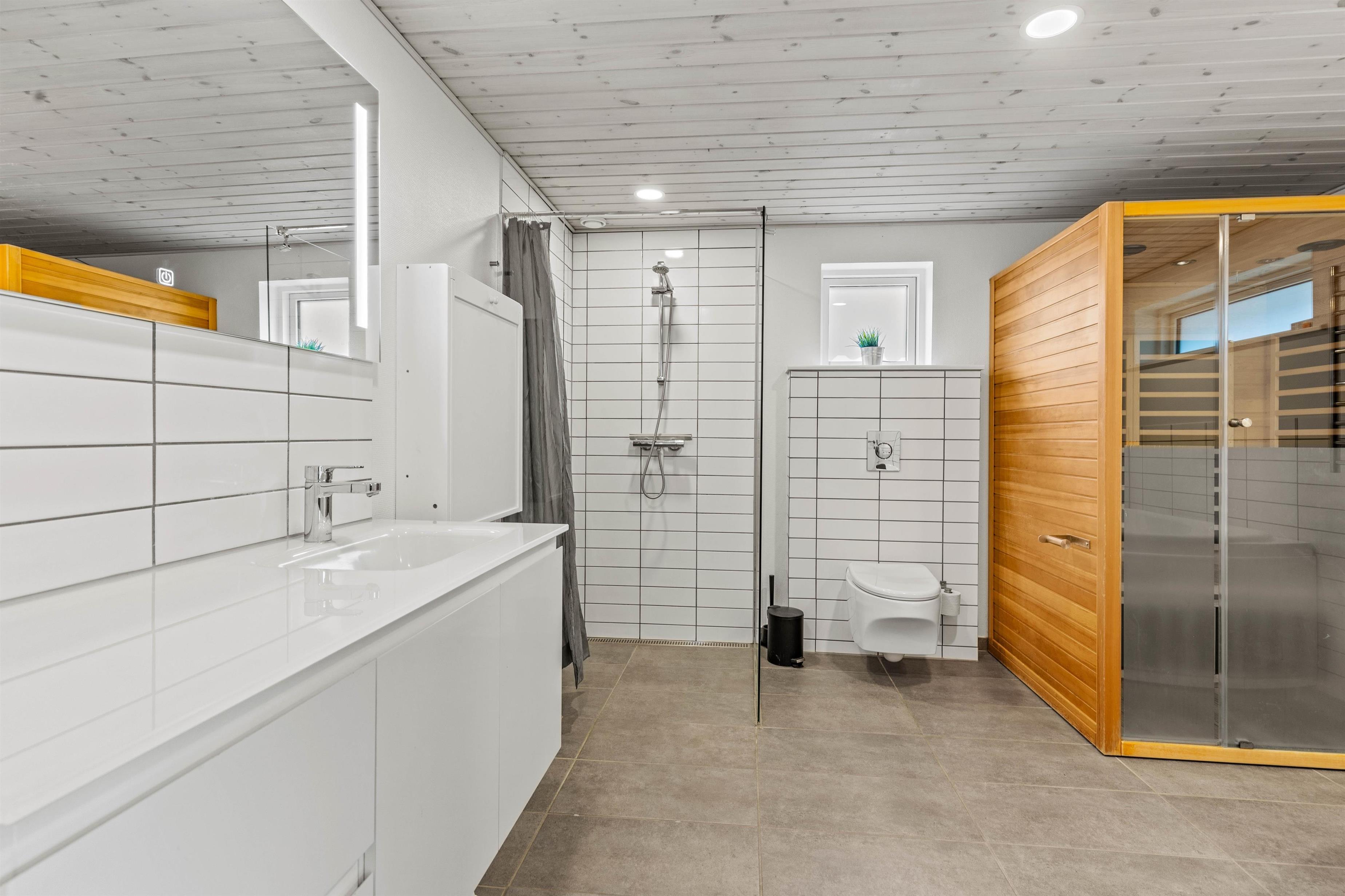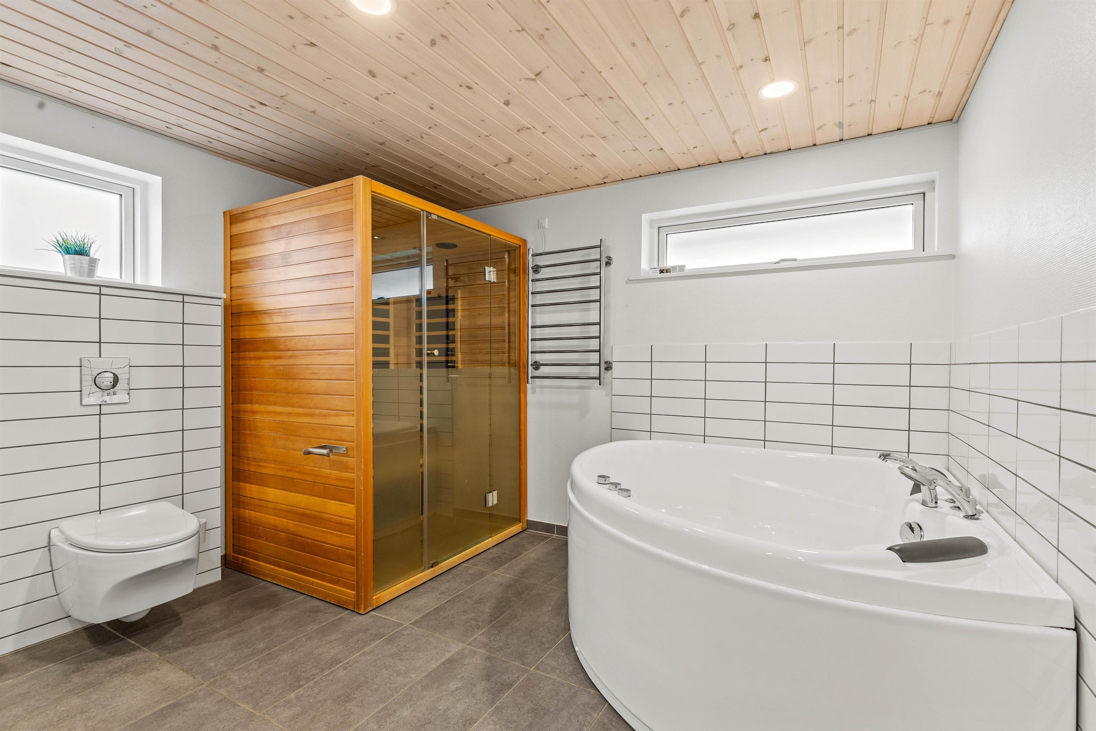 Et af sommerhusets absolutte highlights er det lækre wellnessbadeværelse med både spabad og infrarød sauna. Her kan I virkelig få lov til at koble af og tanke nye kræfter. Der er selvfølgelig et ekstra badeværelse, så der ikke sker kødannelse, mens I nyder en velfortjent wellness-session i spaen eller saunaen.