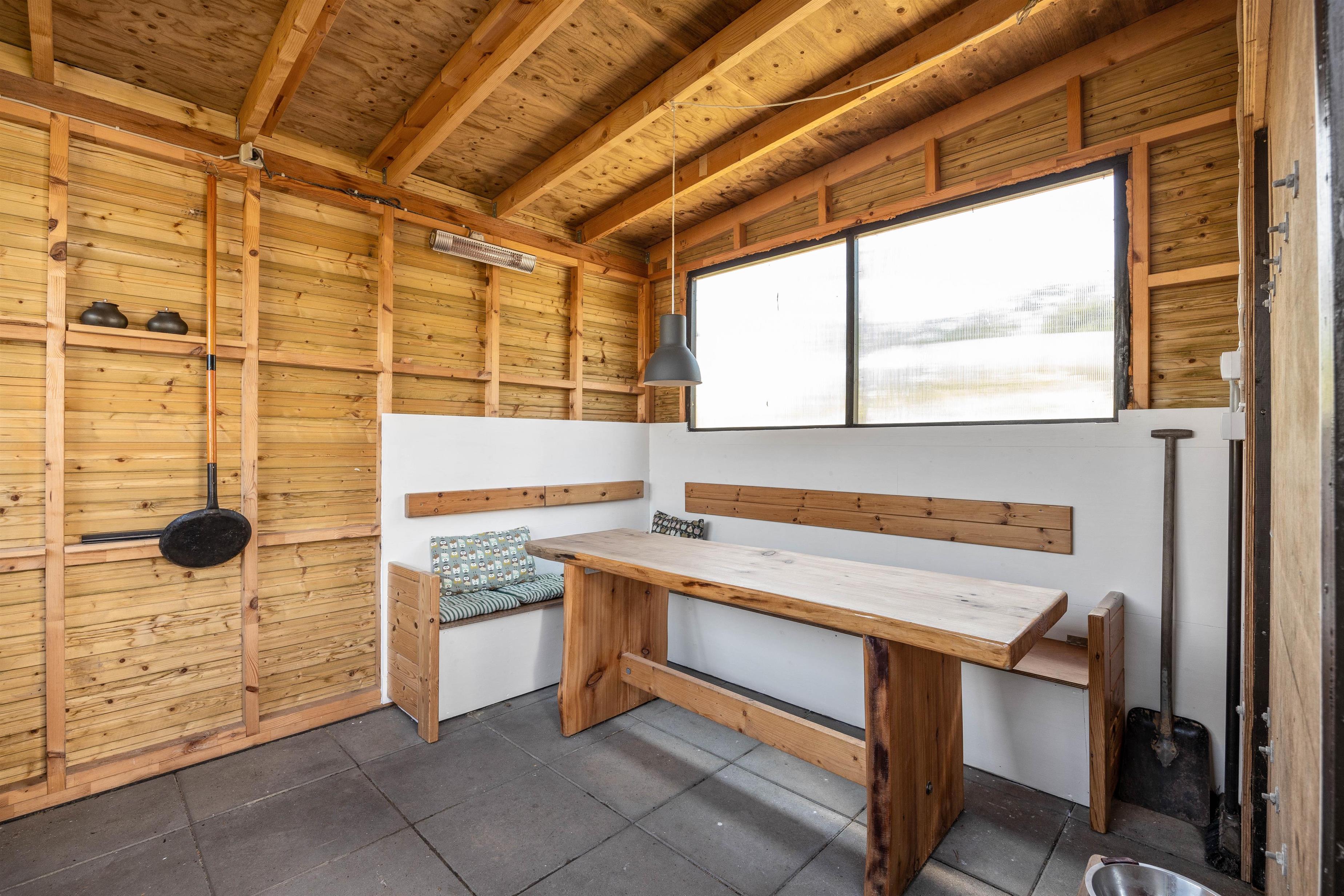Fra alrummet kan I også træde ud i den hyggelige udestue, hvor I blandt andet kan samles til skønne måltider. Fra udestuen har I desuden en skøn udsigt til terrassen og haven.