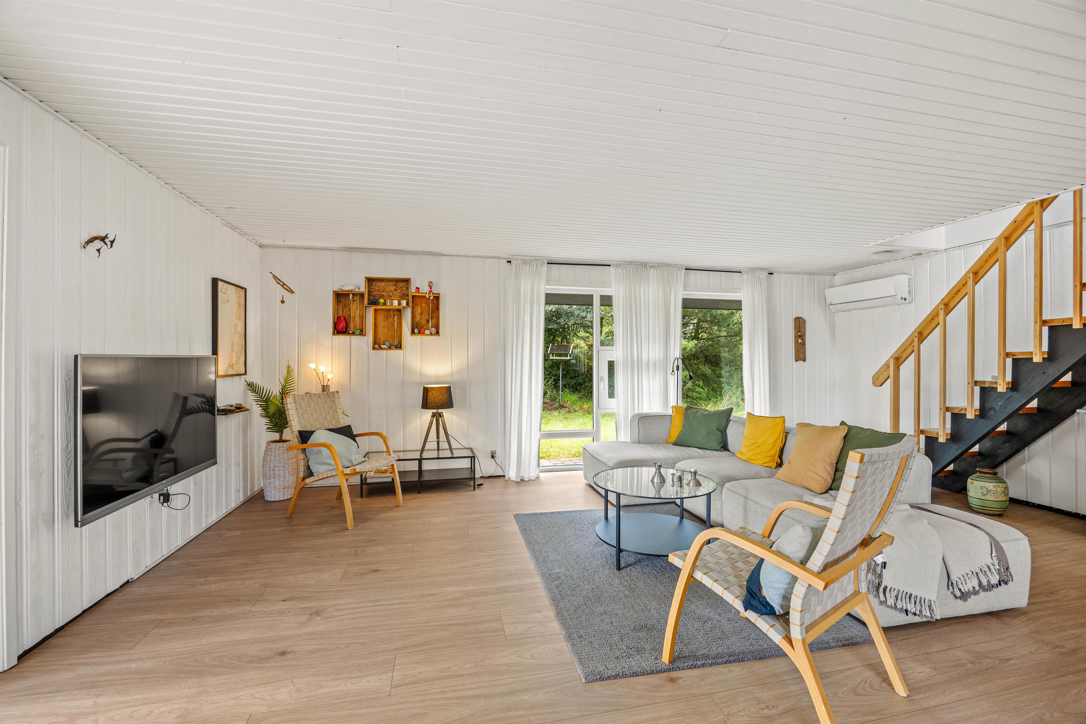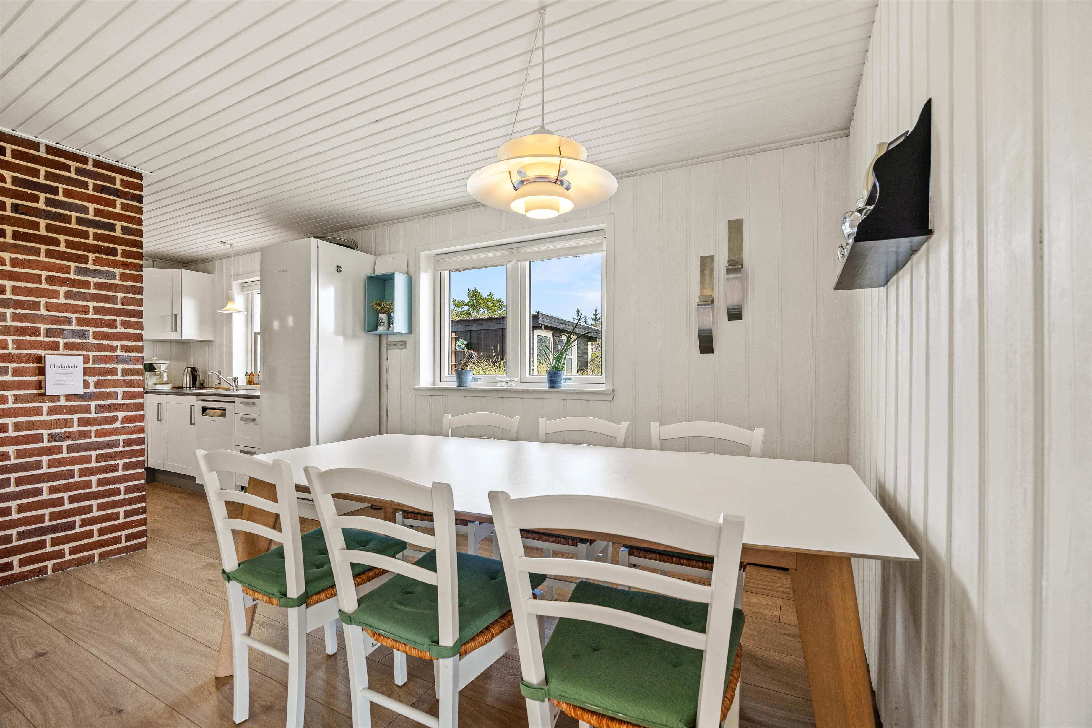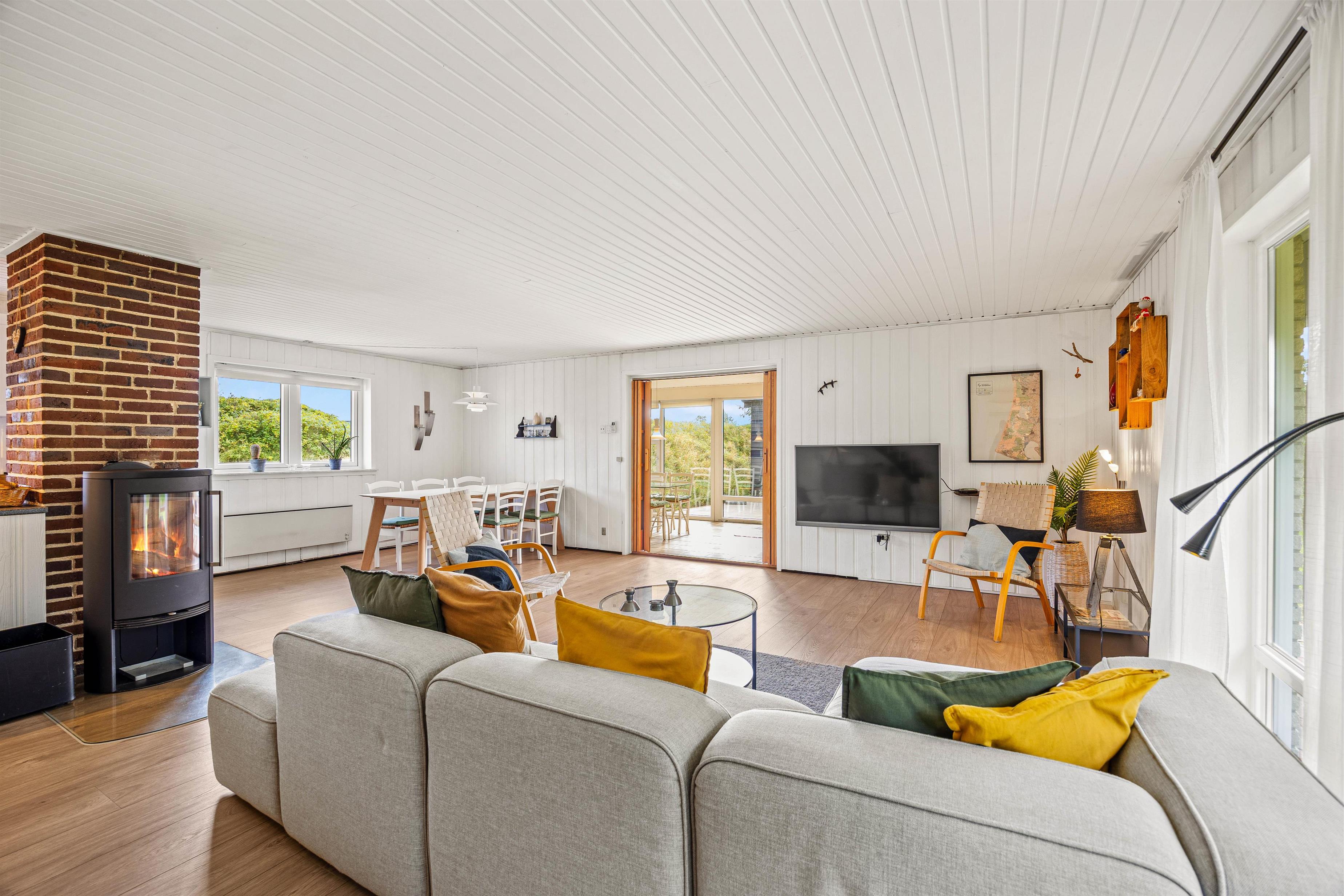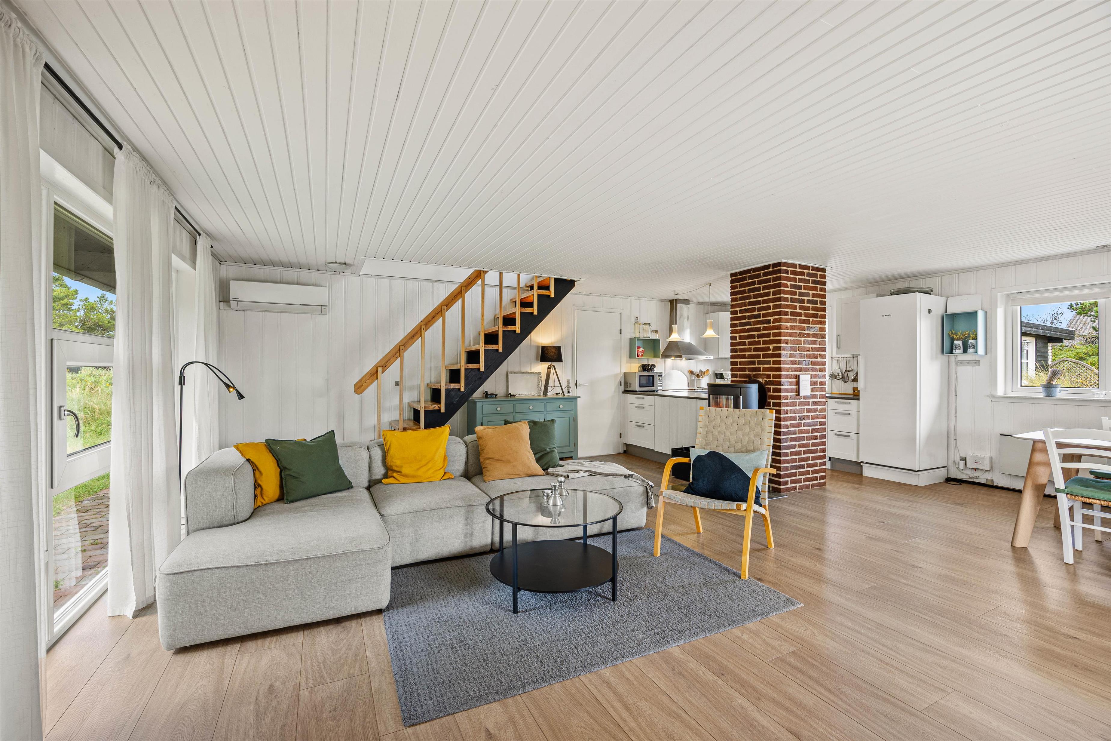 Feriehuset på Risvej 42 i Vejers byder på en hyggelig indretning, der danner rammen om jeres kommende ferie. Sommerhusets hjerte er det store alrum i stueetagen, hvor I kan samle hele ferieflokken til hyggelige stunder med spil, film og madlavning – alt sammen akkompagneret af brændeovnens knitren i baggrunden, der fuldender feriestemningen.