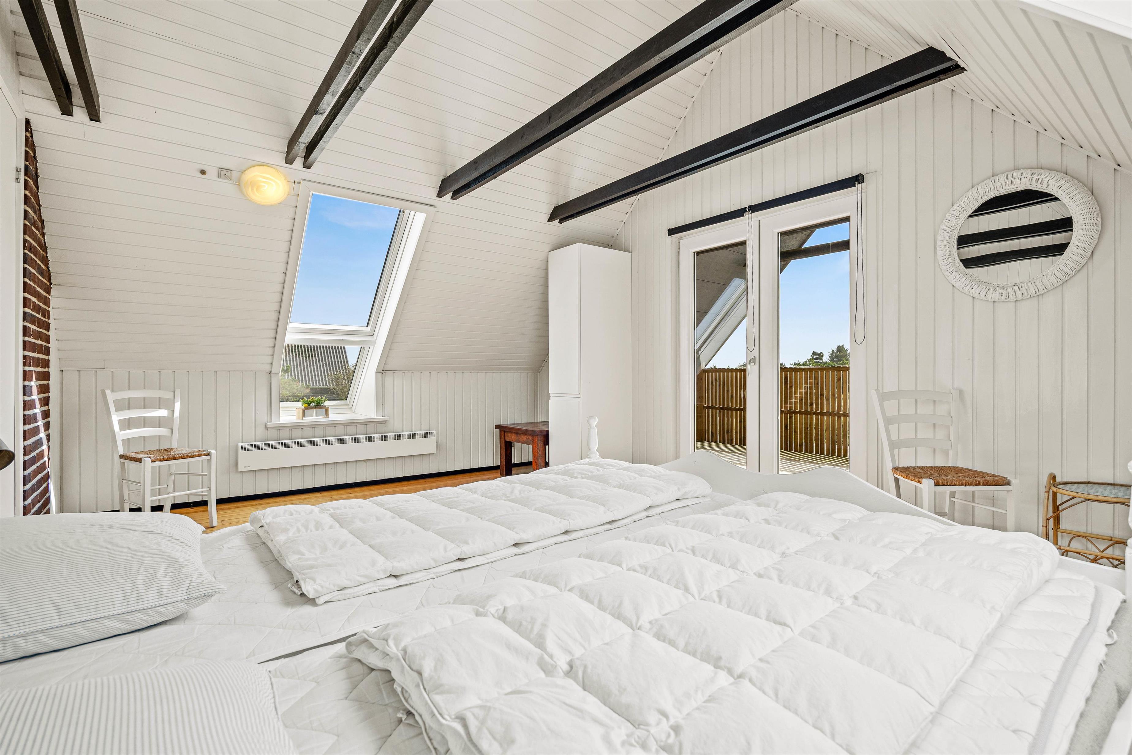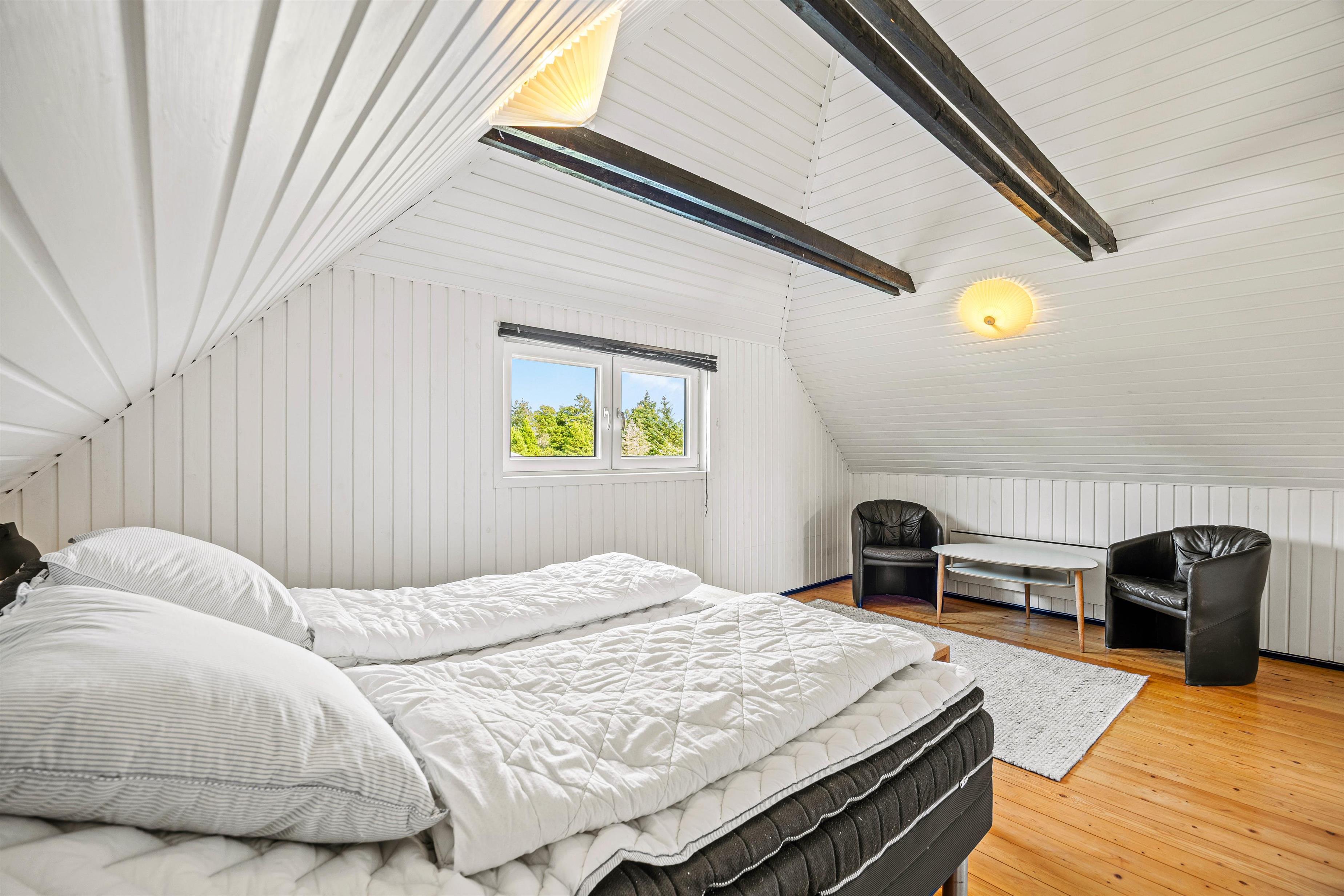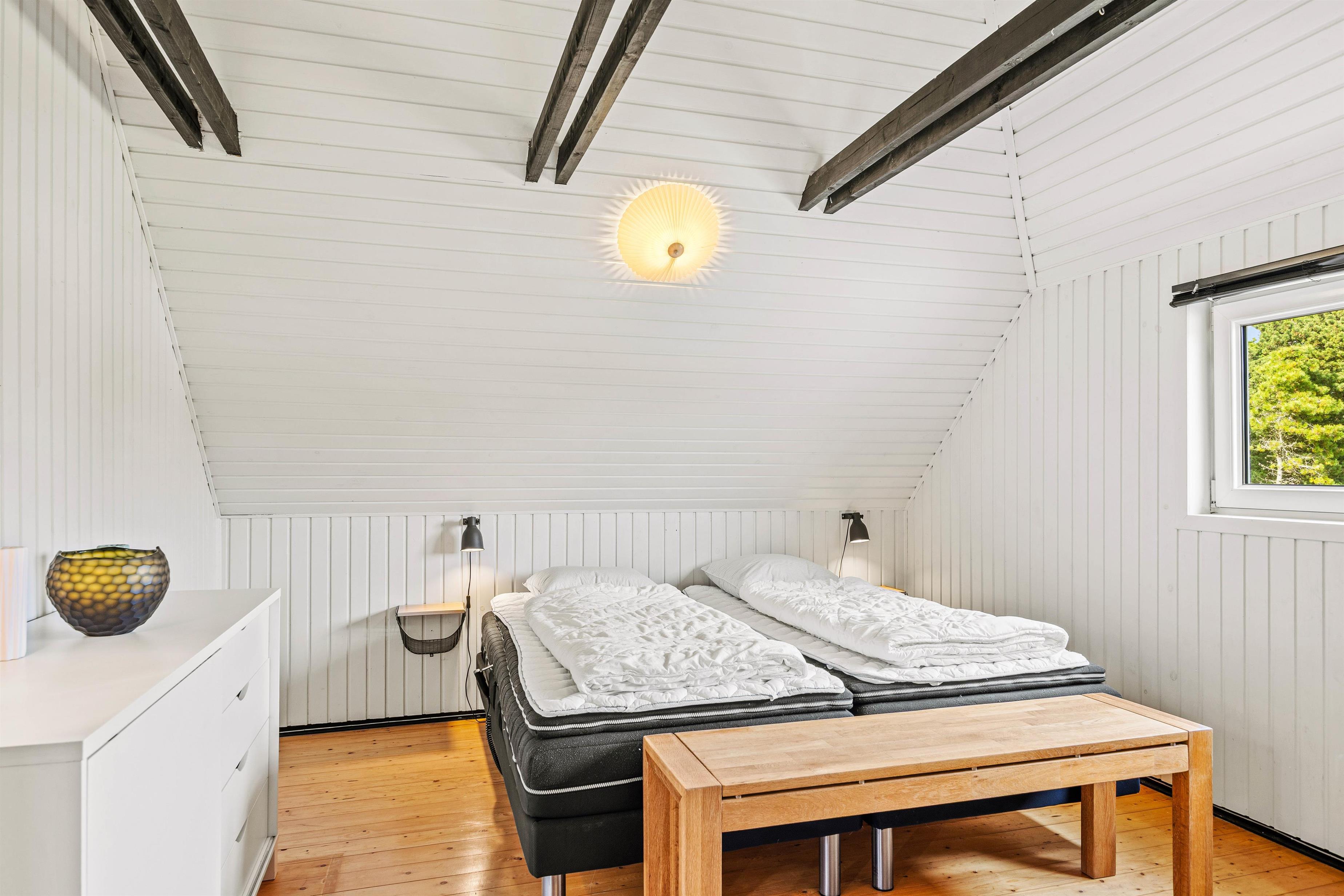 Sommerhusets 120 kvadratmeter er fordelt på 2 etager, og her finder I i alt 3 gode soveværelser, som I kan fordele jer på, når det er tid til at gå til køjs på ferien. Alle 3 soveværelser er indrettet med en dobbeltseng hver, som I kan samle ny energi til feriedagene i. Desuden rummer sommerhuset 1 badeværelse med gulvvarme, så ingen skal fryse tæerne fra morgenstunden.