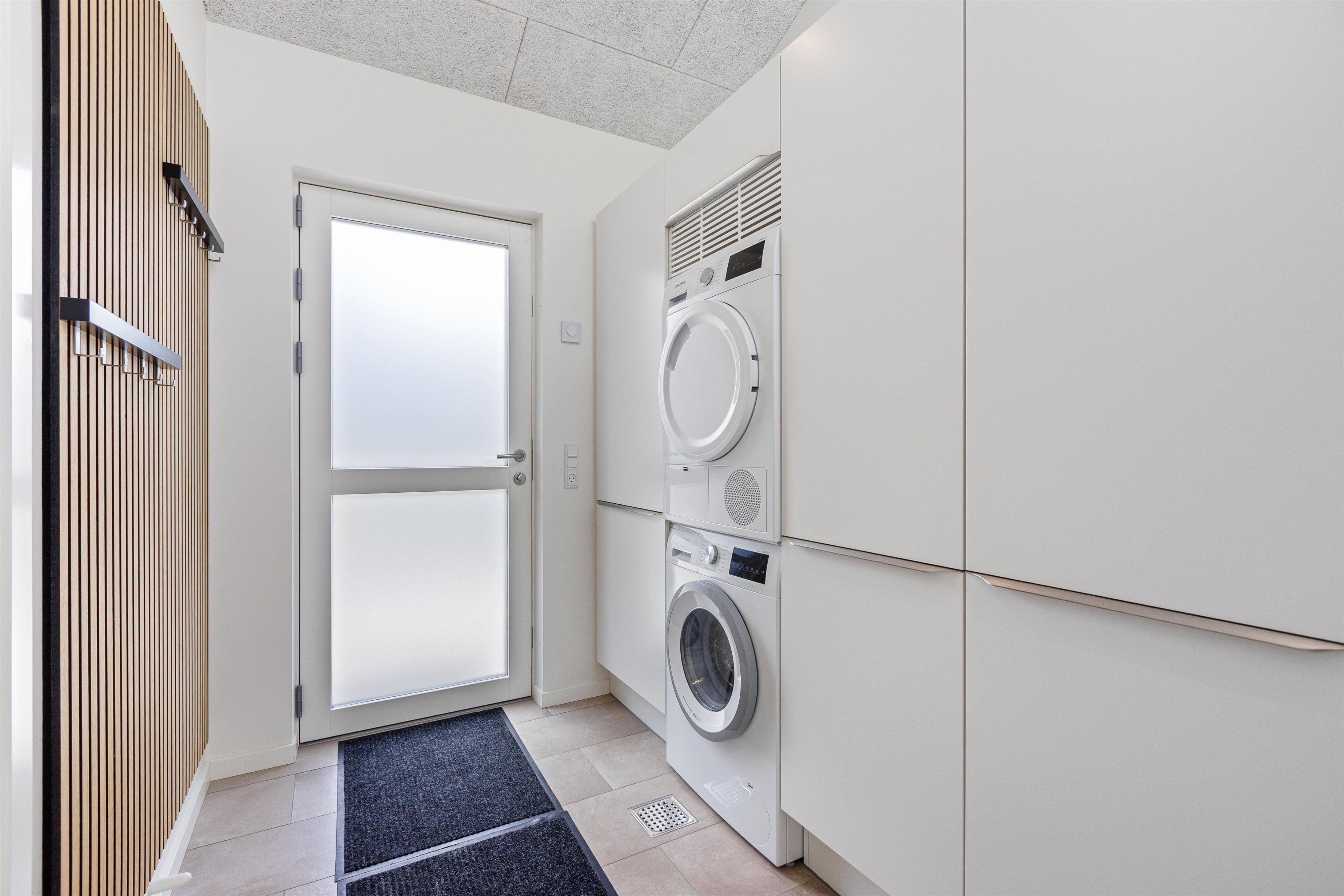 Stuen, som ligger i åben forbindelse med køkkenet, er hjerterummet. Her kan I tilbringe mange hyggelige timer sammen, også selvom I nødvendigvis ikke har gang i de samme ting. I det funktionelle samtalekøkken kan I sammen tilberede et lækkert måltid, eller blot holde kokken med selskab fra barstolene. Tag yndlingsbogen med over i den hyggelige alkove, find brætspillene frem eller måske I mere er til at slå benene op i sofaen. Pop popcornene og find jeres yndlingsfilm frem, så I bare er klar til at have filmhygge. Imens knitrer brændeovnen i baggrunden.